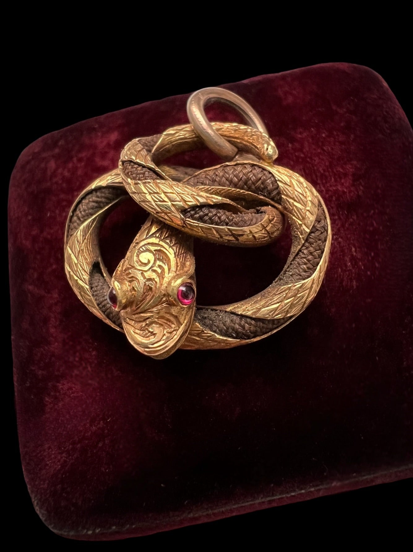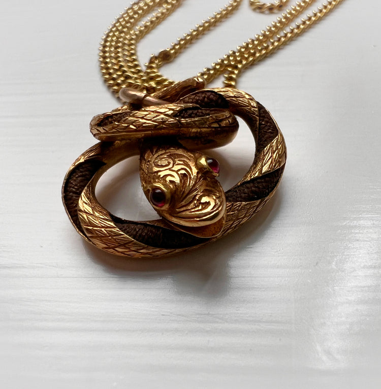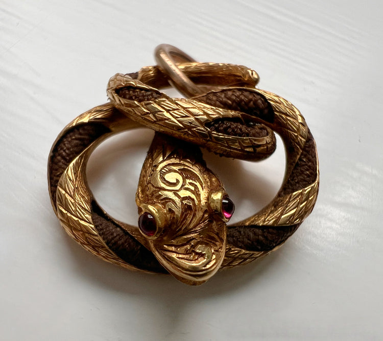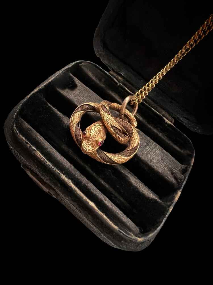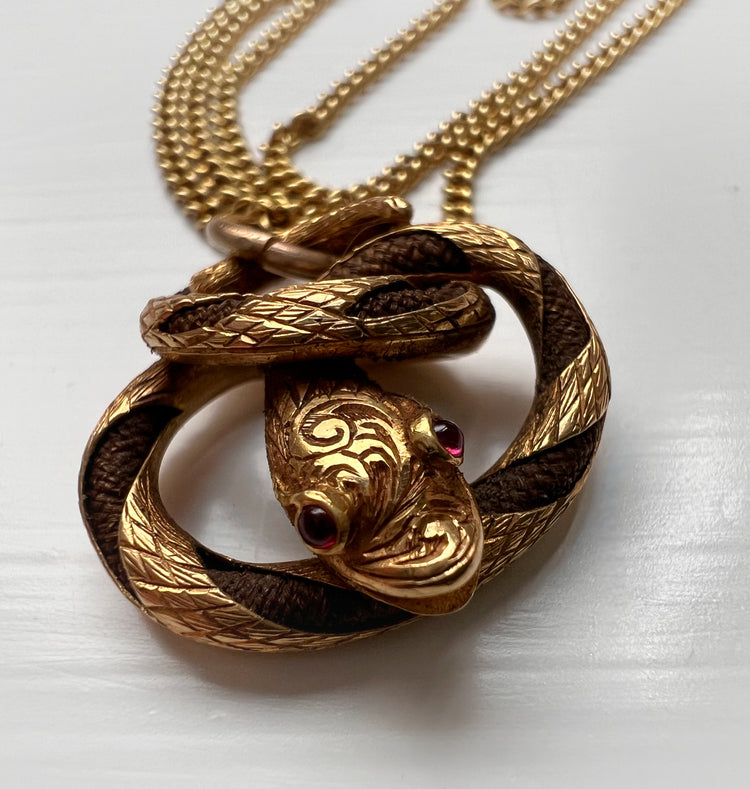 VICTORIAN HIGH CARAT GOLD & HAIR SNAKE PENDANT