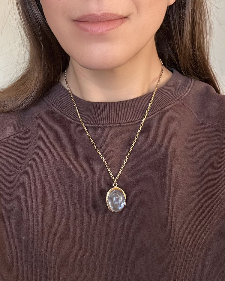 A super chunky Victorian Rock Crystal locket with a 10ct gold frame and bail.