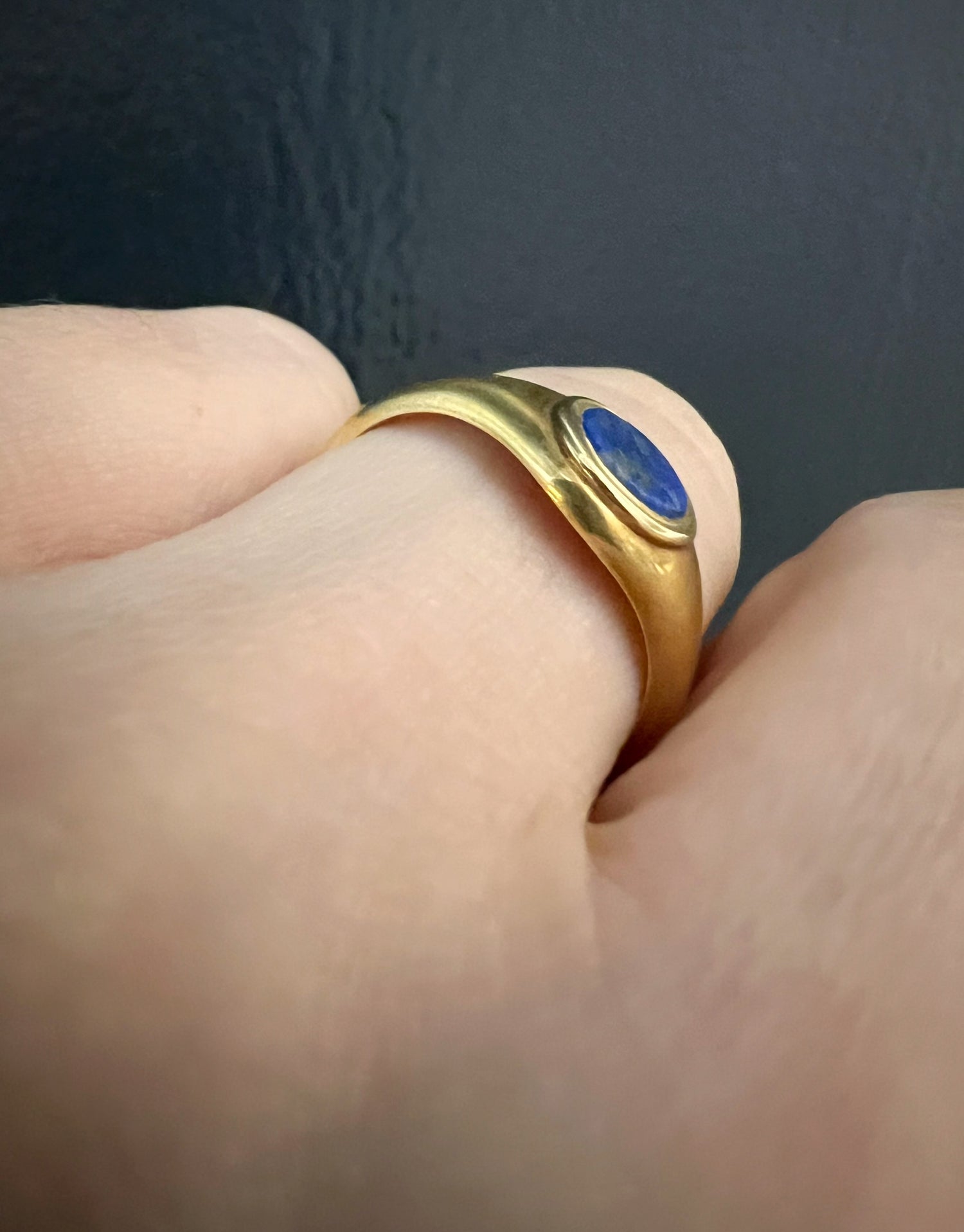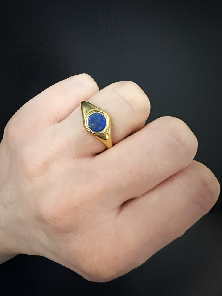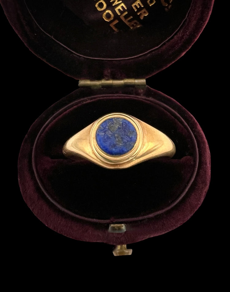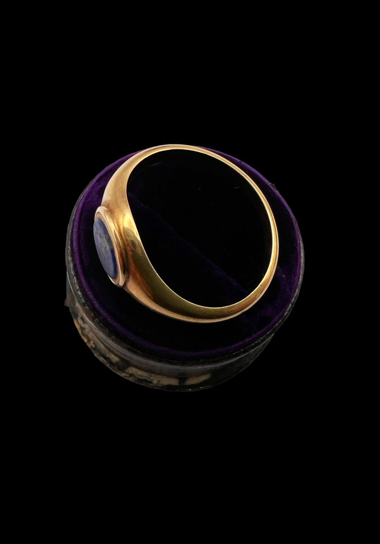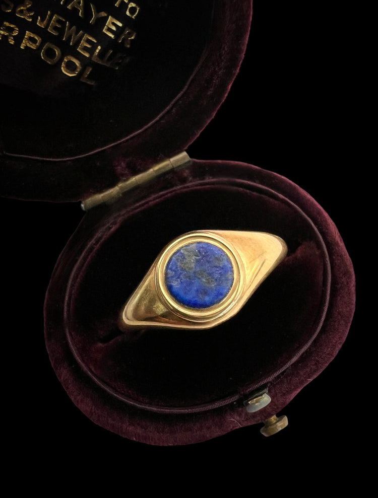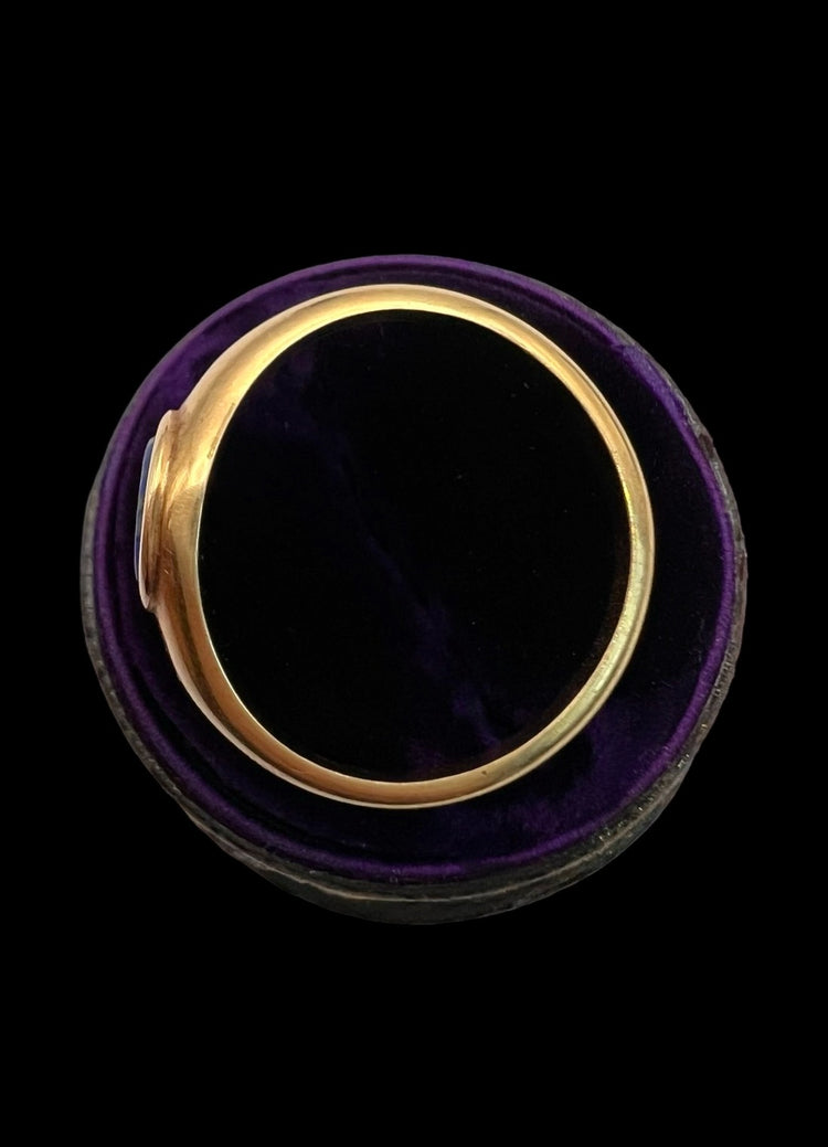 A super cool Victorian 15ct gold ring with a gorgeous Lapis Lazuli disc centre.