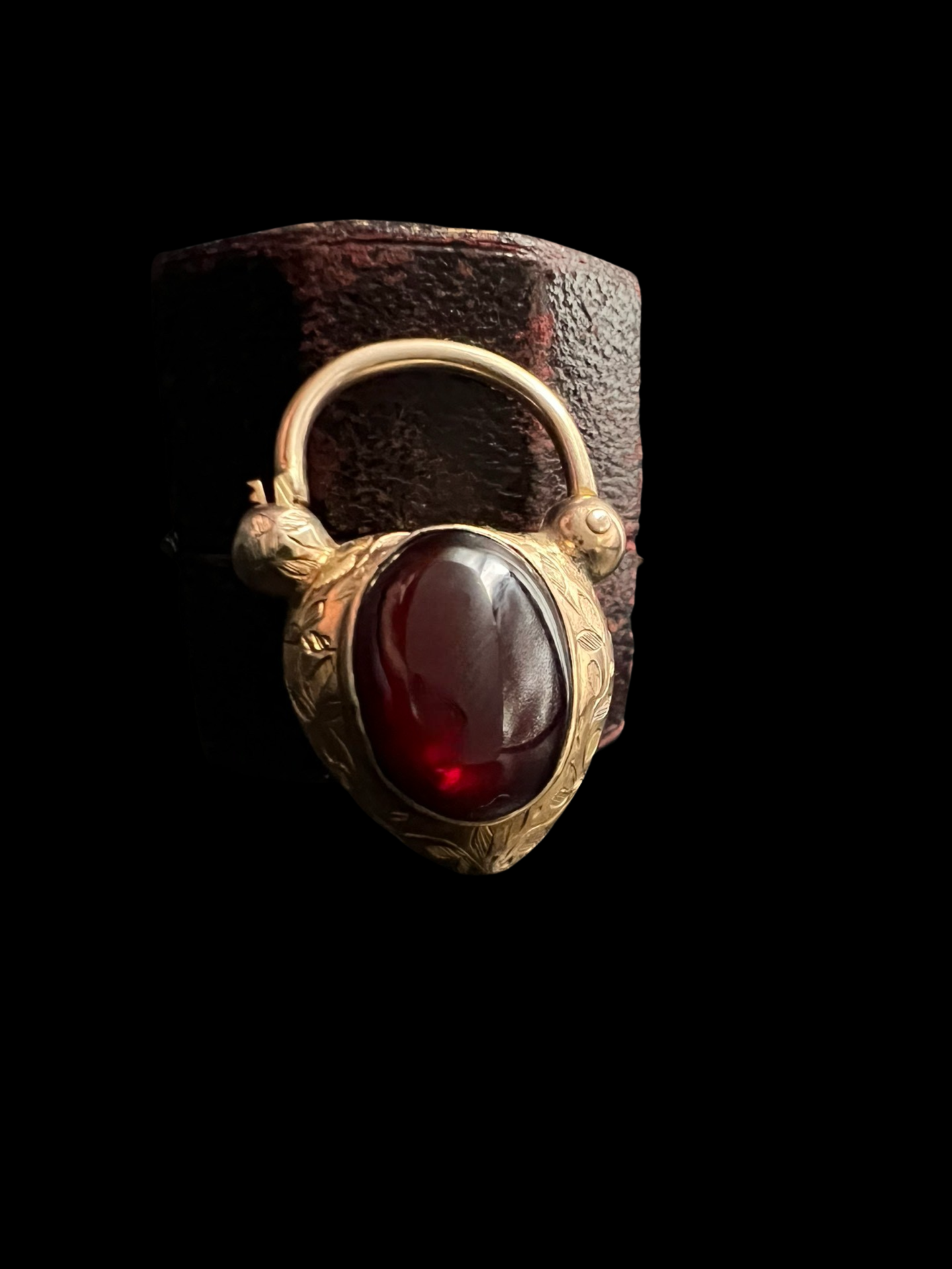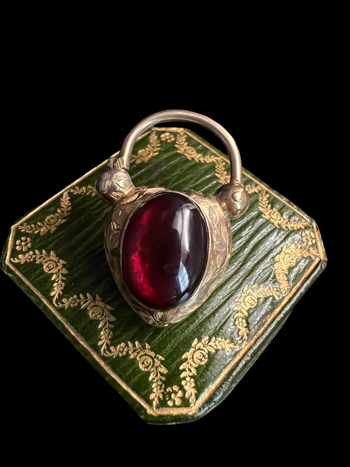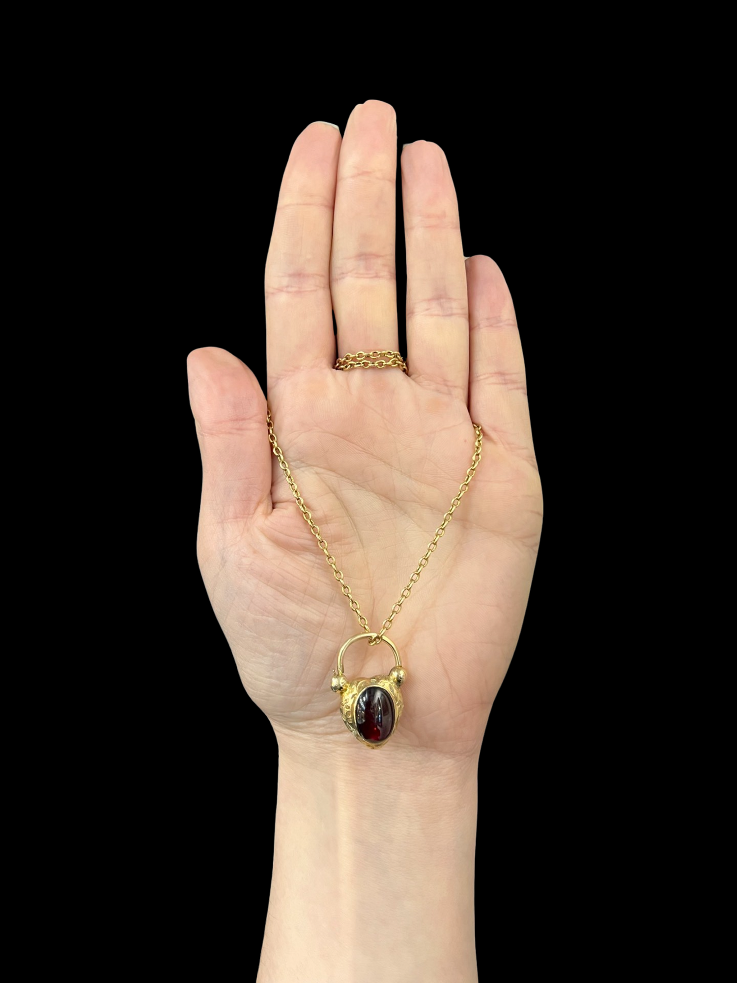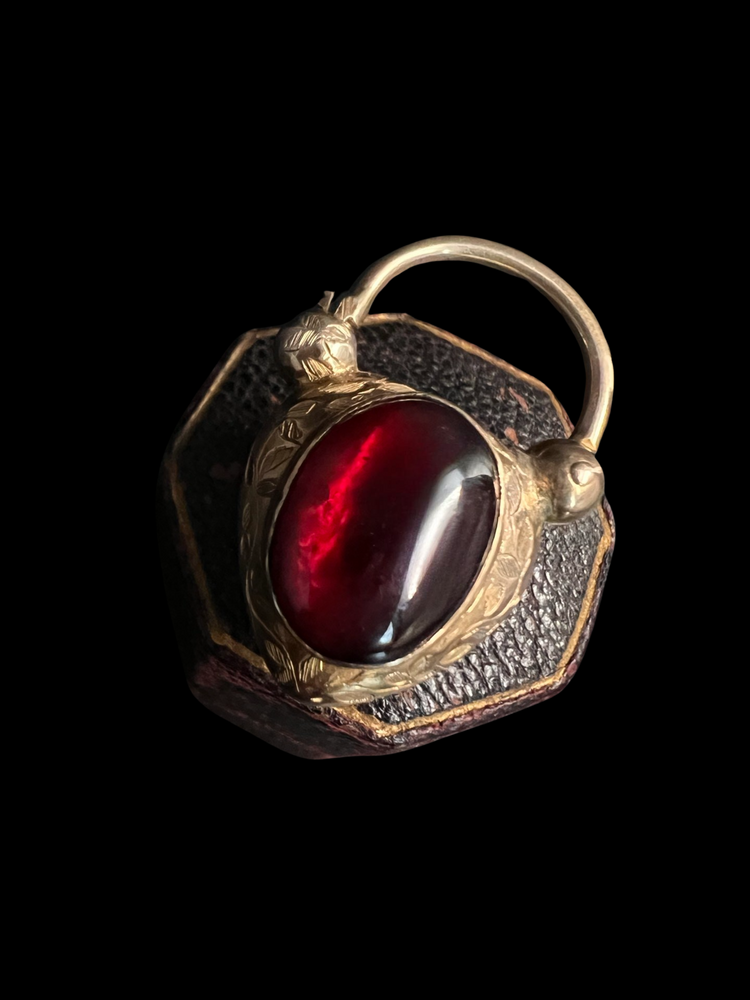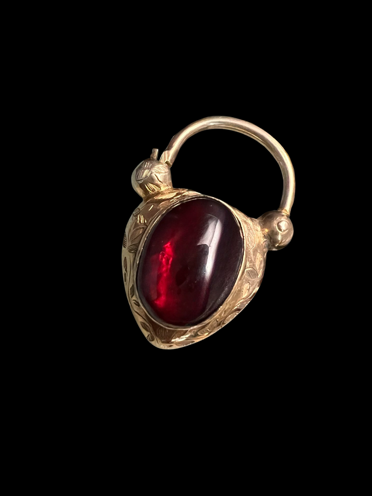 The centre of the heart has a large foiled cabochon garnet with a gorgeous deep red hue.
