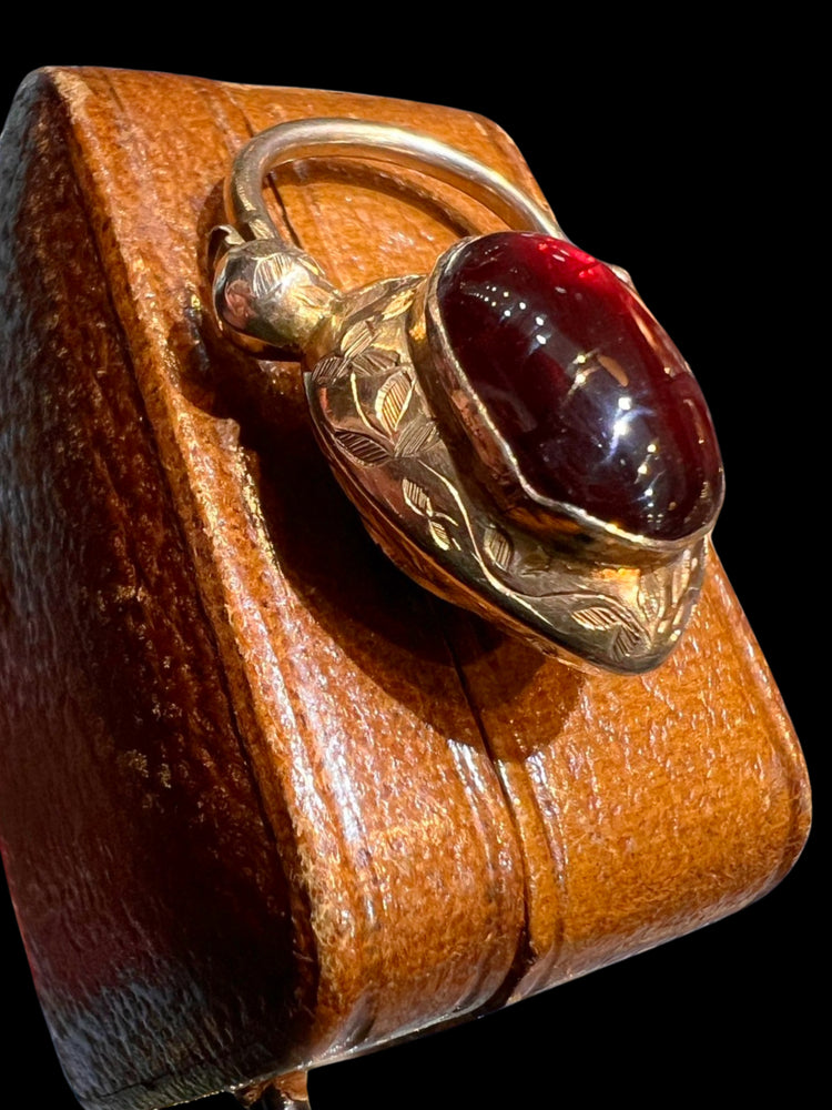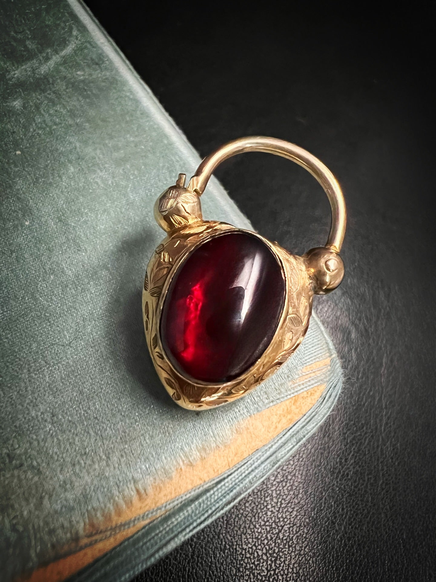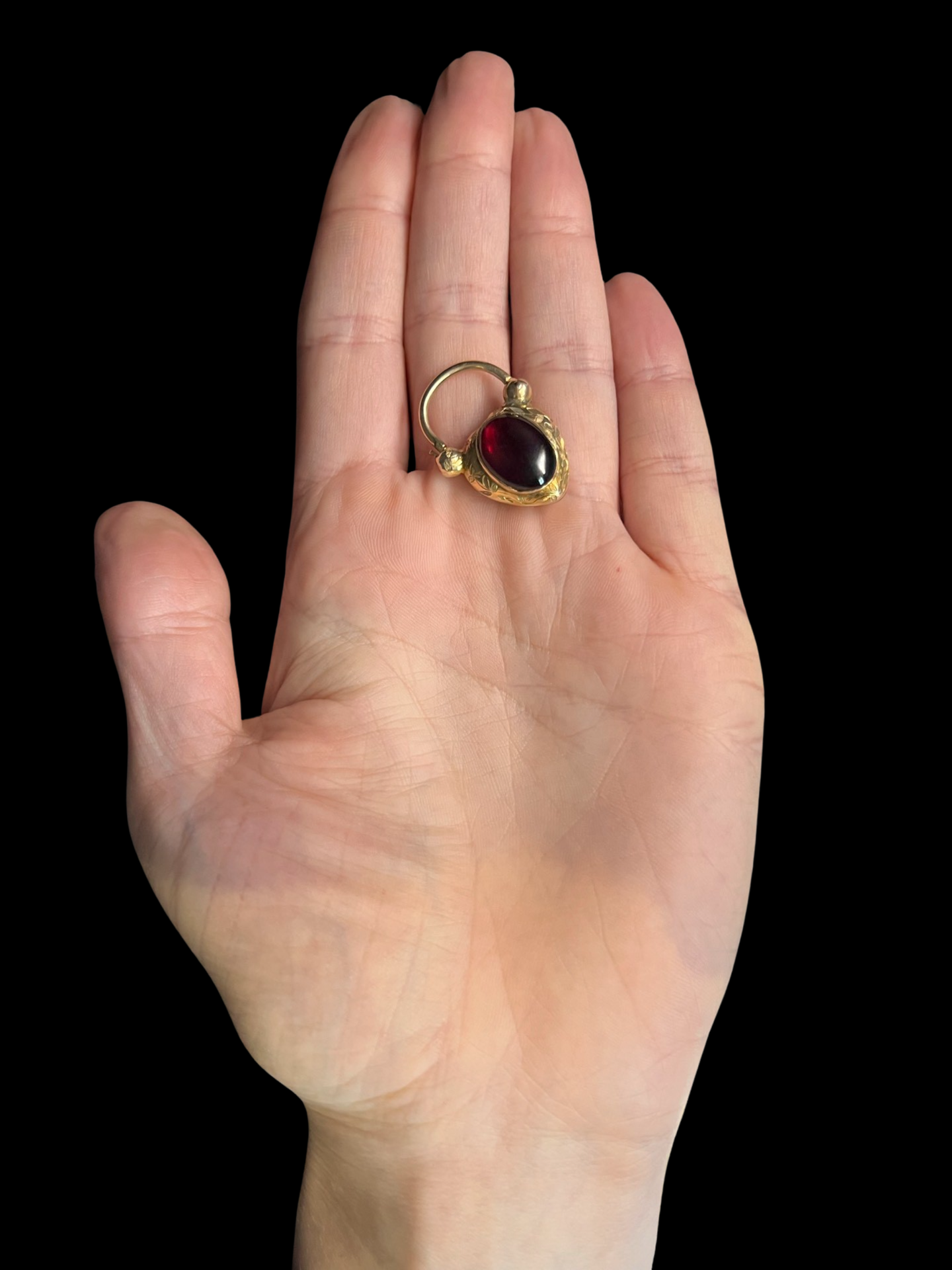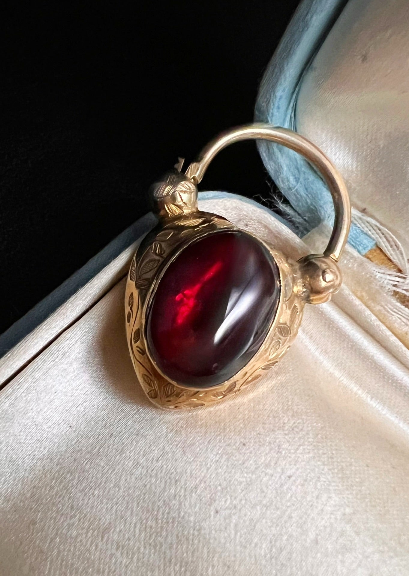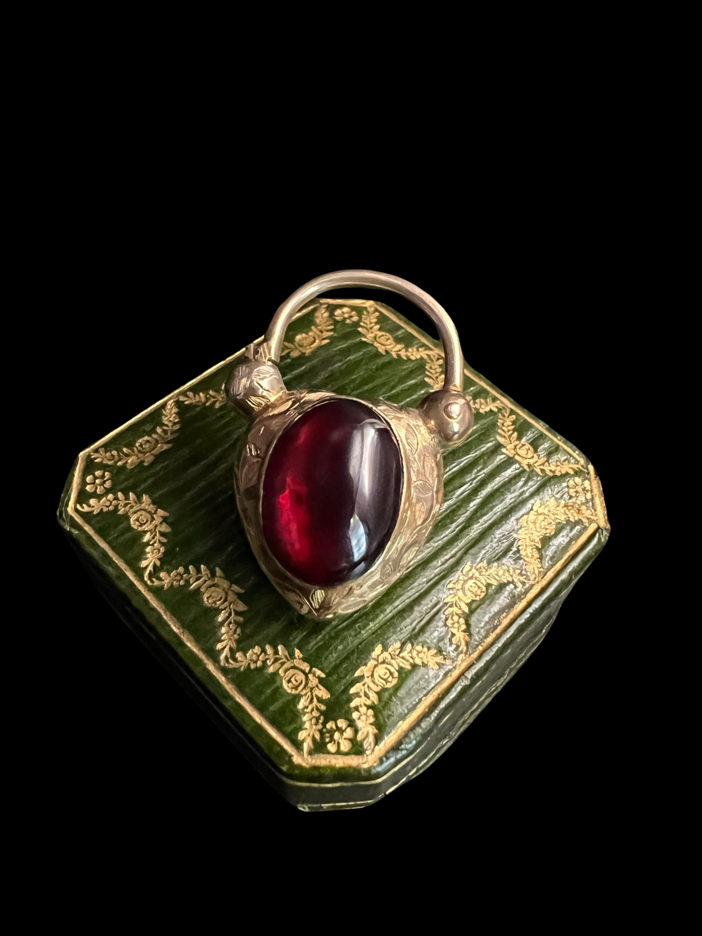 The centre of the heart has a large foiled cabochon garnet with a gorgeous deep red hue.