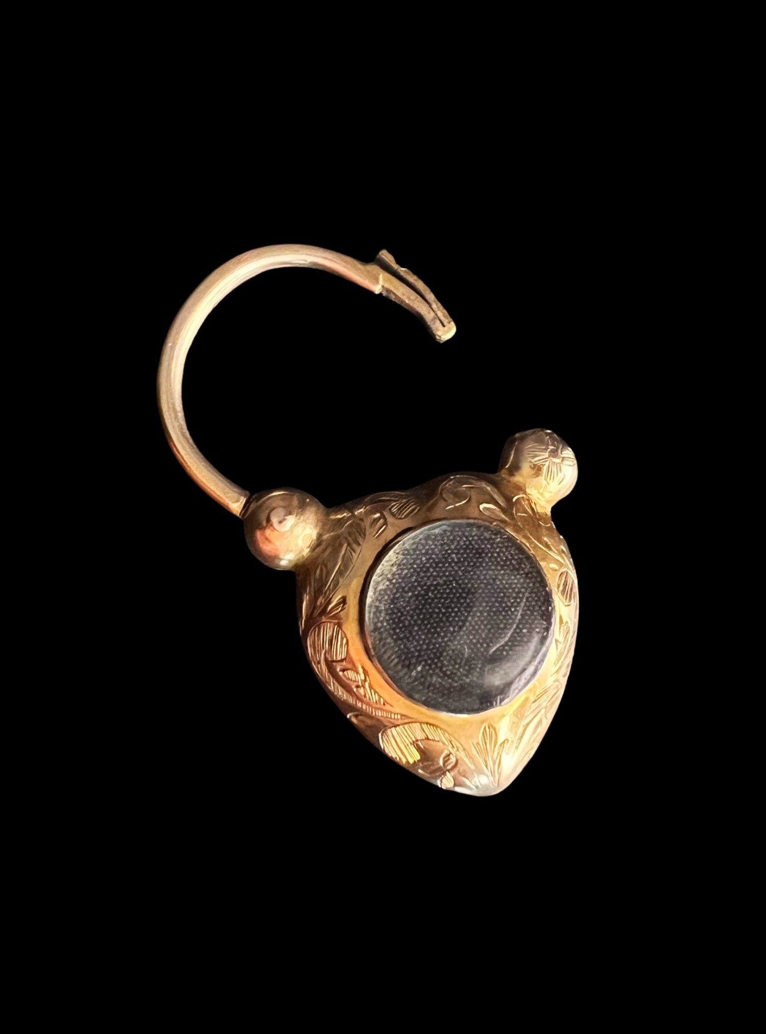 An amazing English Victorian 15ct gold puffy heart padlock pendant.