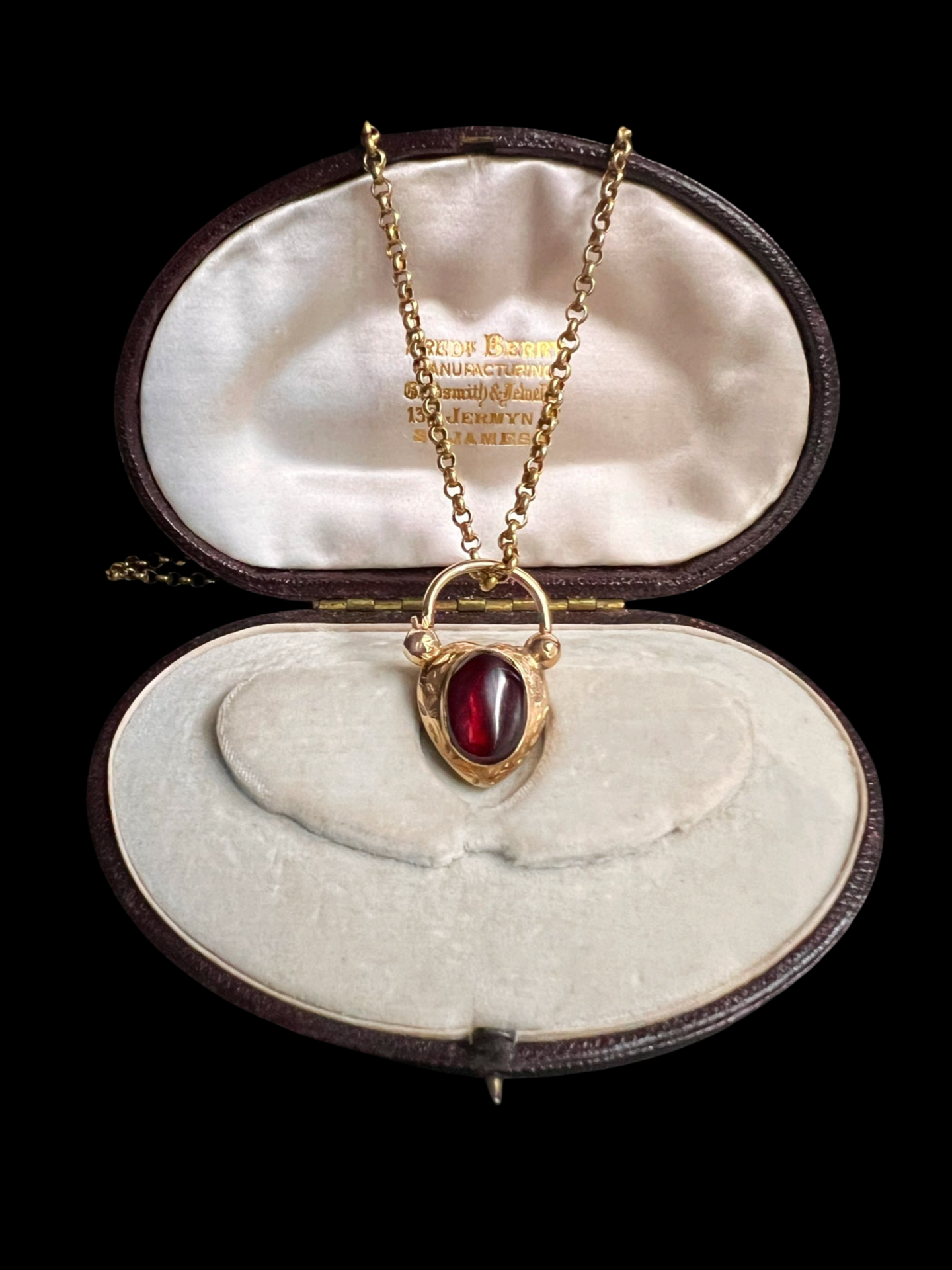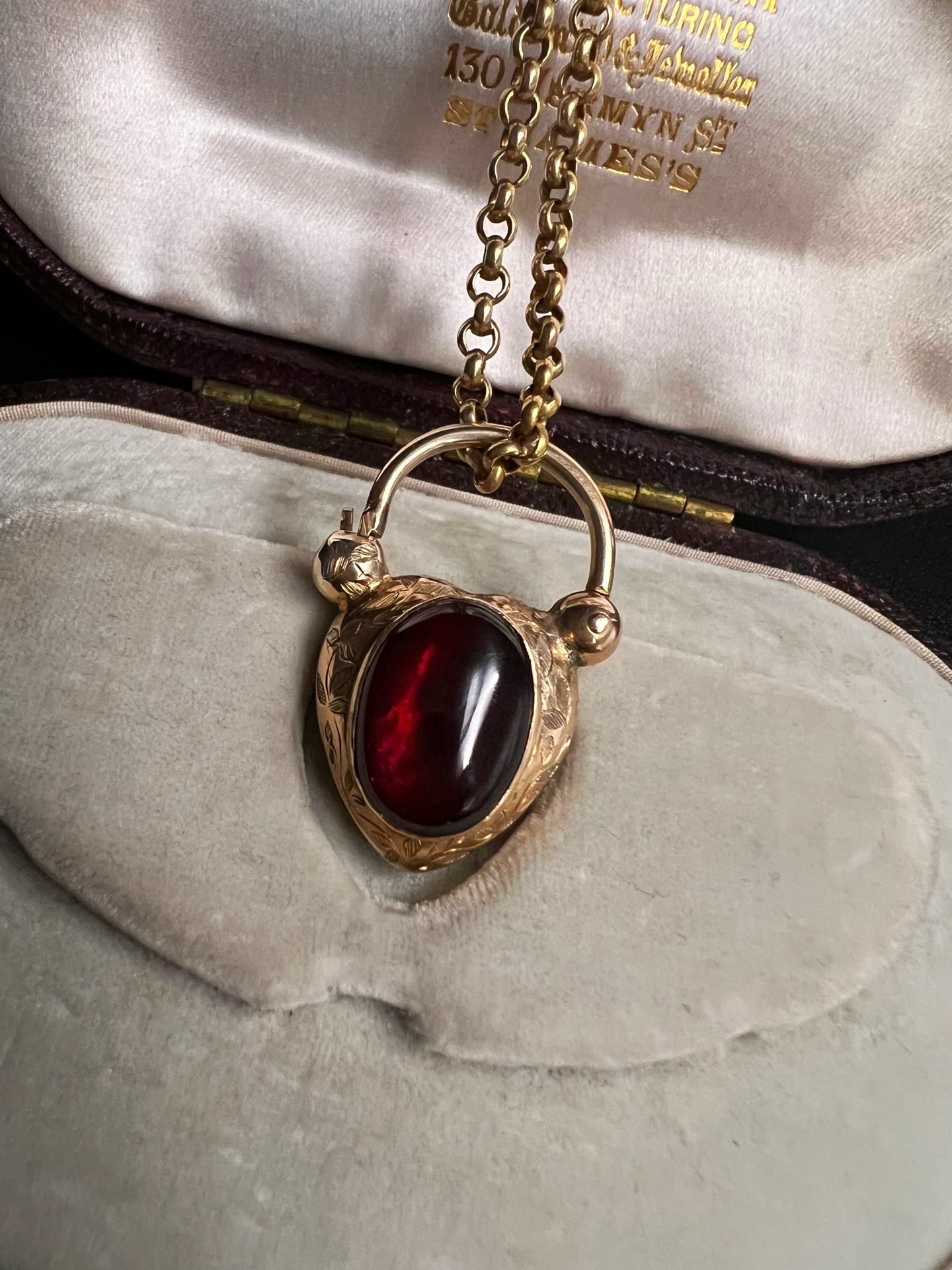 VICTORIAN LARGE GARNET PUFFY HEART PADLOCK