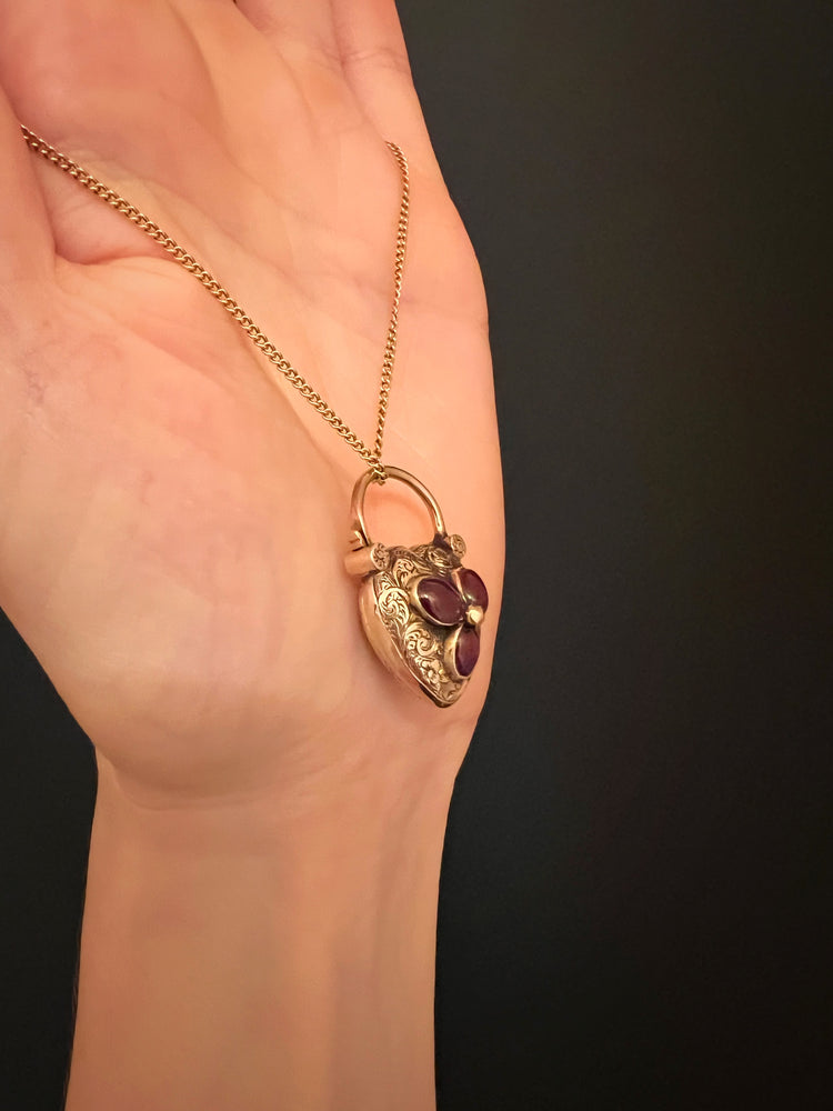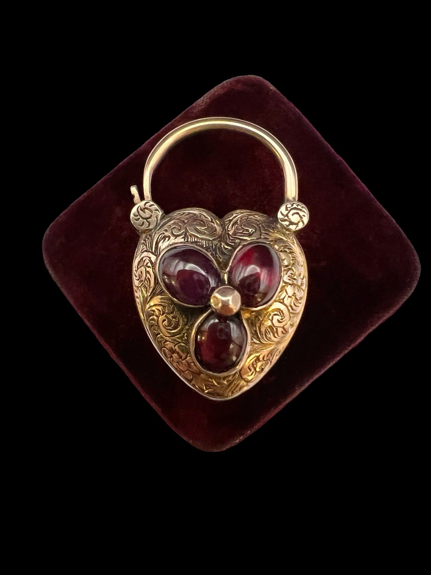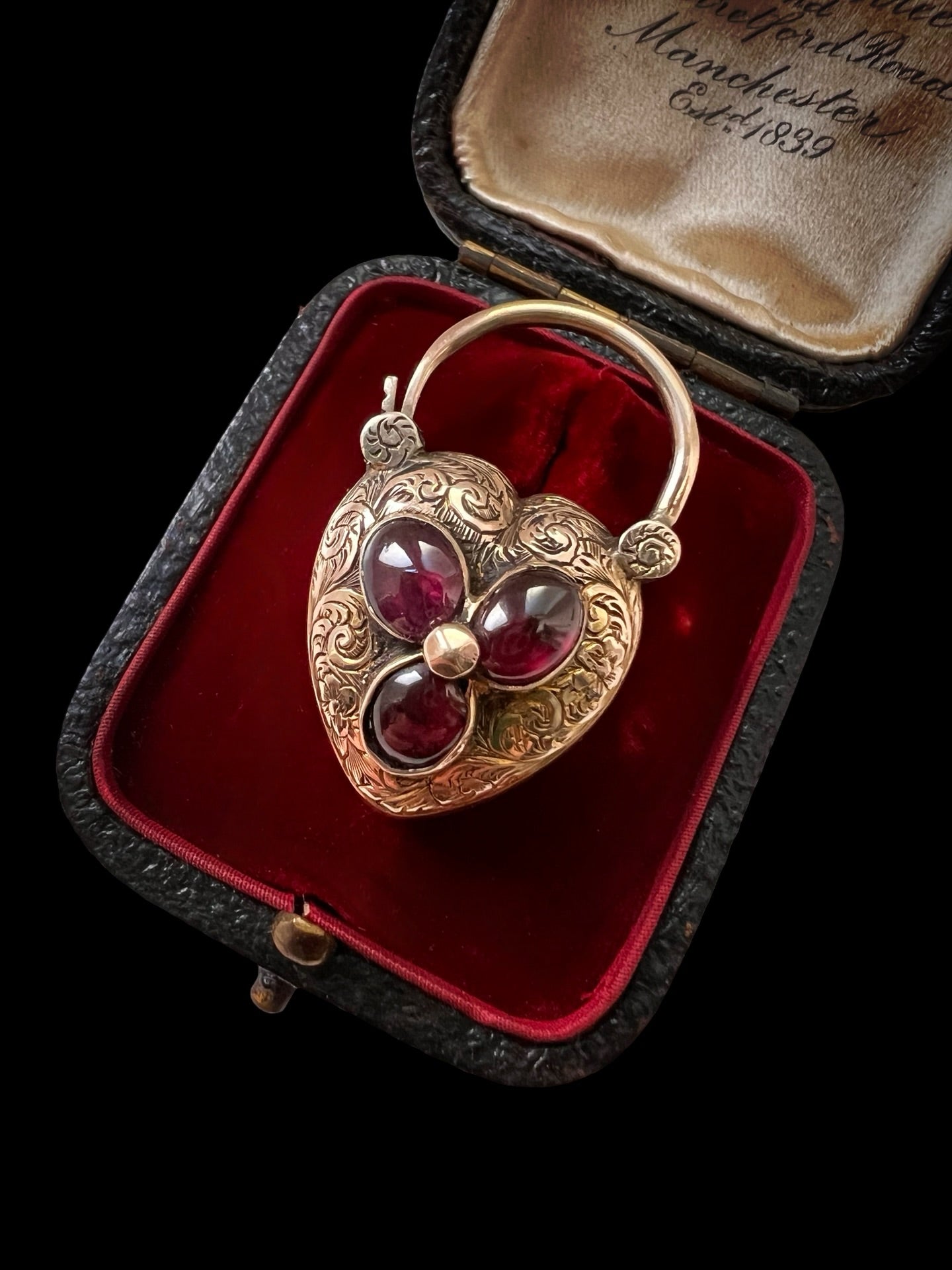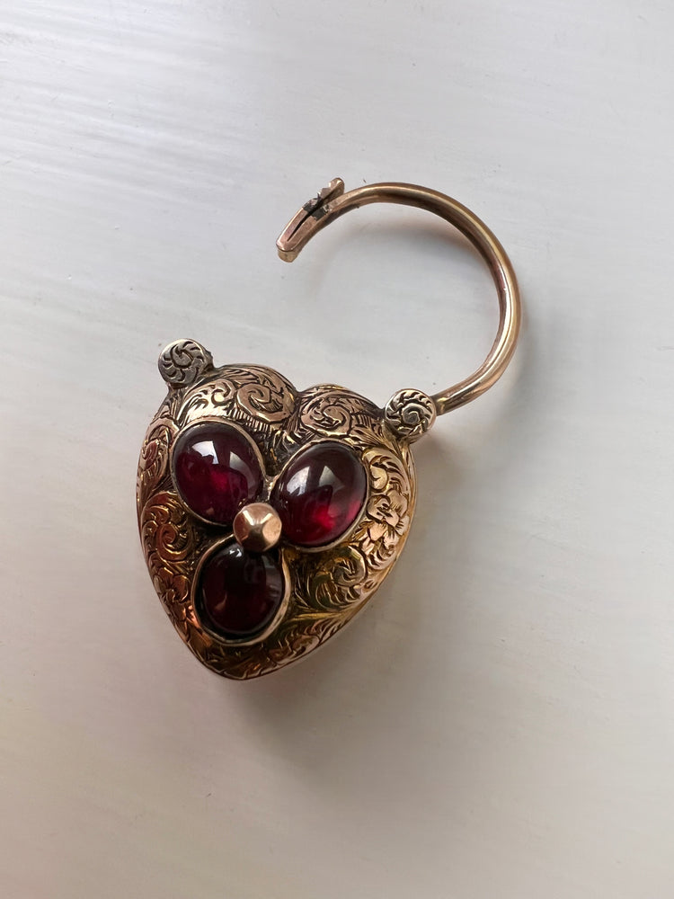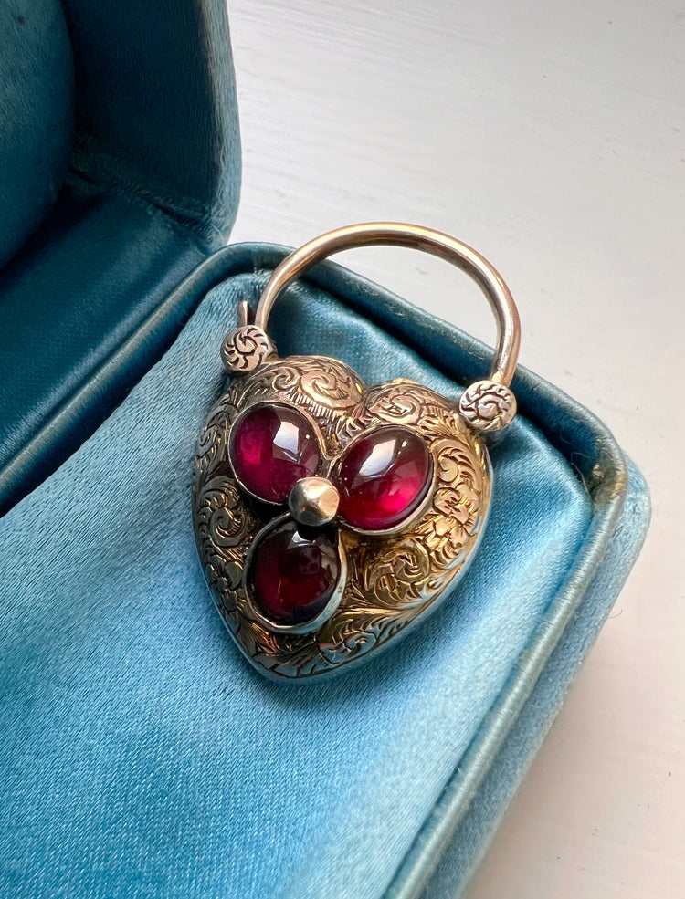 VICTORIAN LARGE GARNET PUFFY HEART PADLOCK