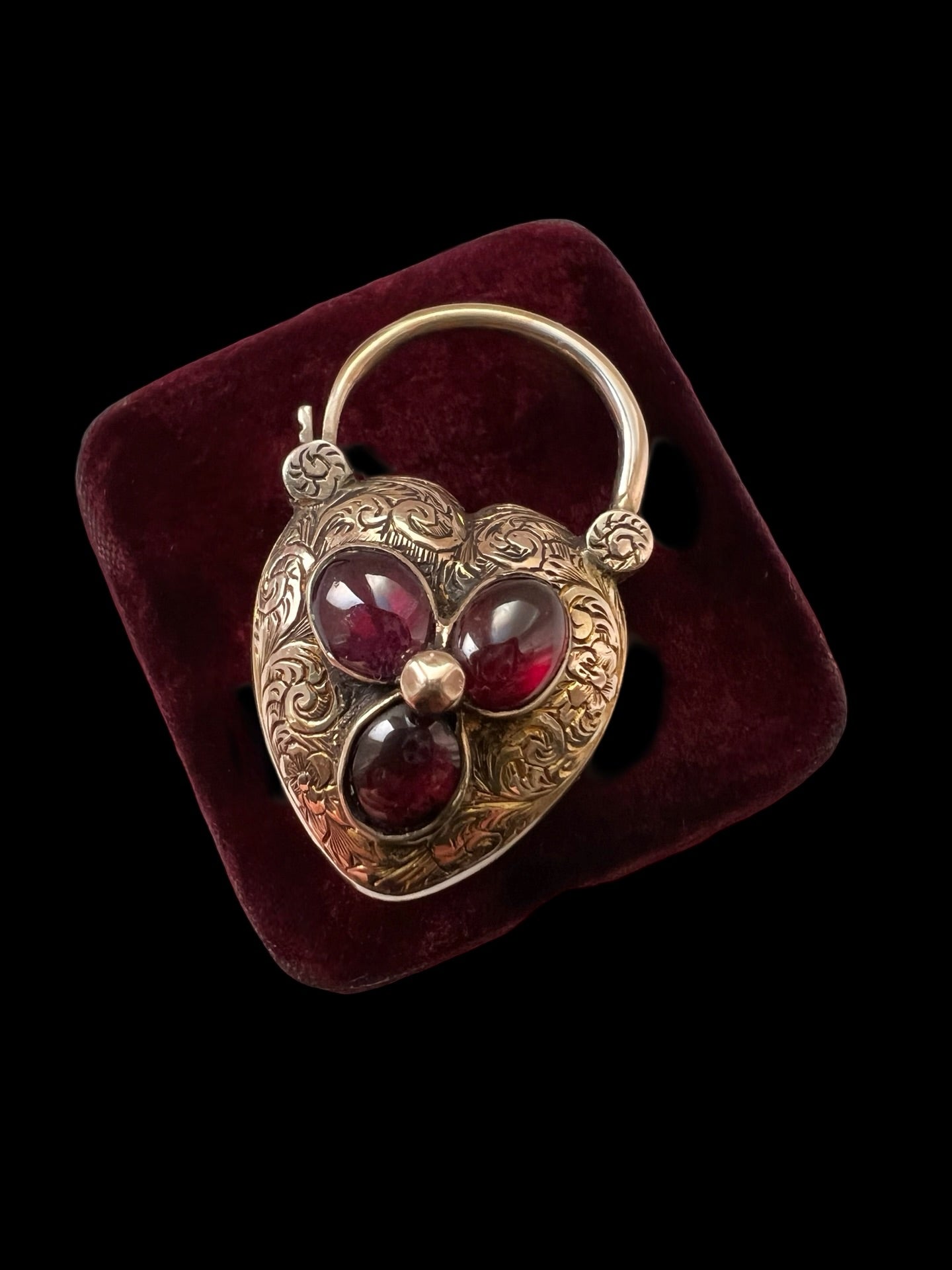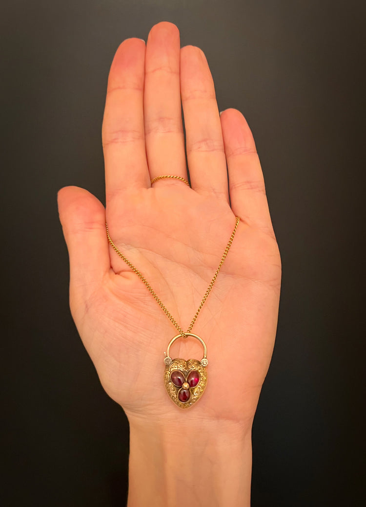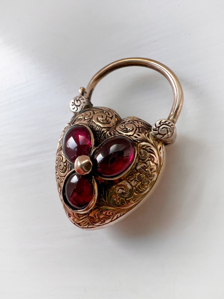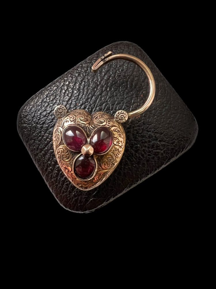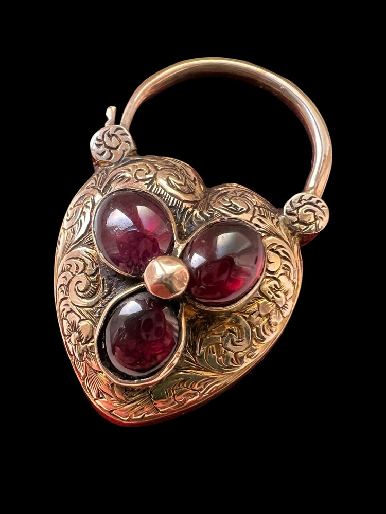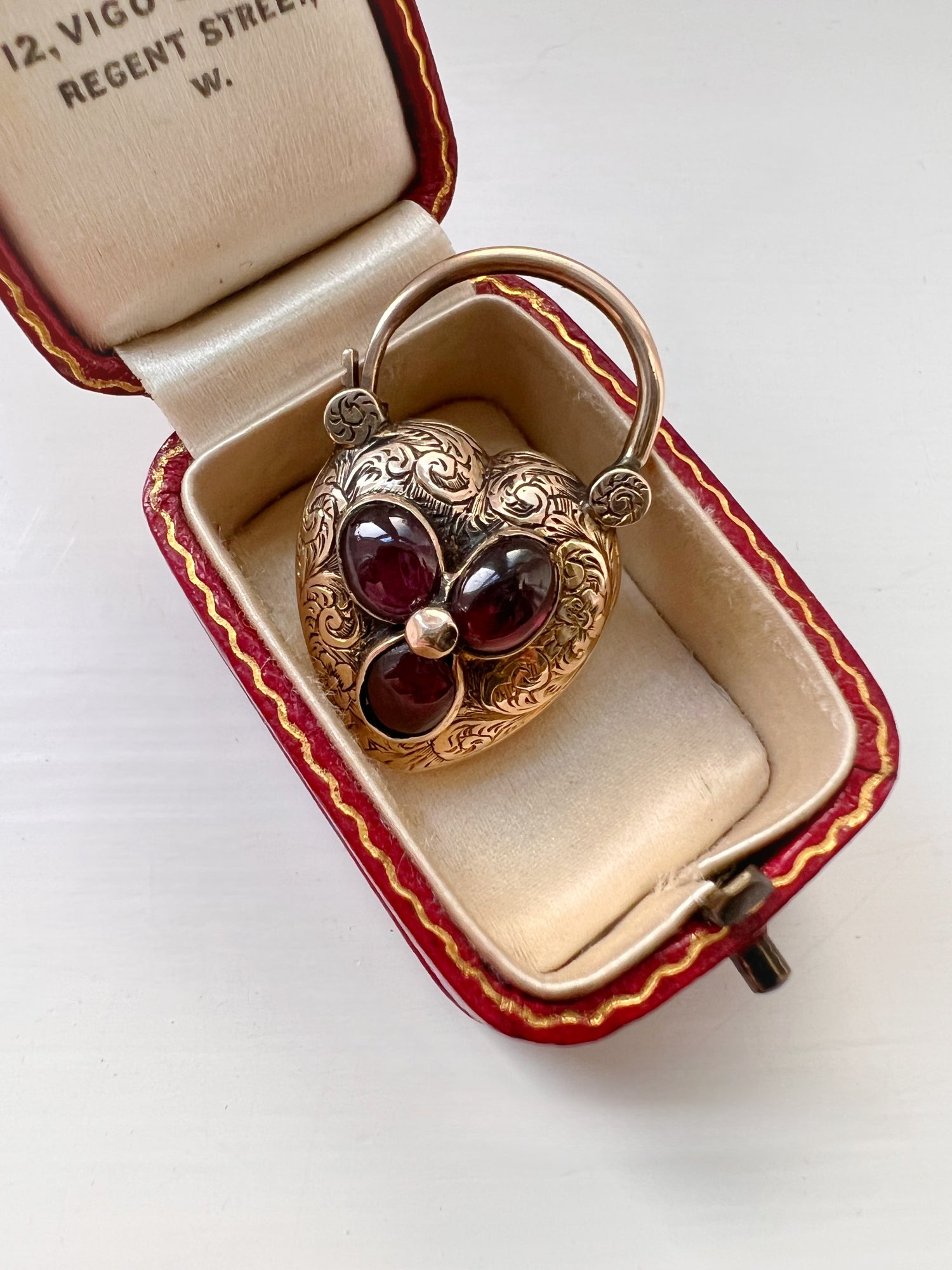 VICTORIAN LARGE GARNET PUFFY HEART PADLOCK