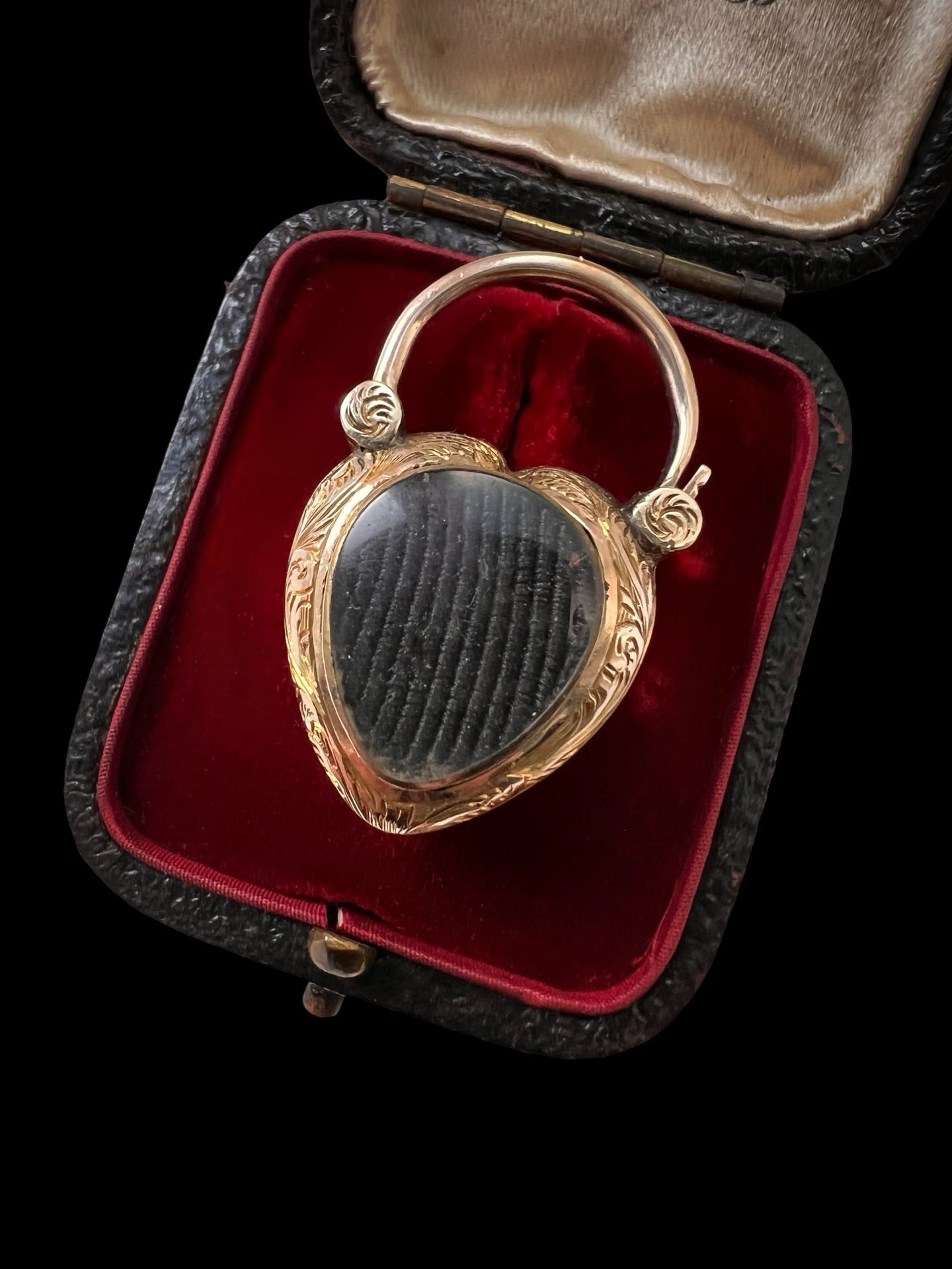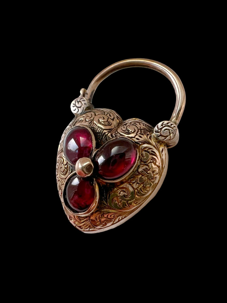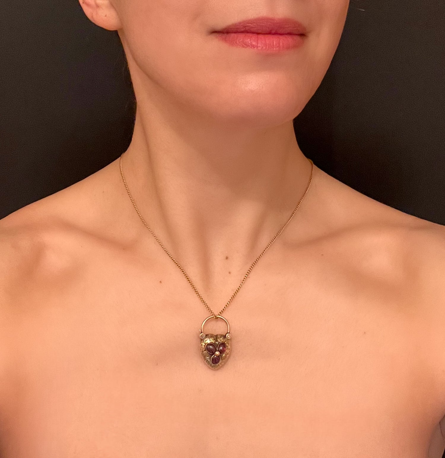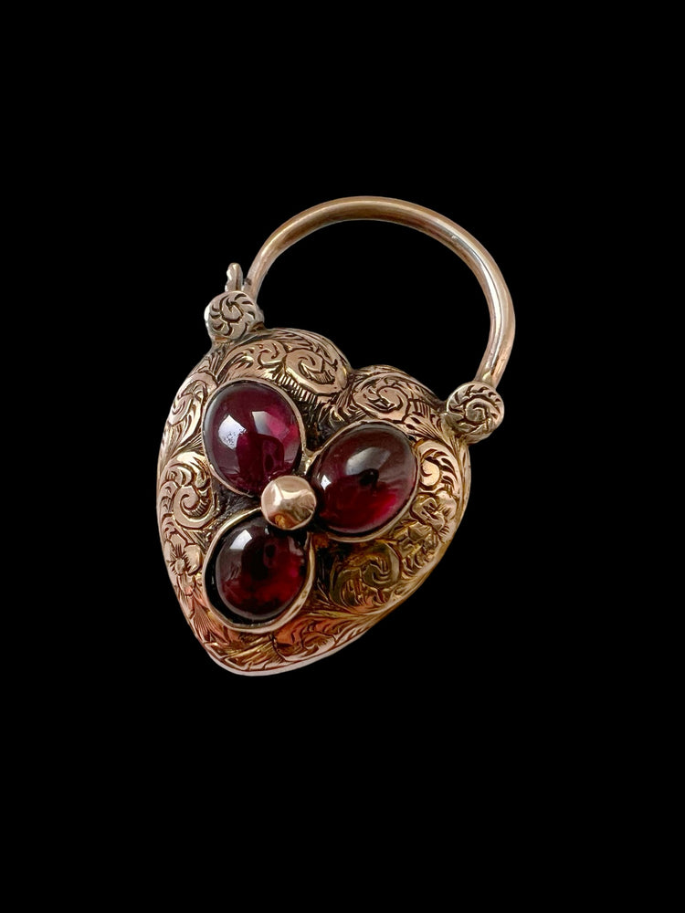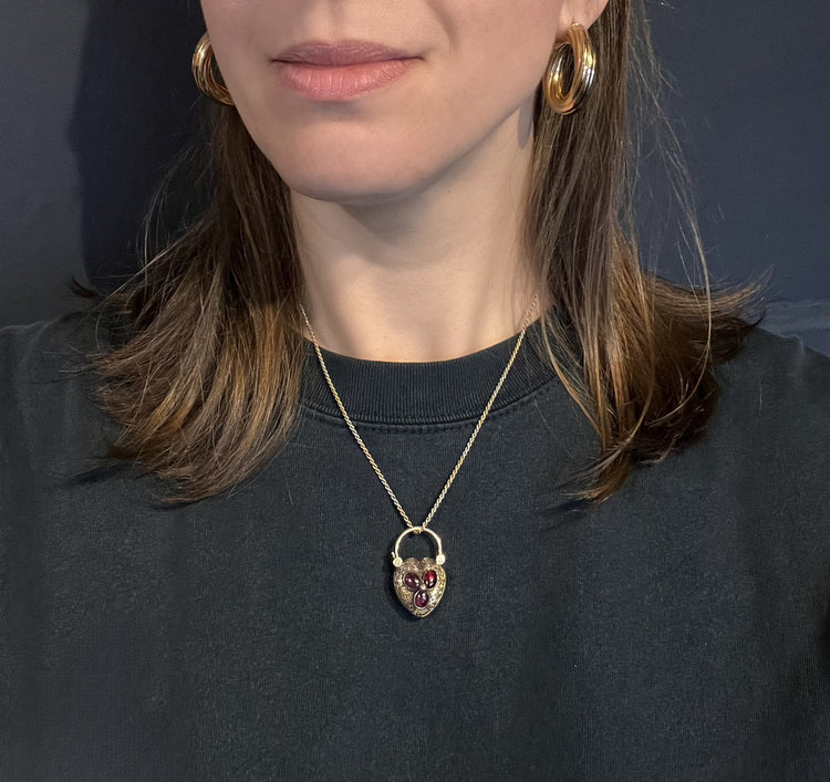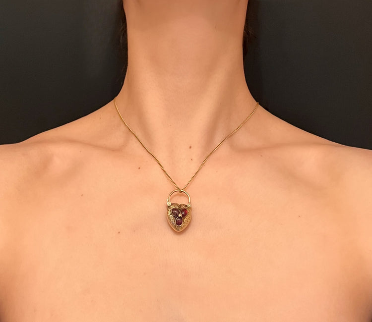 VICTORIAN LARGE GARNET PUFFY HEART PADLOCK