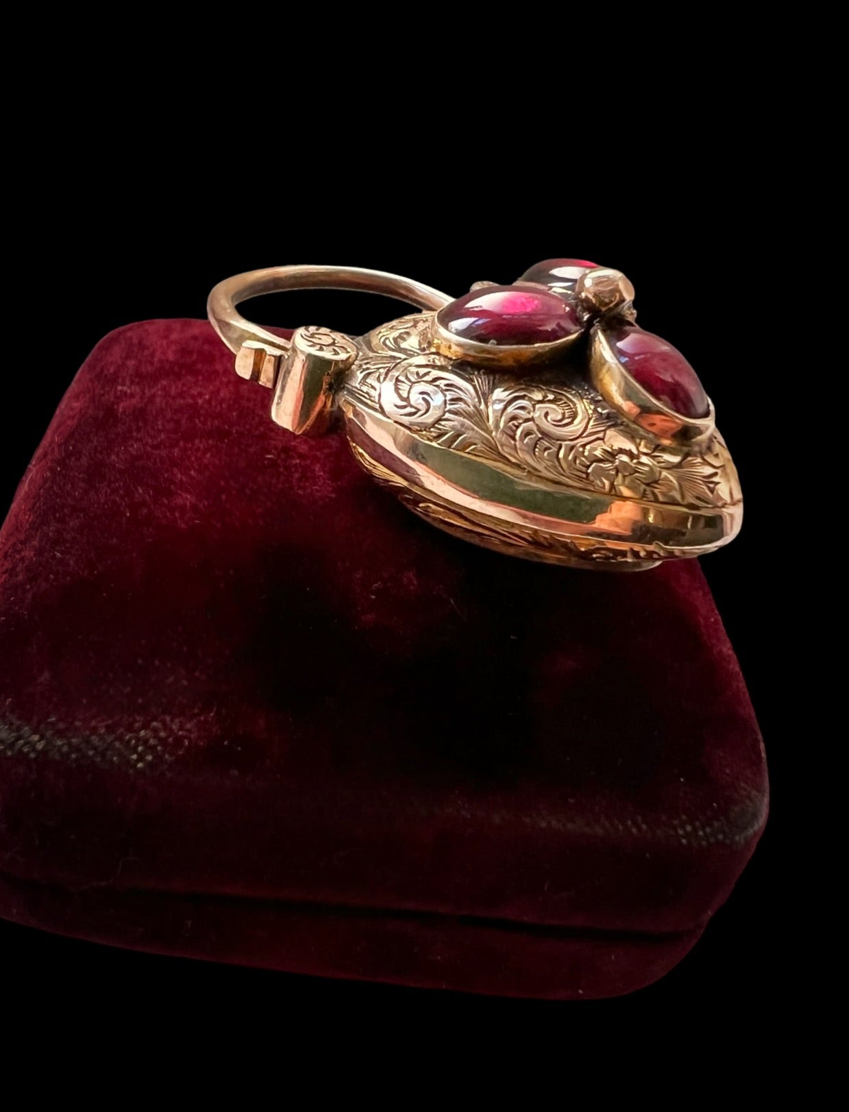 The centre of the heart has three foiled cabochon garnets with gorgeous pinky red hues.