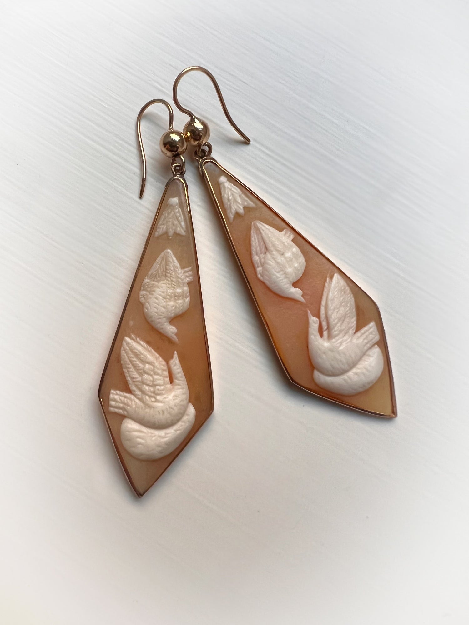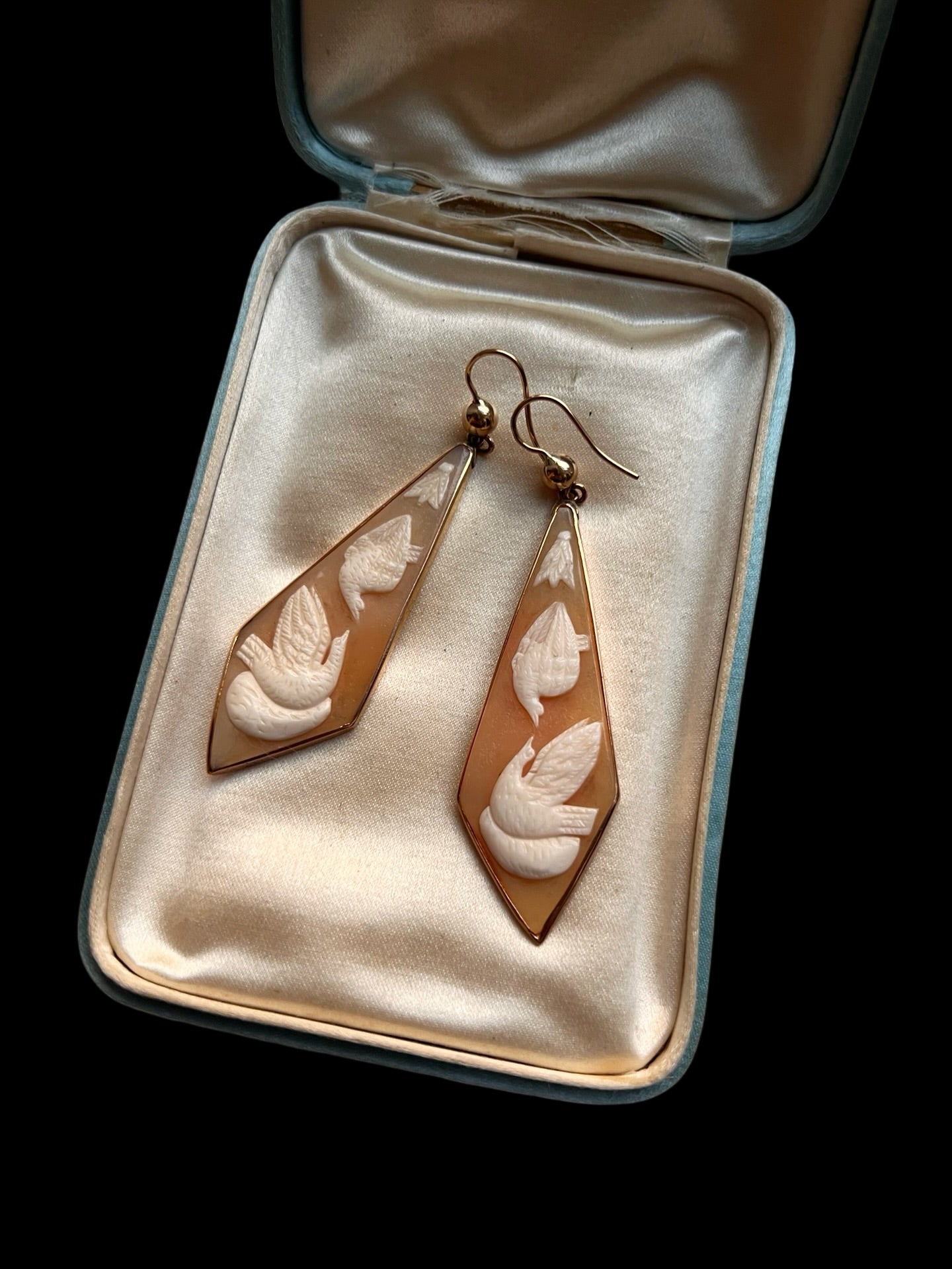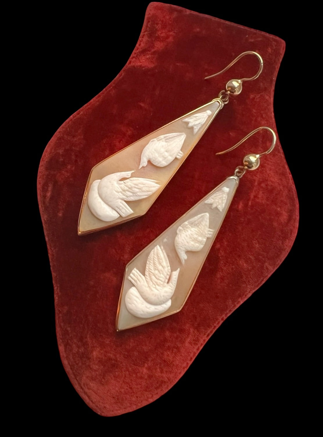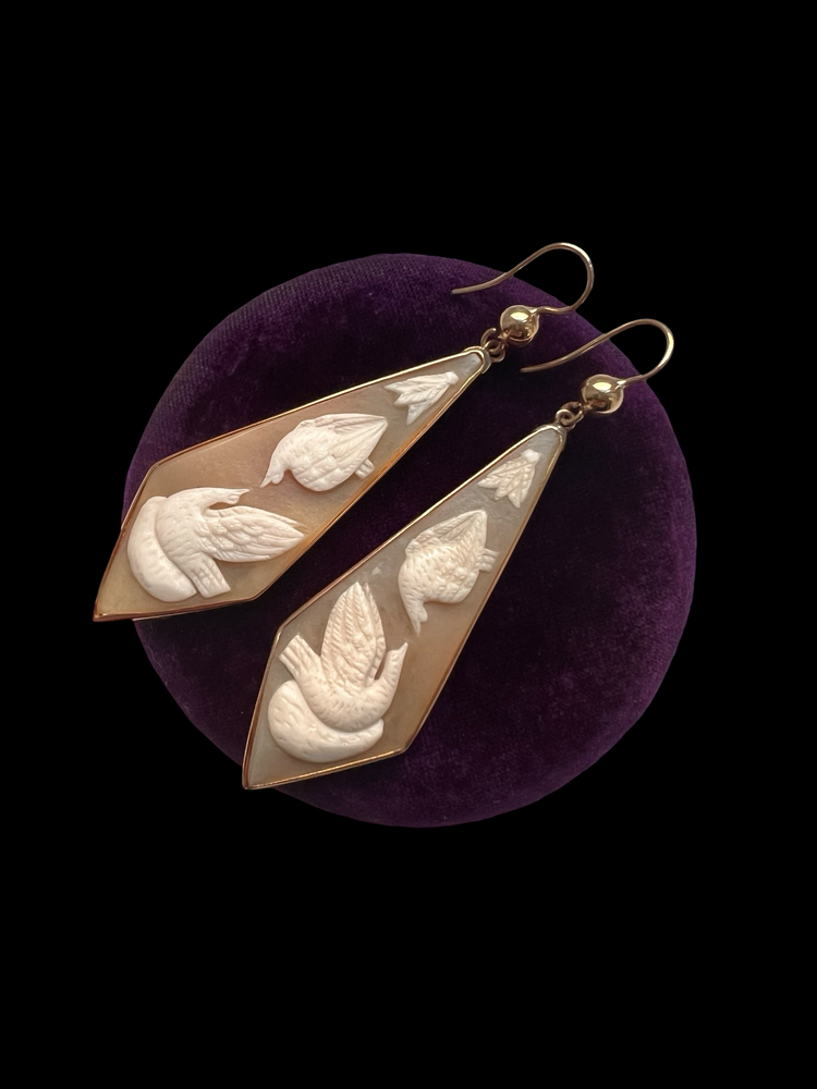 VICTORIAN ‘LOVE BIRD’ SHELL CAMEO EARRINGS