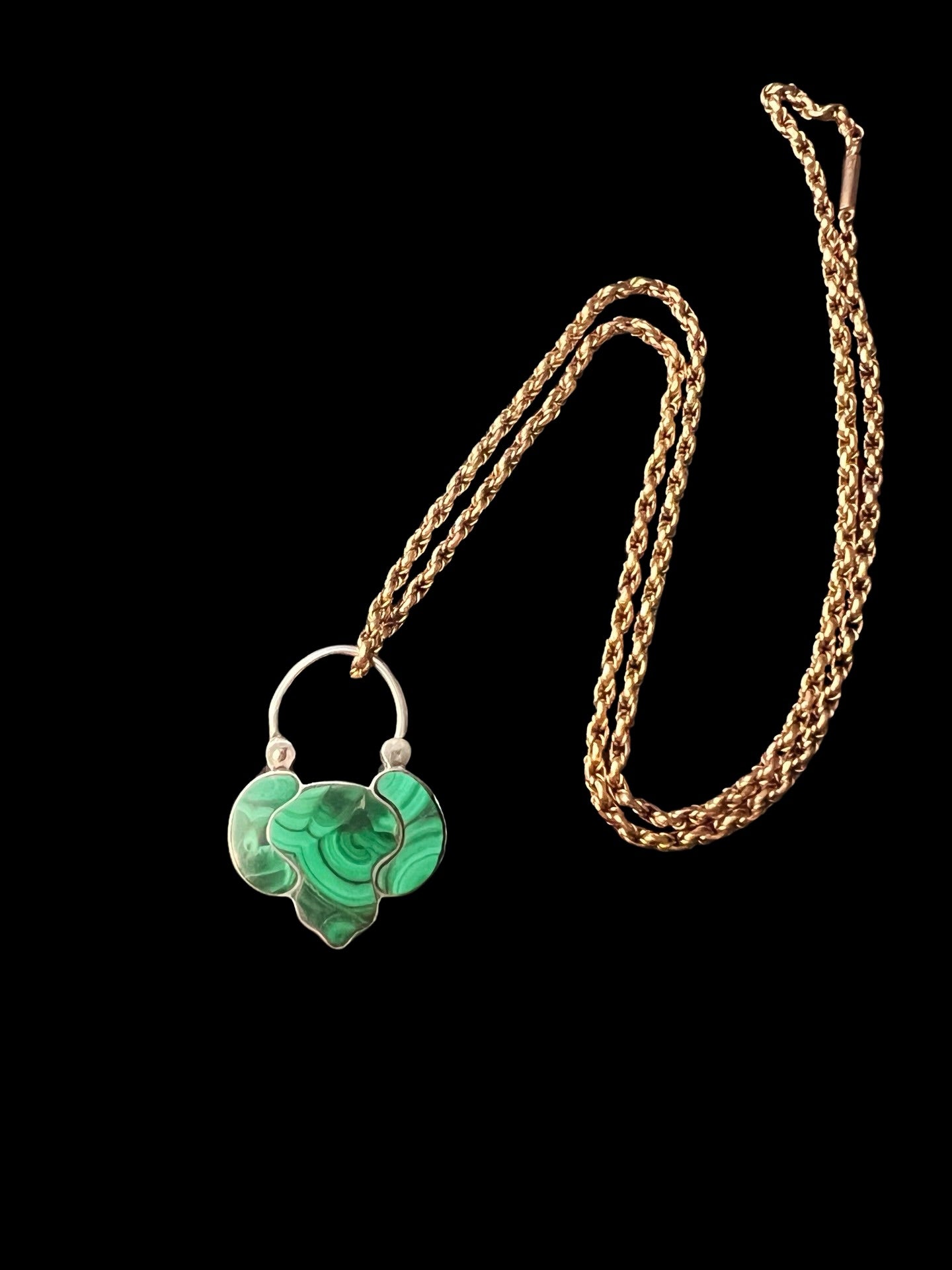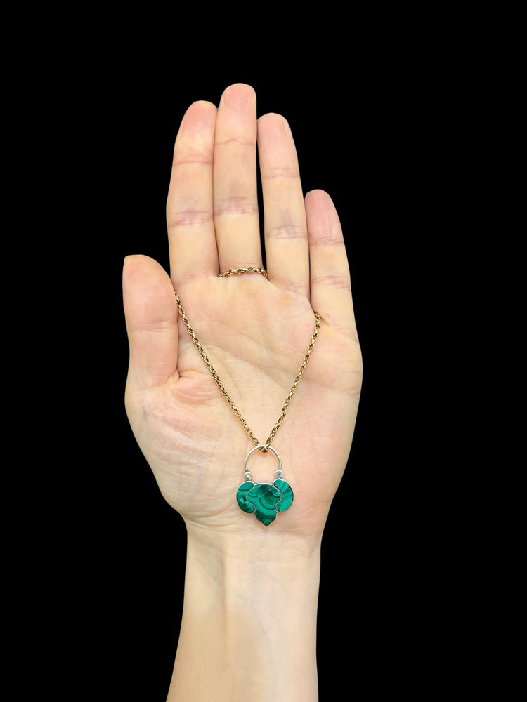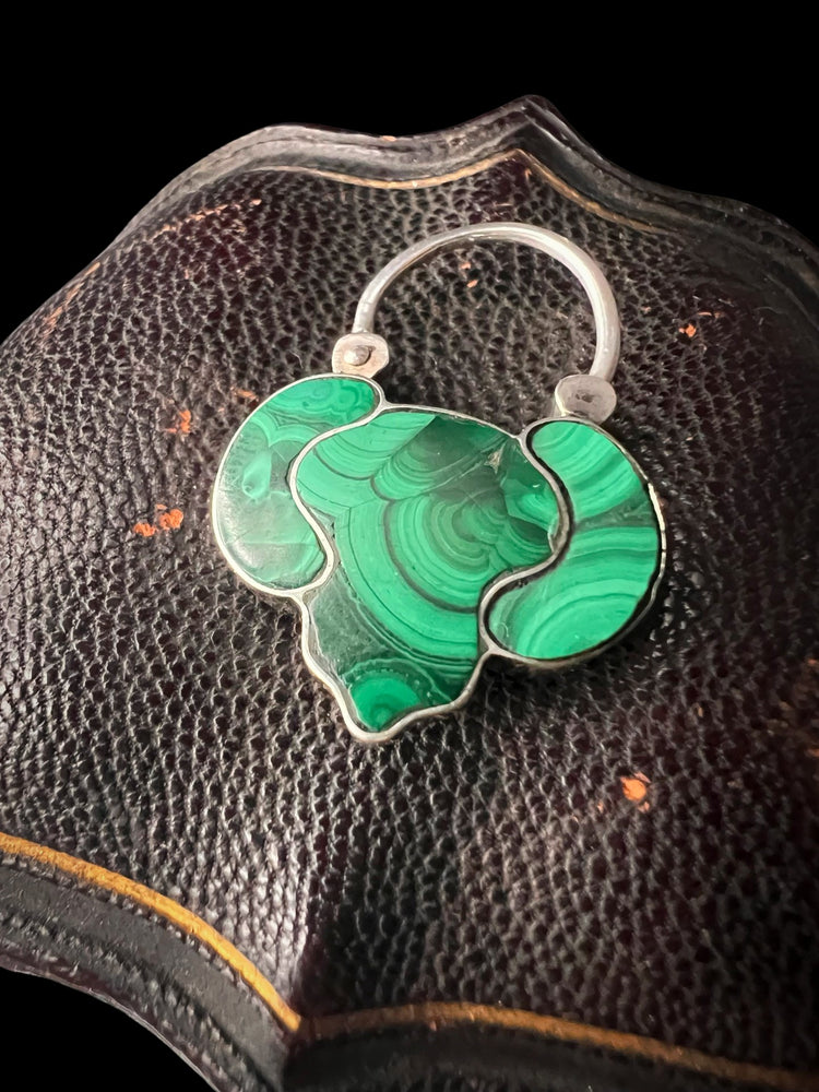 A gorgeous Victorian Malachite and Silver padlock pendant.
