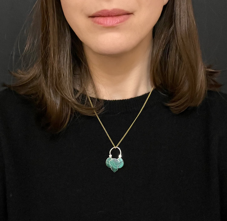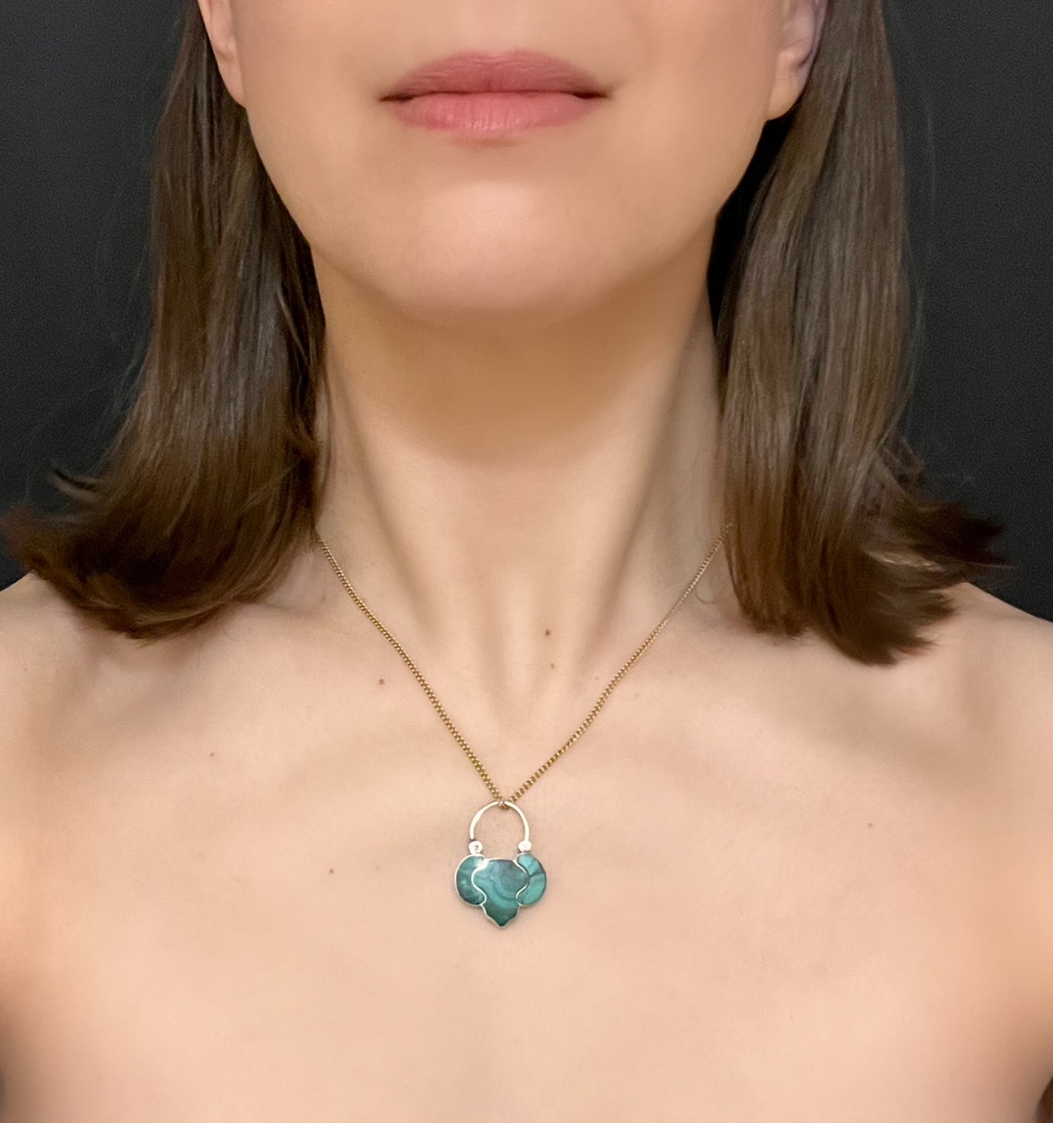 VICTORIAN MALACHITE & SILVER PADLOCK PENDANT