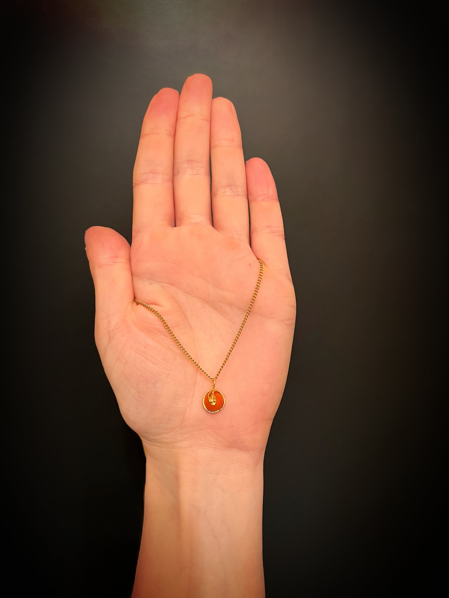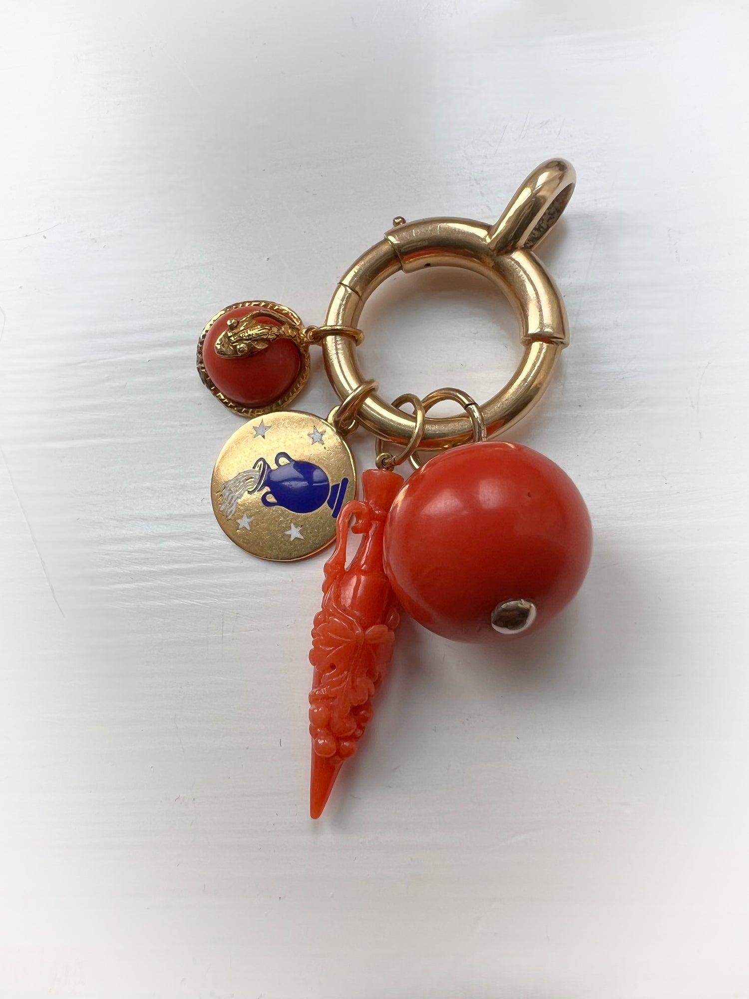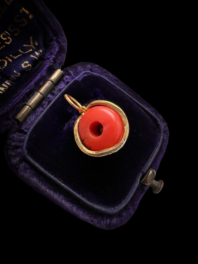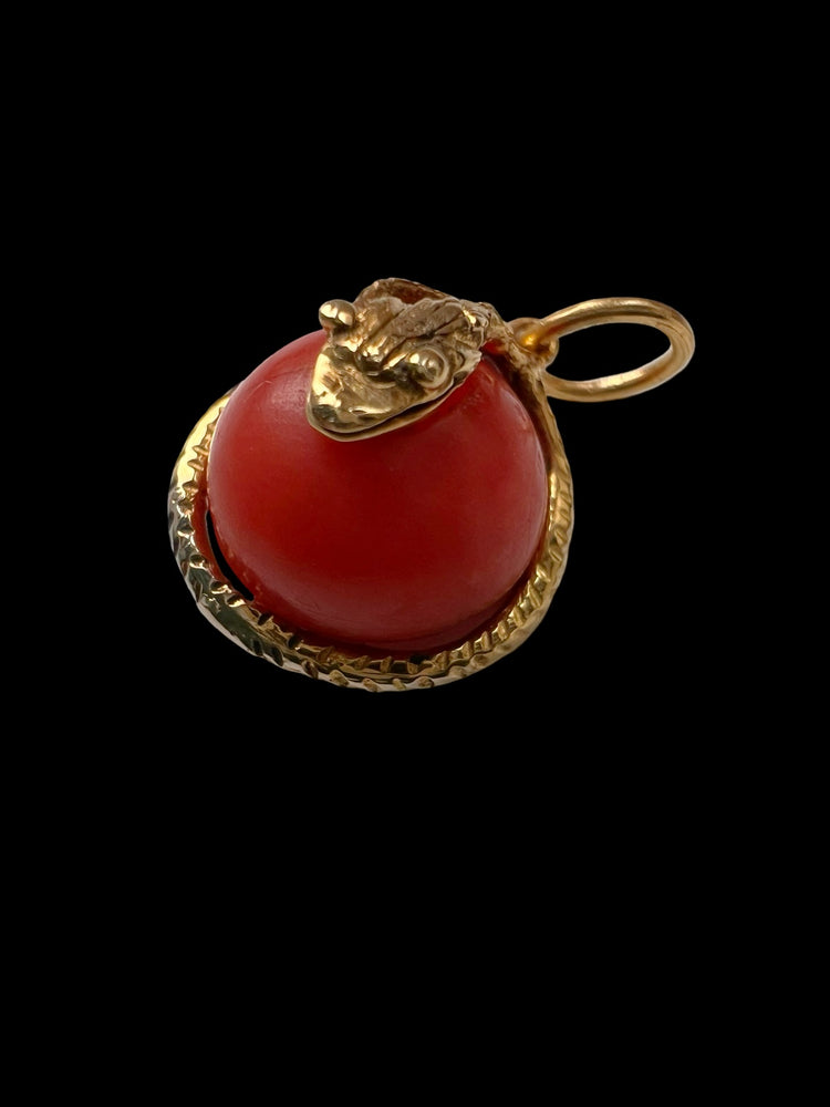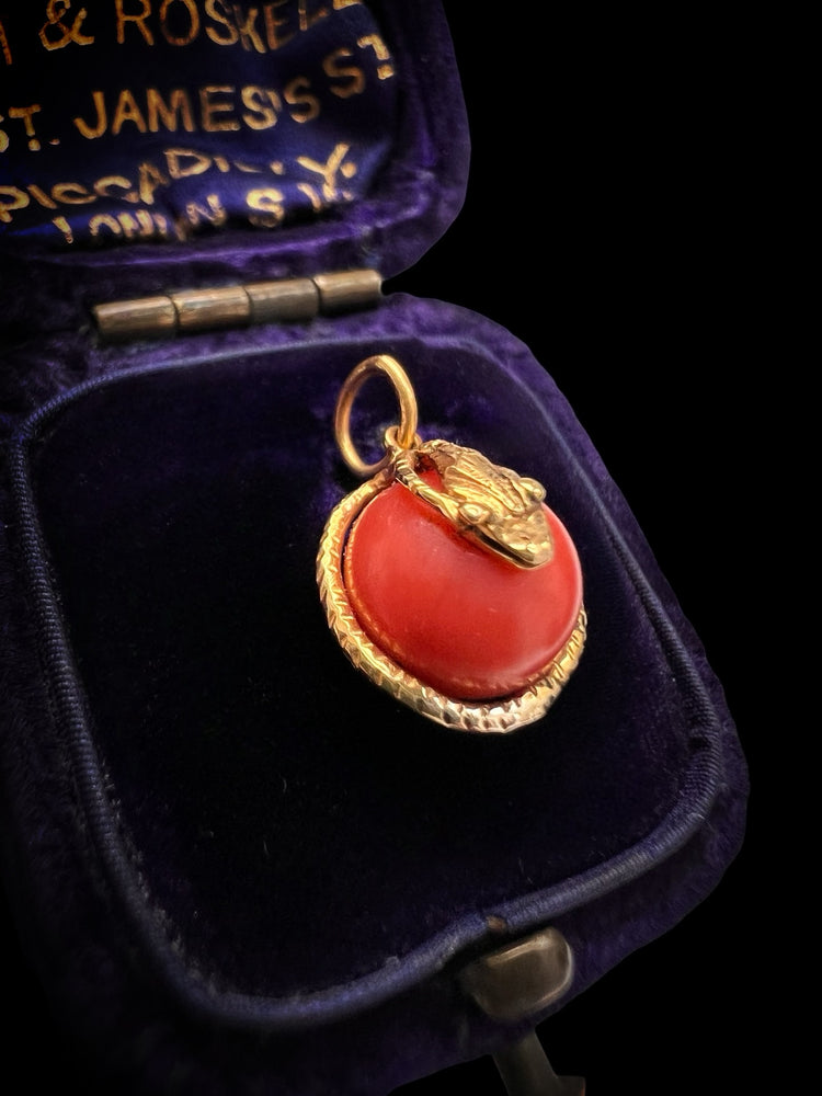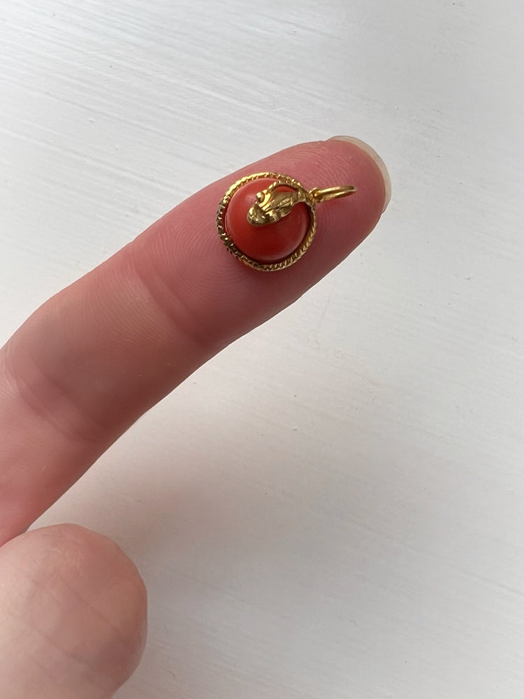 VICTORIAN MINI CORAL & COILED GOLD SNAKE PENDANT