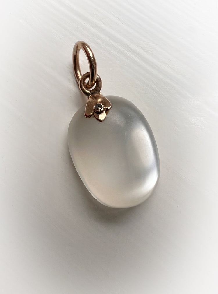 The domed Moonstone is so tactile to touch, it looks like a gently worn pebble from the beach.