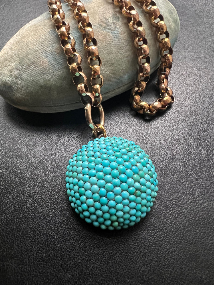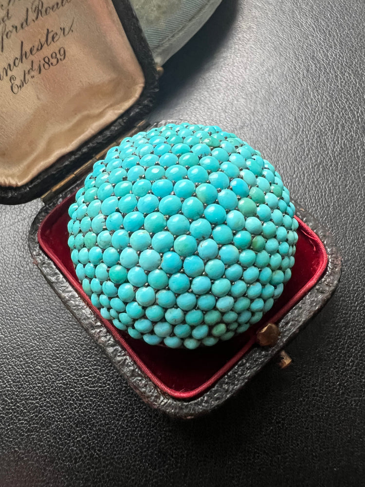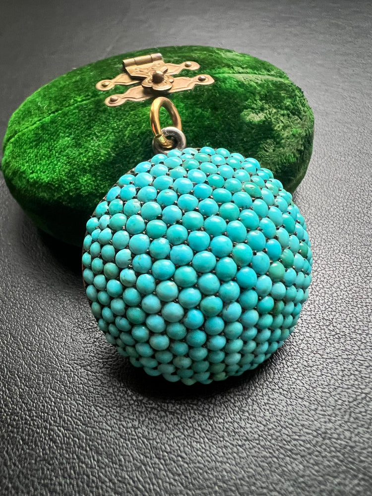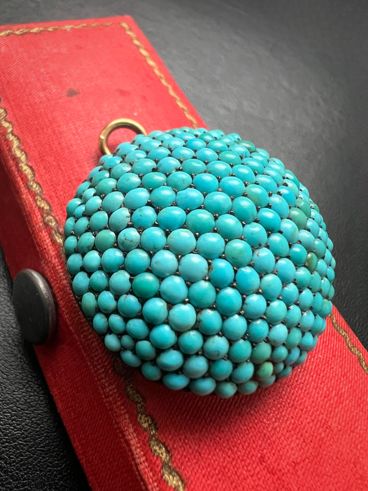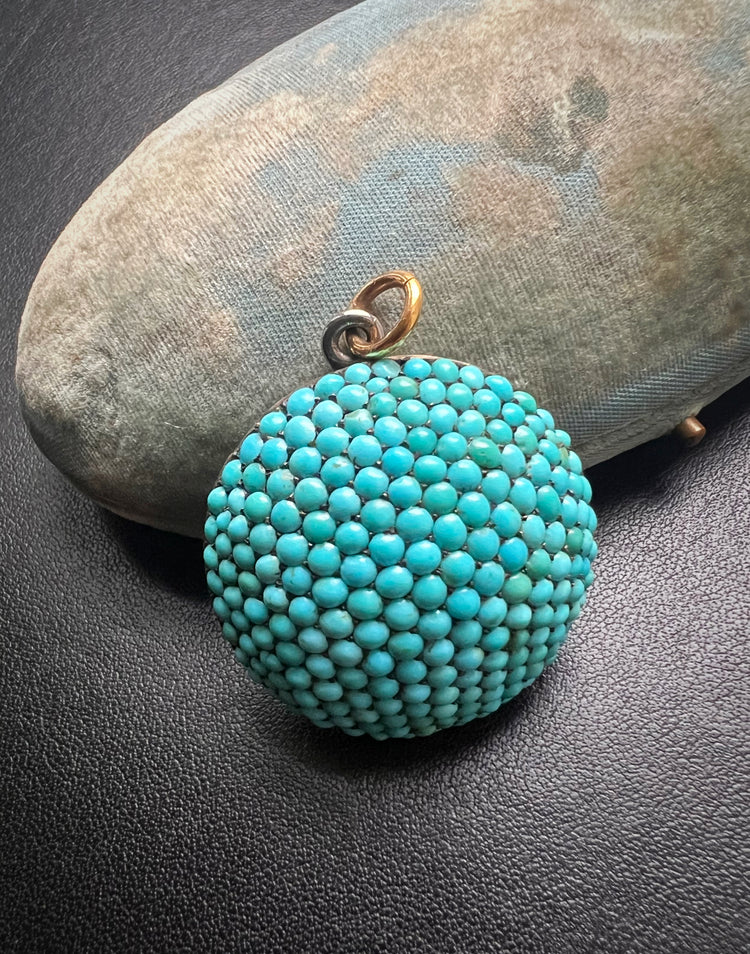 Pavé turquoise jewellery was extremely popular from the mid to late Victorian period. It was used in pendants, bracelets, full necklaces and rings.