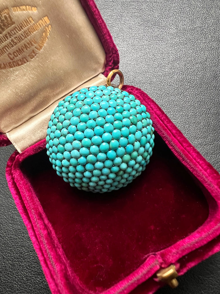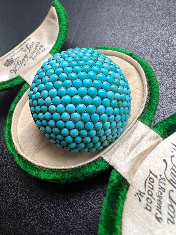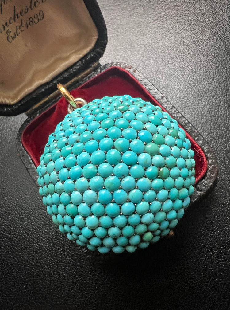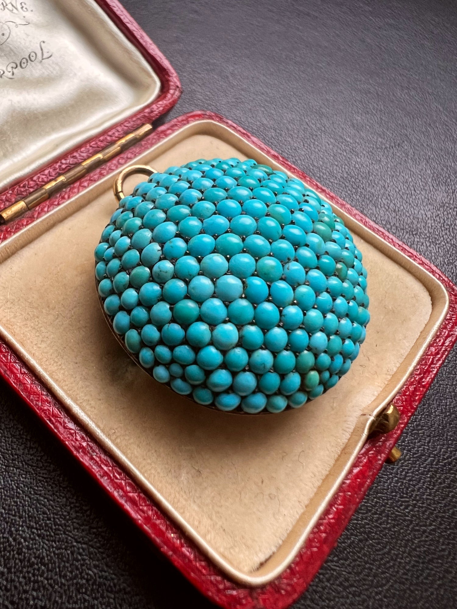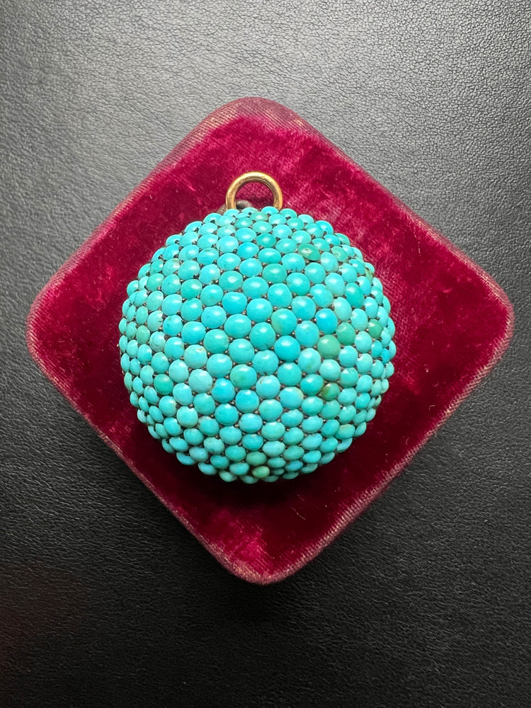 Pavé turquoise jewellery was extremely popular from the mid to late Victorian period. It was used in pendants, bracelets, full necklaces and rings.