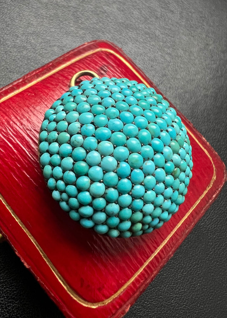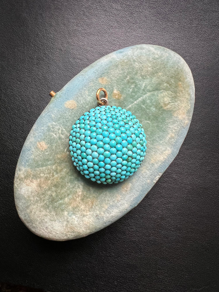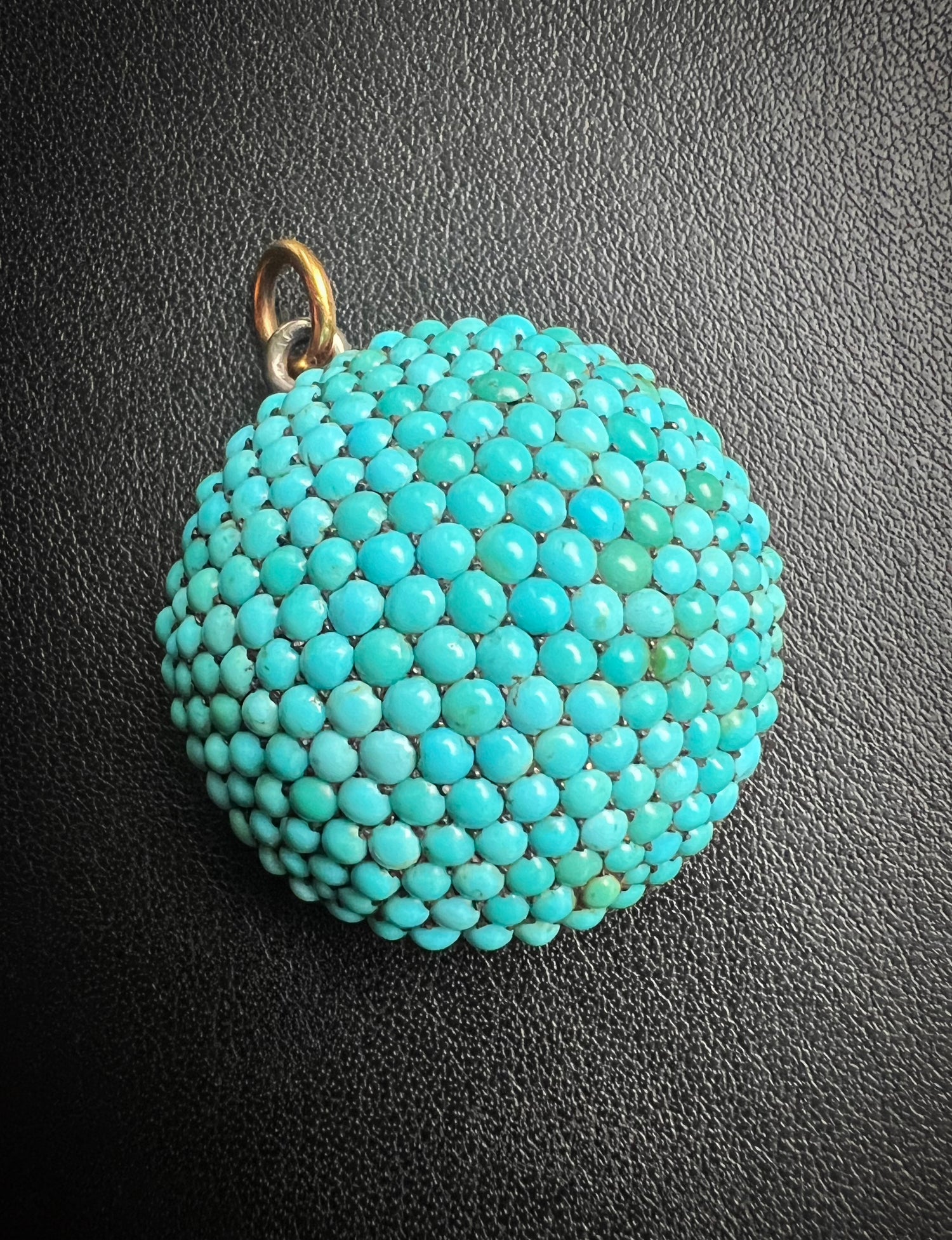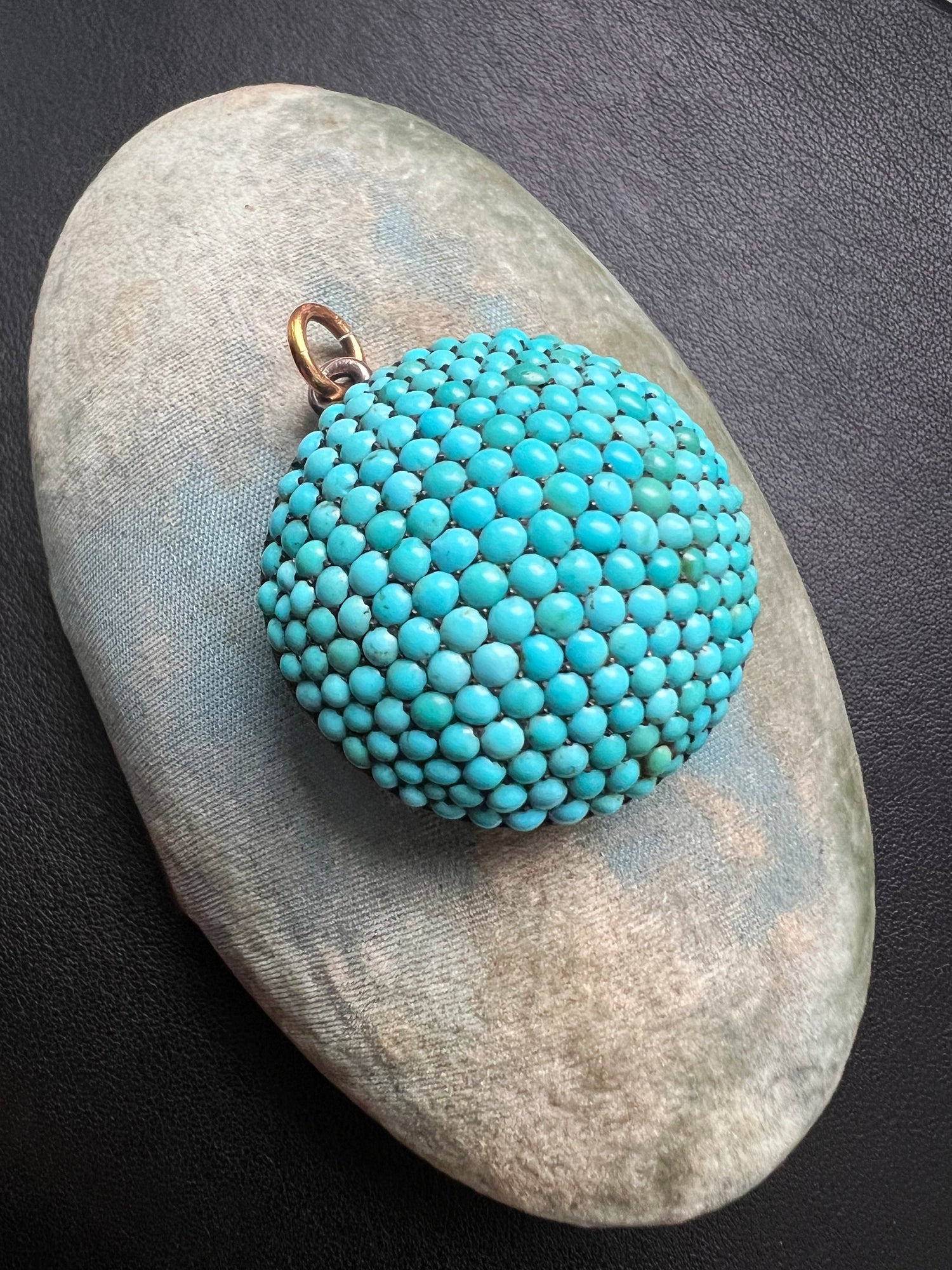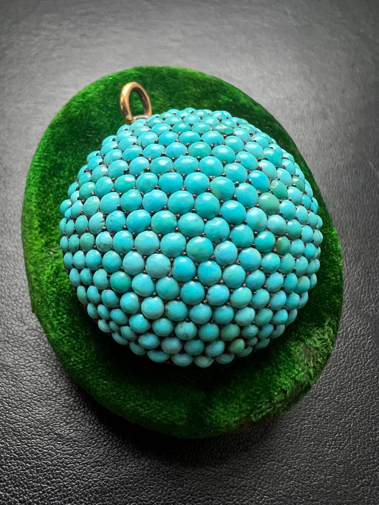 A fabulous Victorian pave turquoise dome pendant, set in silver.