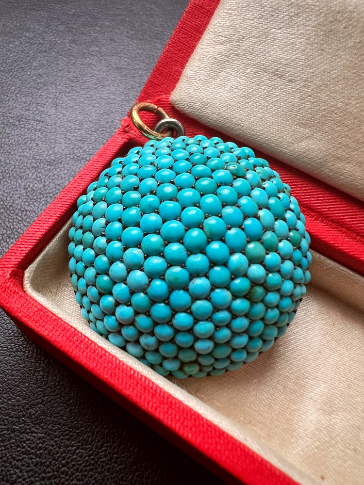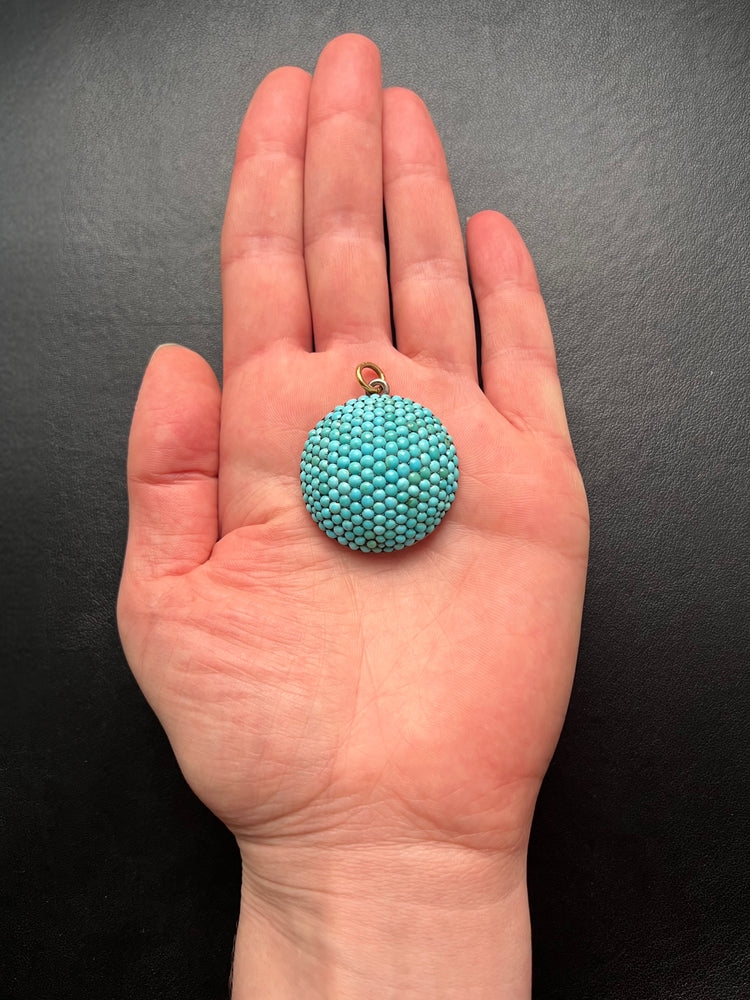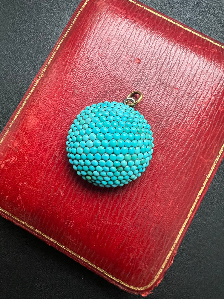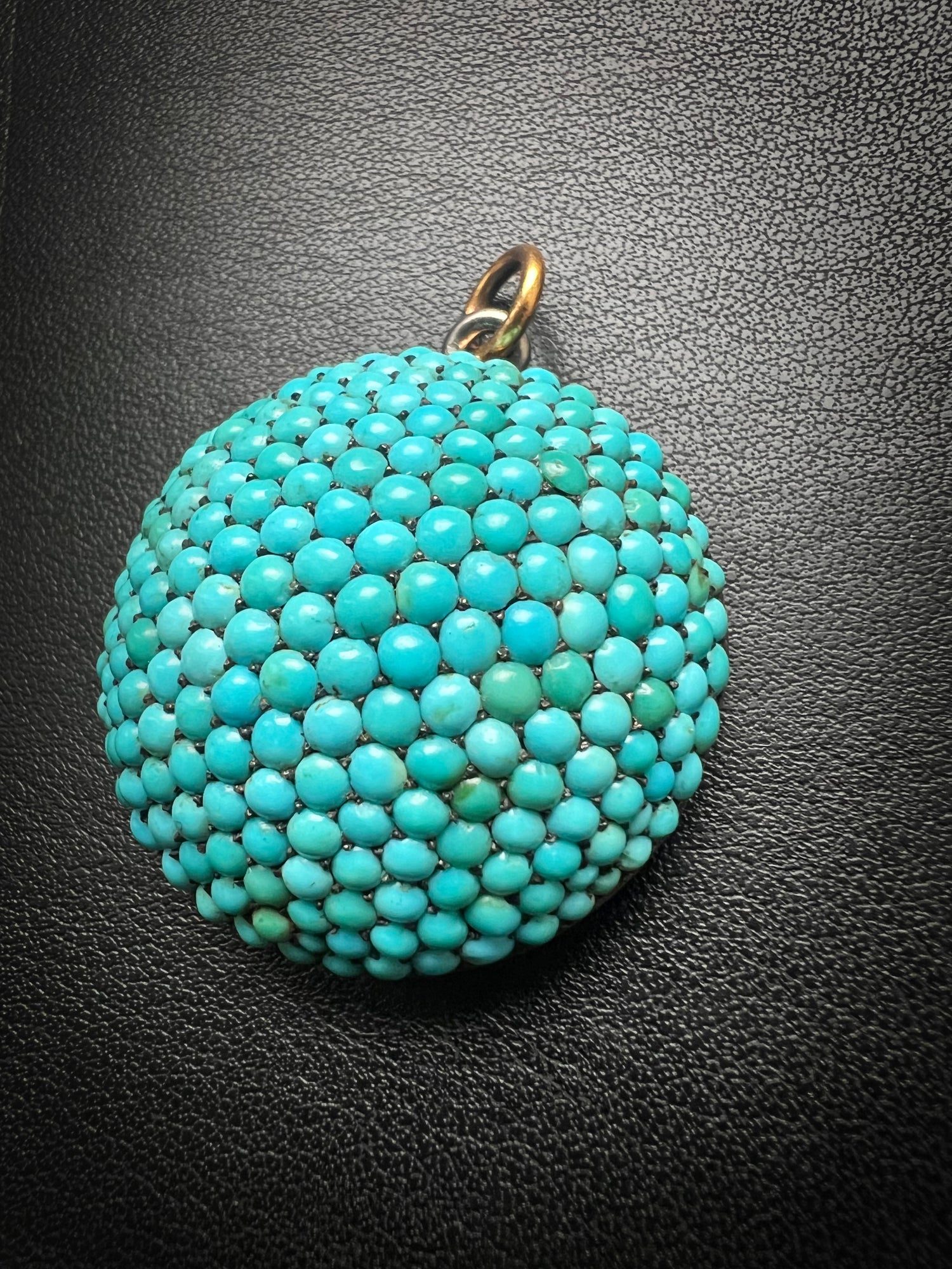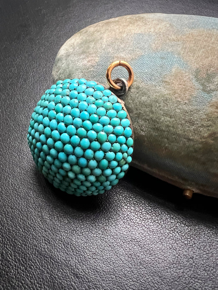 A fabulous Victorian pave turquoise dome pendant, set in silver.