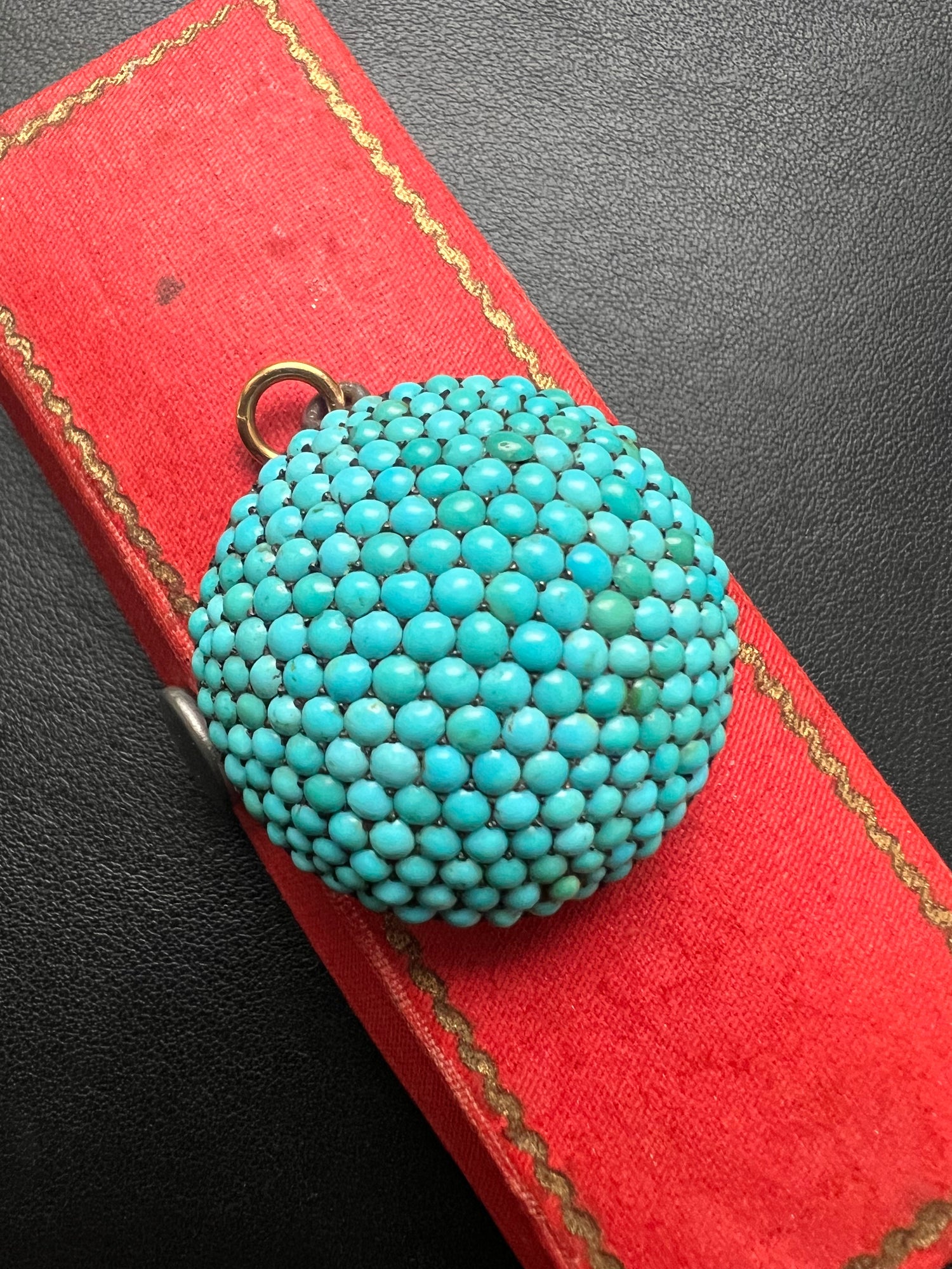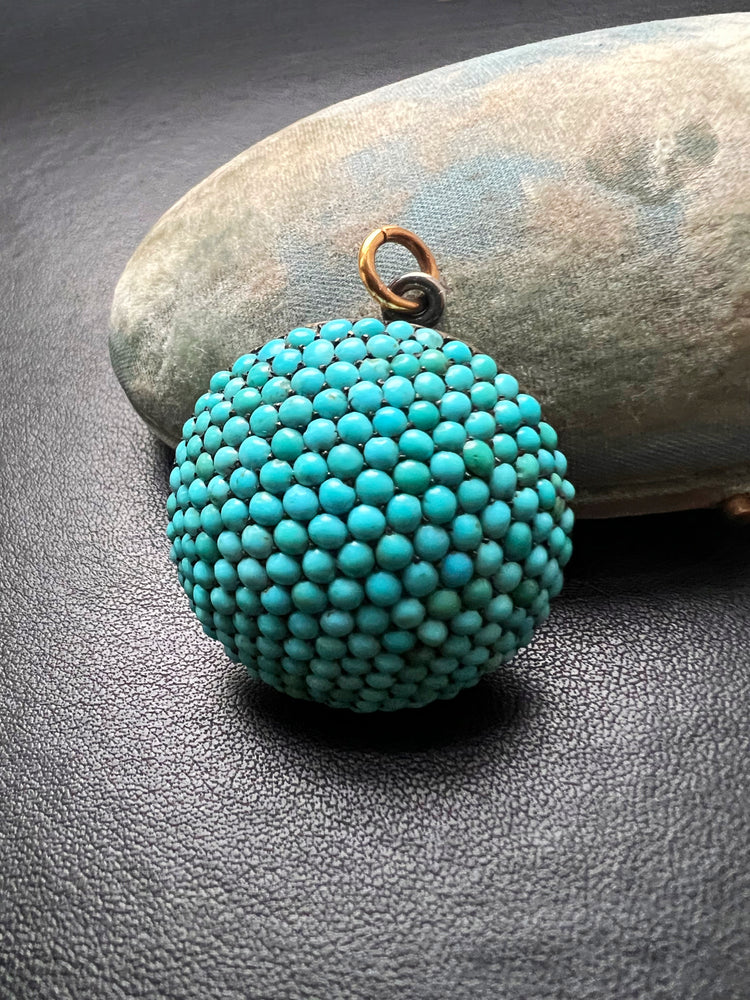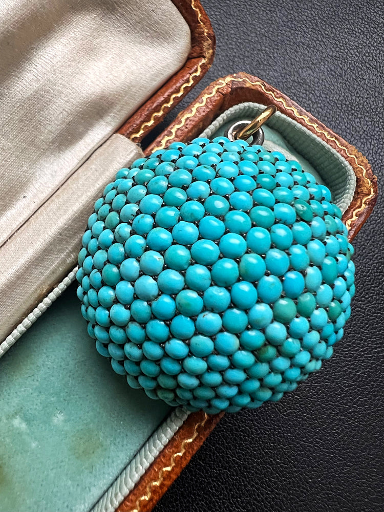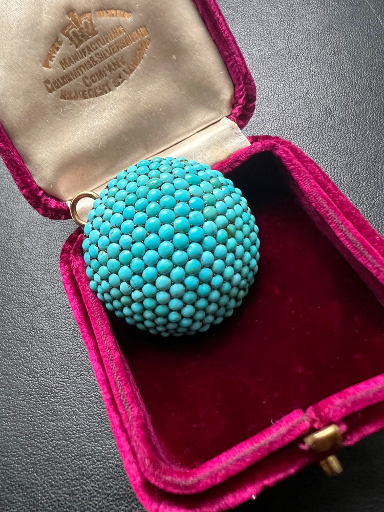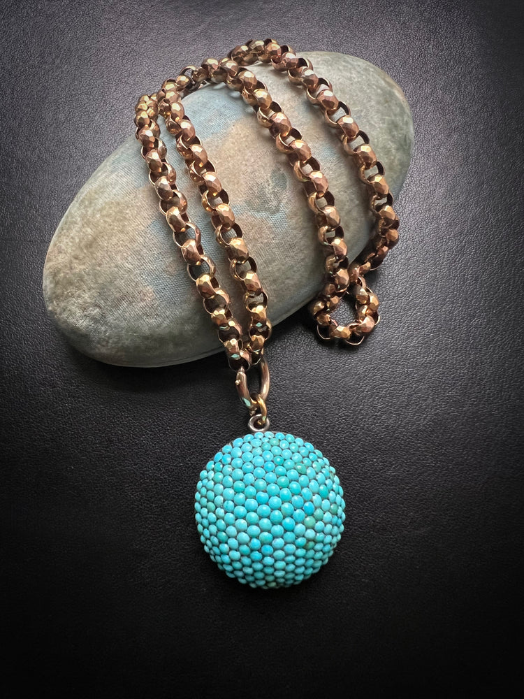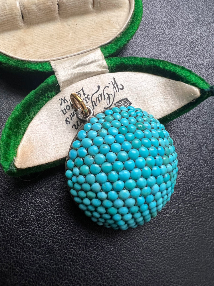 A fabulous Victorian pave turquoise dome pendant, set in silver.