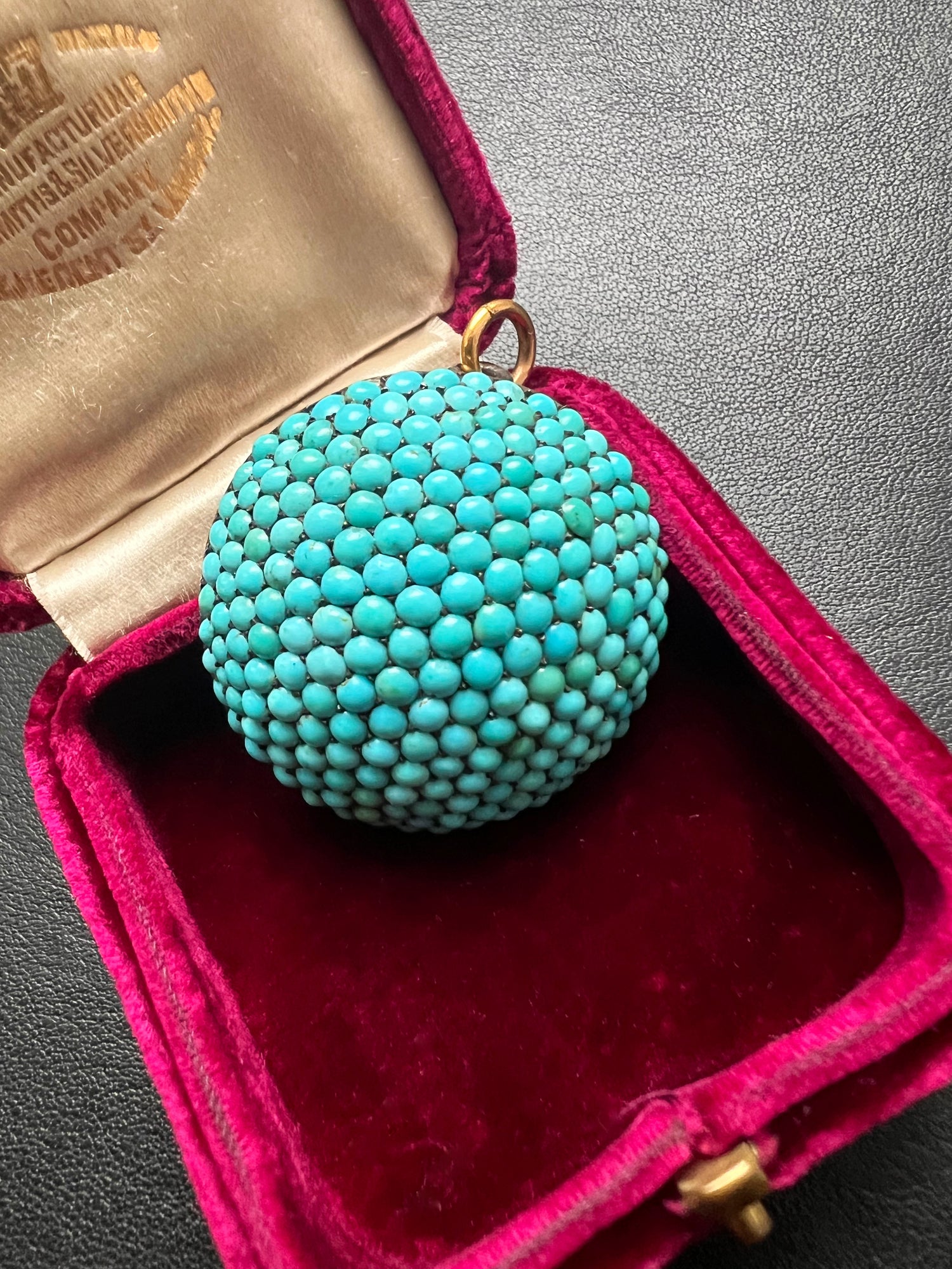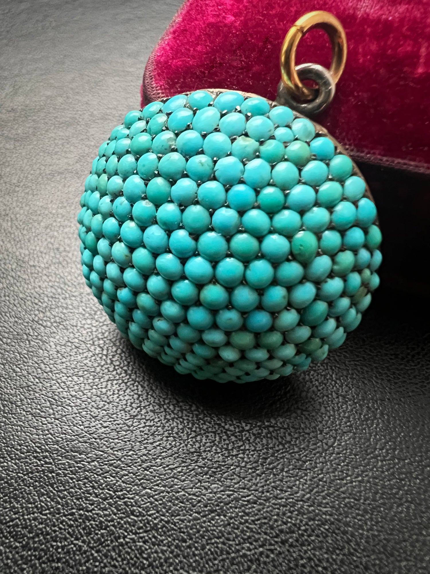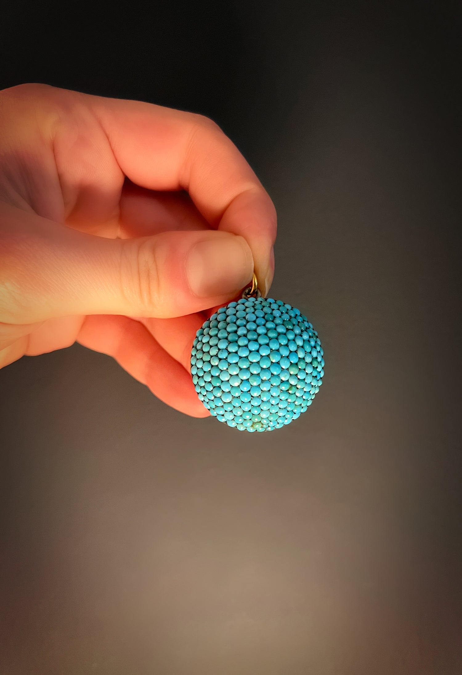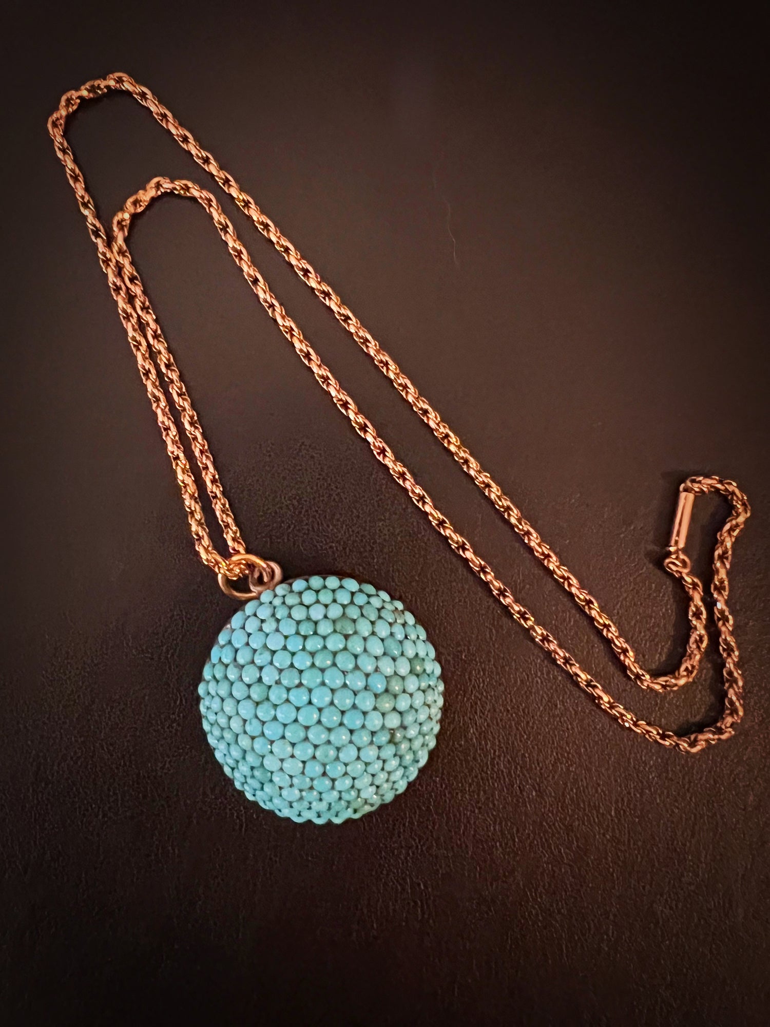 A fabulous Victorian pave turquoise dome pendant, set in silver.