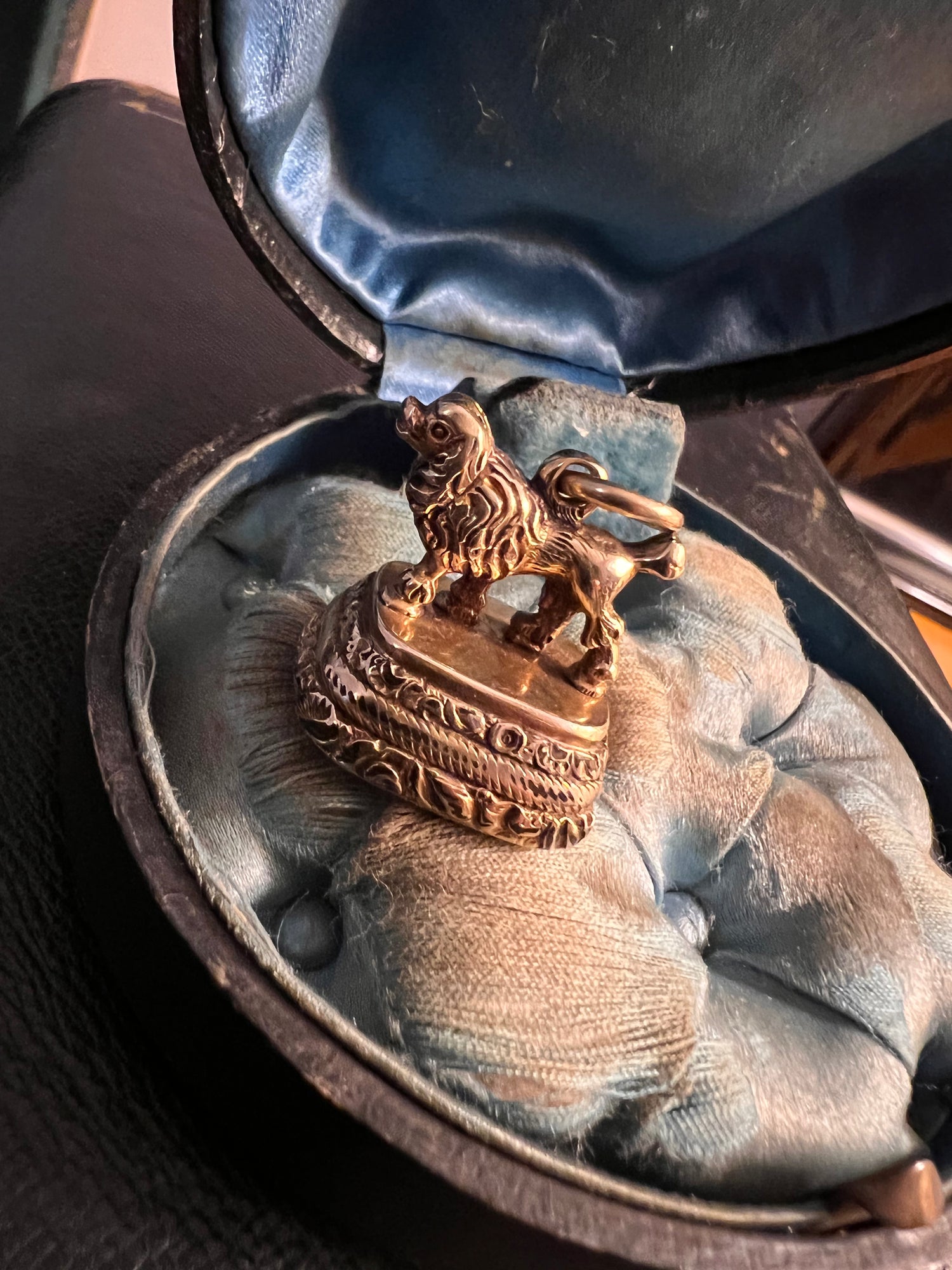 MATERIALS & FEATURES: 15ct gold, Poodle fob