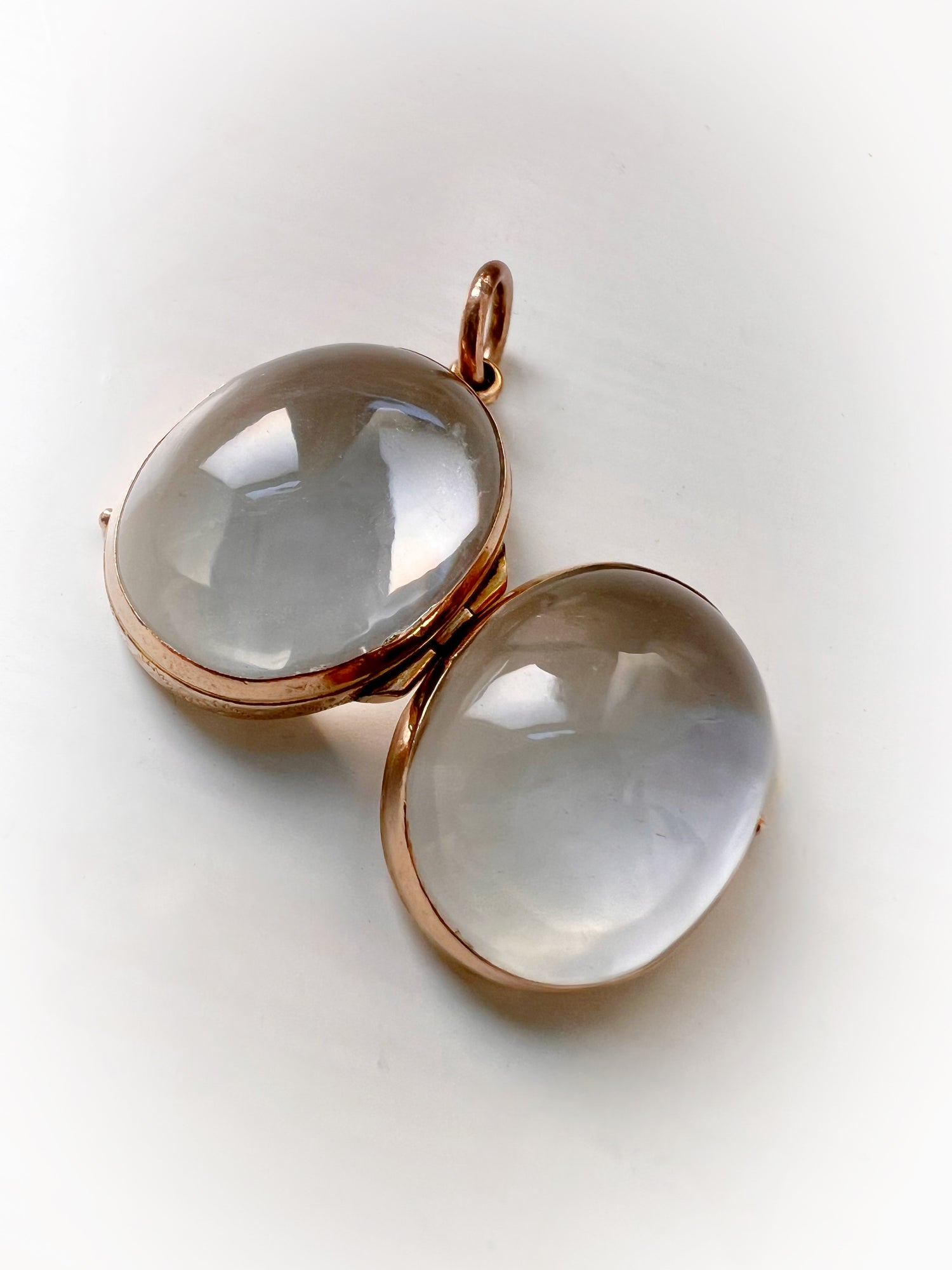 A wonderful Victorian ‘Pool of Light’ Rock Crystal locket set in 15ct gold.