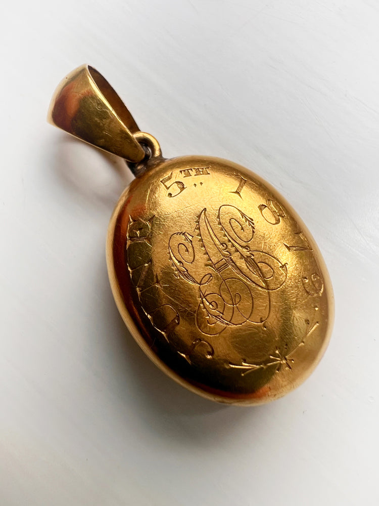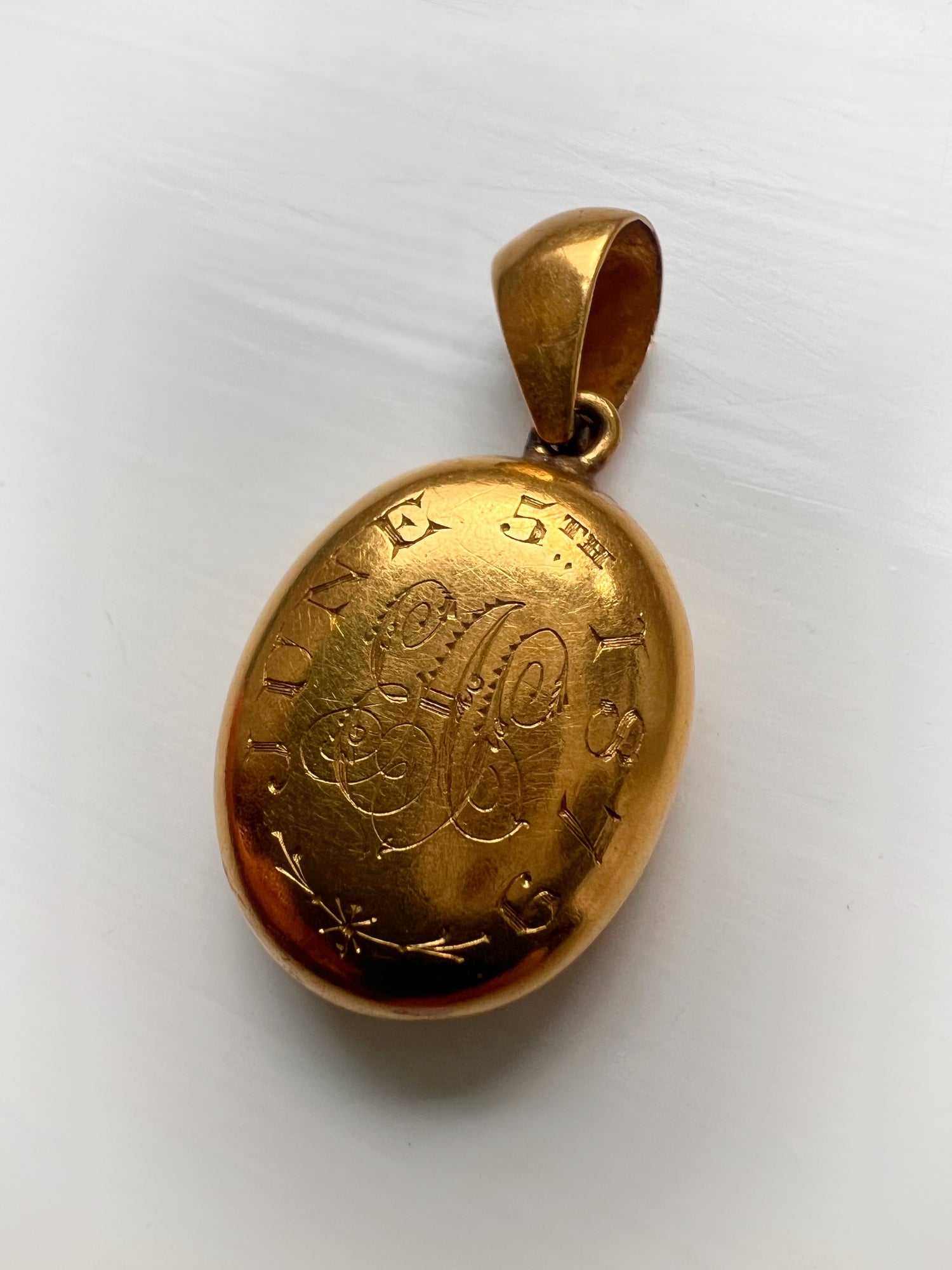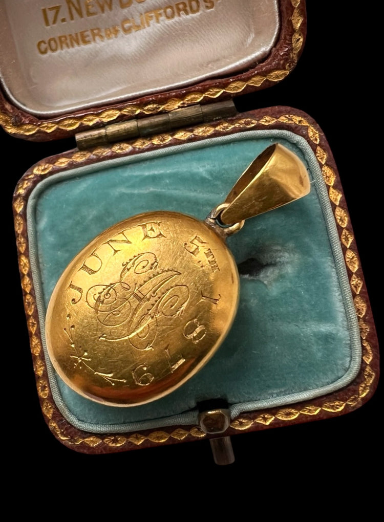 Likely a memorial pendant, for a loved one, the locket appears to contain a woven lock of hair.