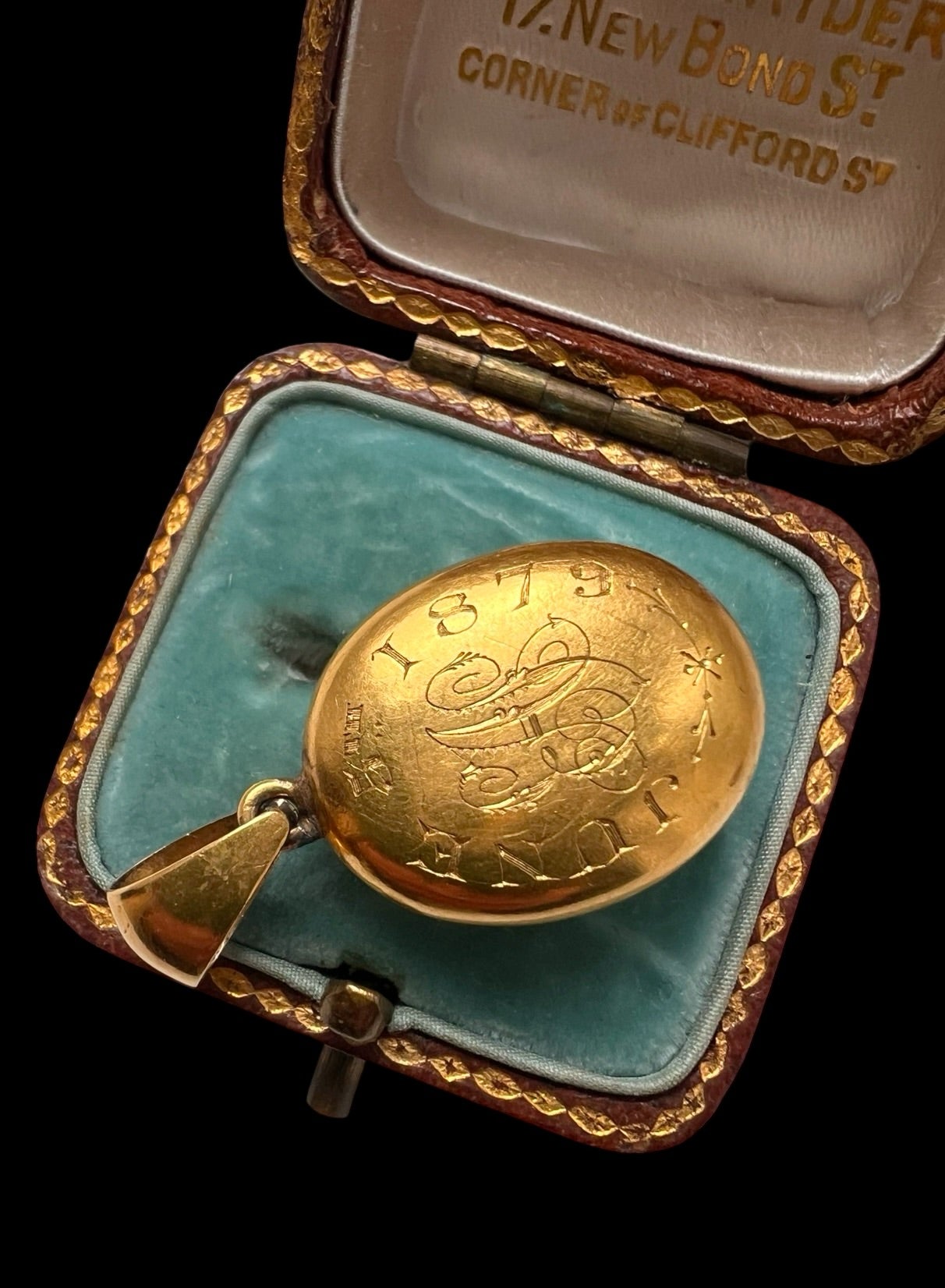 The reverse has the inscription: JUNE 5TH 1879, with a central monogram that I believe reads; ‘EAS’ in a beautiful italic font.