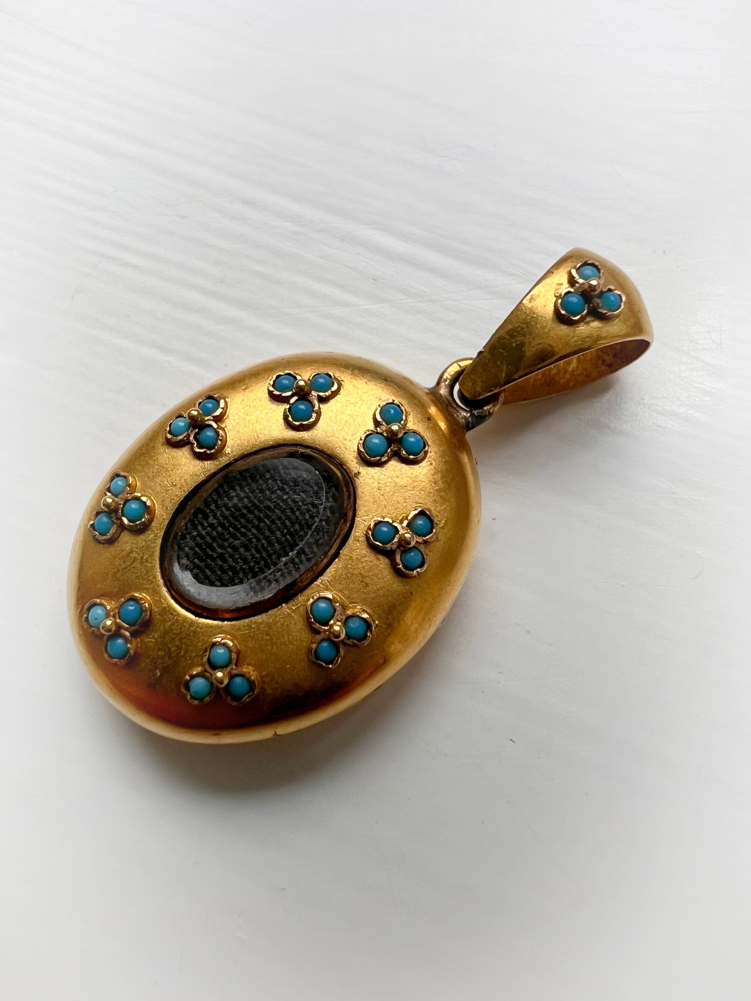 VICTORIAN PRETTY TURQUOISE & 15CT GOLD PENDANT