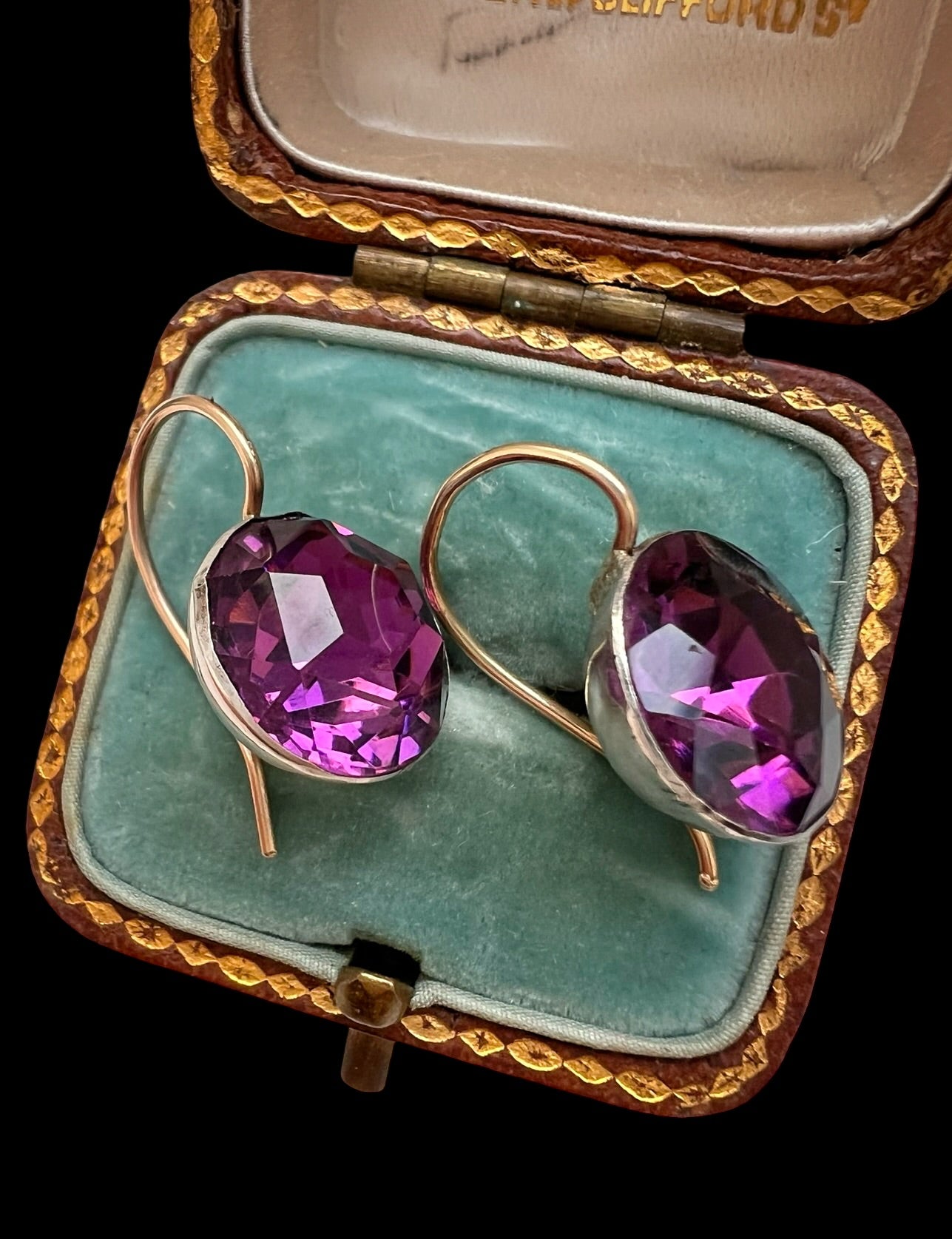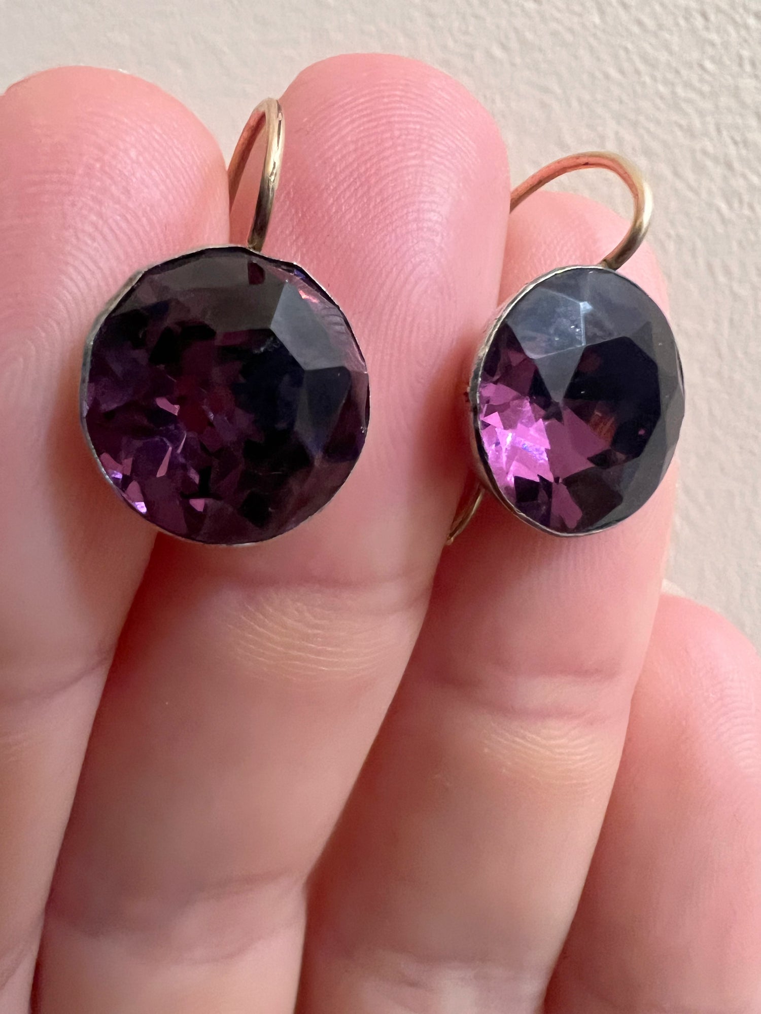 The faceted paste stones have high crowns that catch the light fantastically, flashing bright lilac.