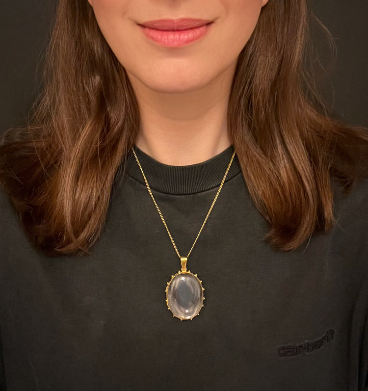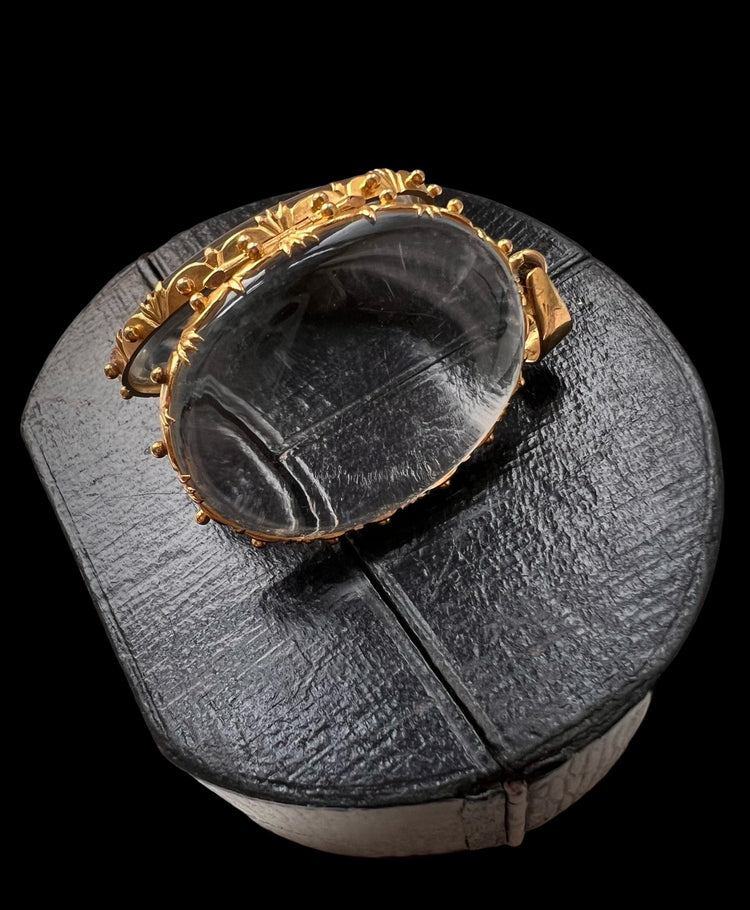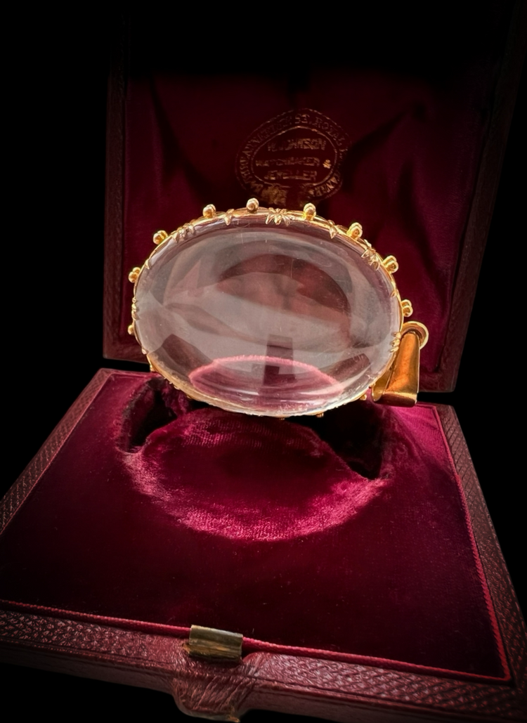 A super cool large Rock Crystal locket with a gorgeous ornate 15ct gold frame.