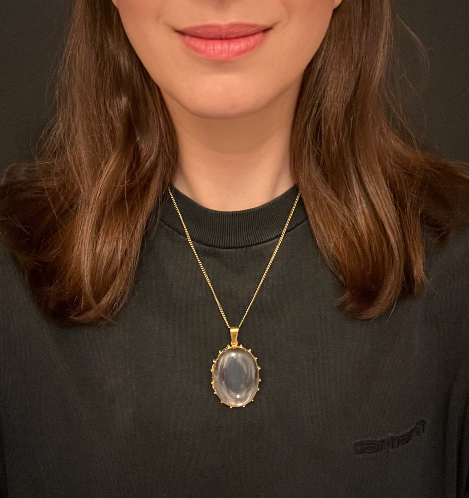 The chunky 15ct gold bail is perfect to hang from a medium to heavy weight chain.