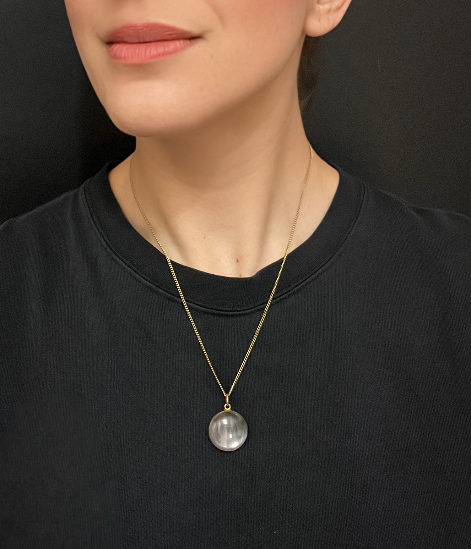 The locket hangs from a chunky high carat gold bail, making it easy to add to any size chain.