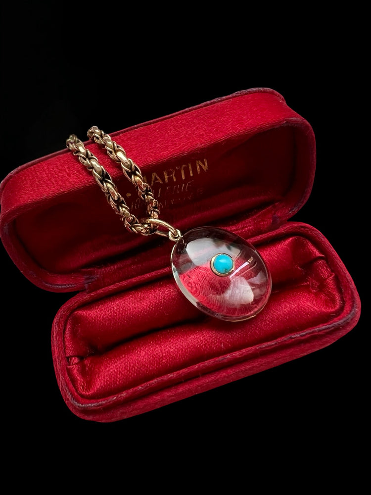 VICTORIAN ROCK CRYSTAL & TURQUOISE PENDANT