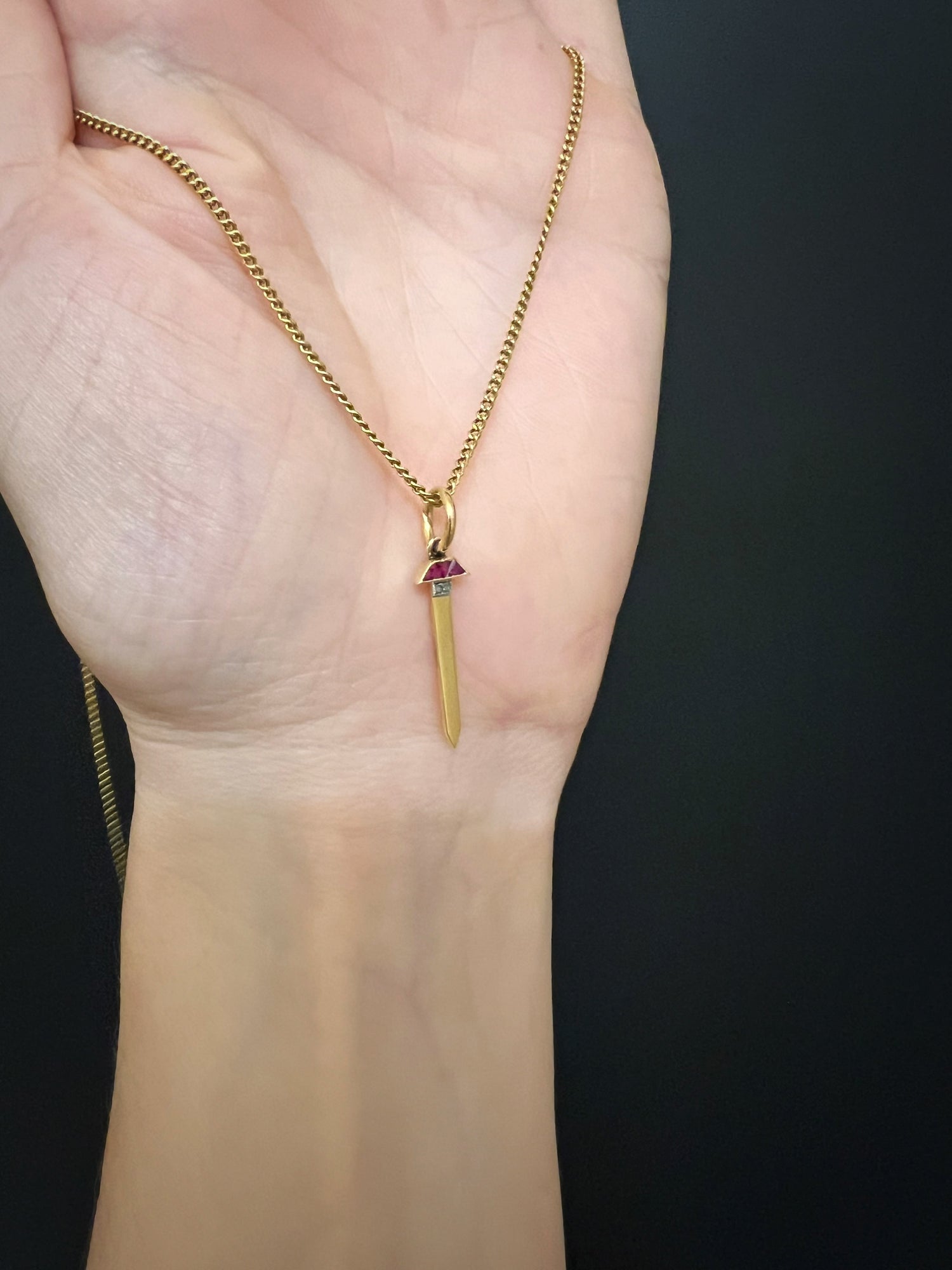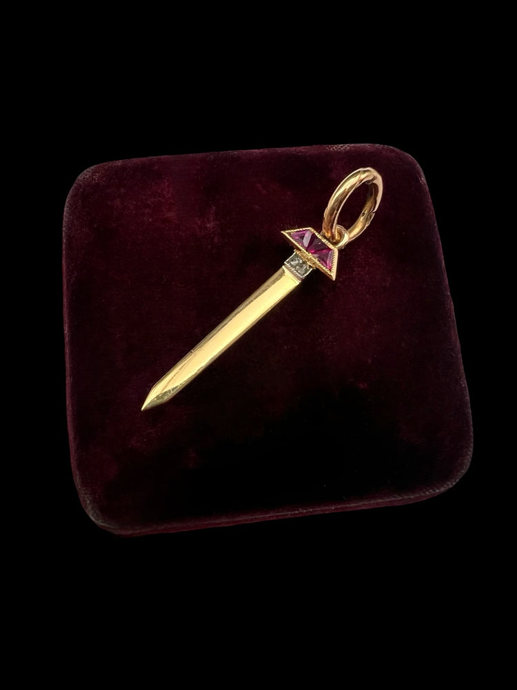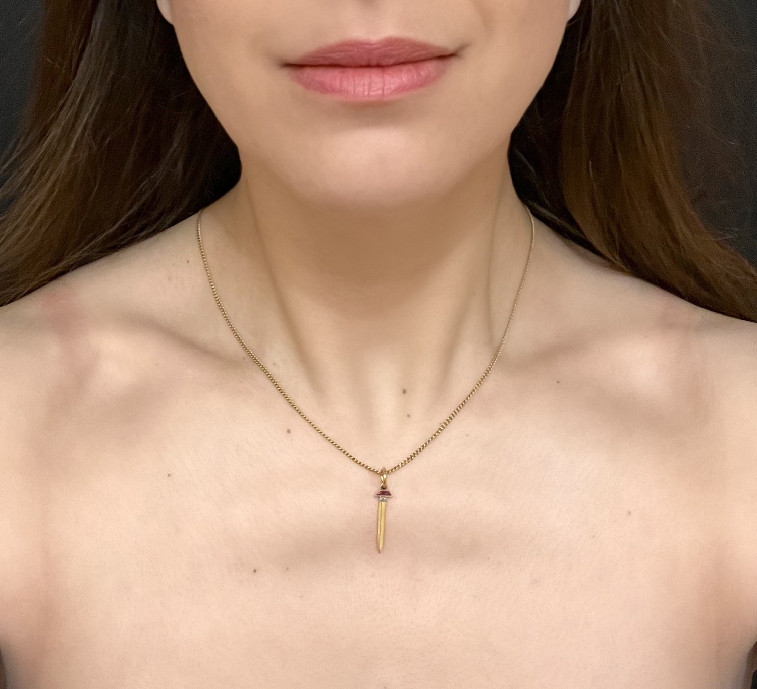 The 18ct gold nail is set with Rubies and rose cut Diamonds.