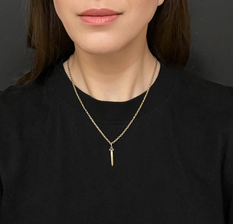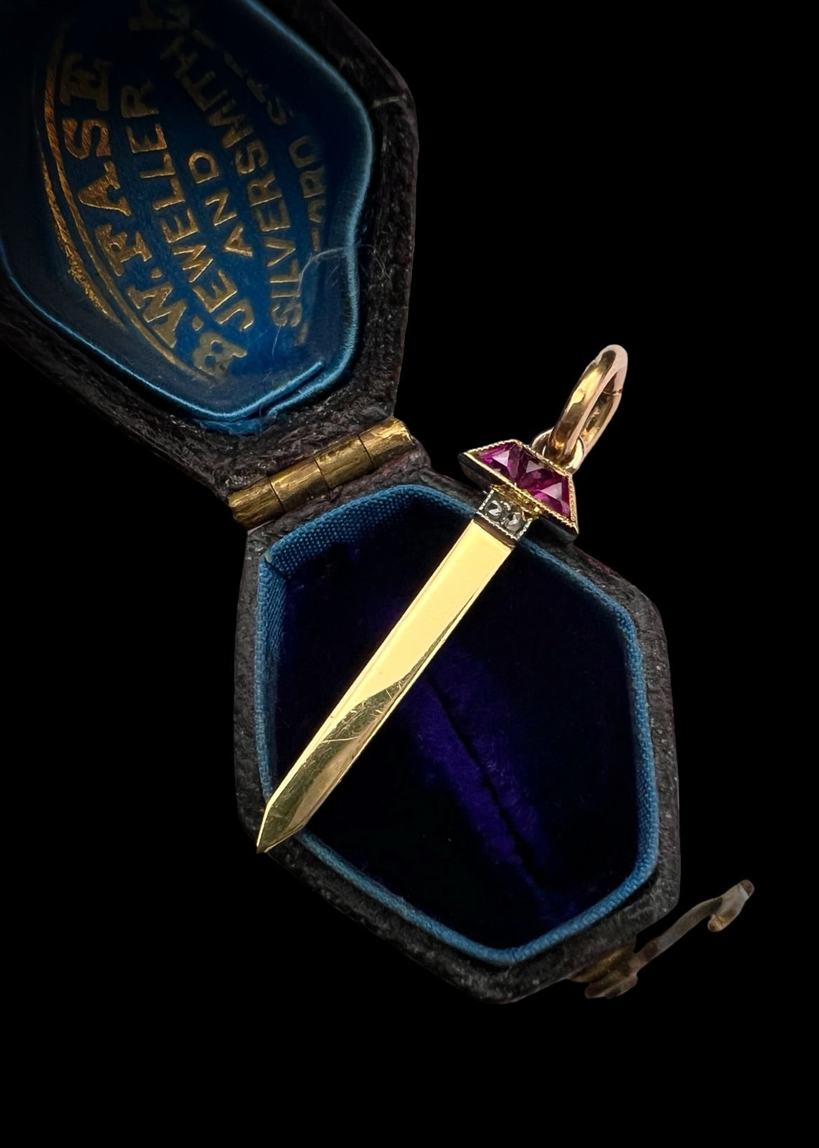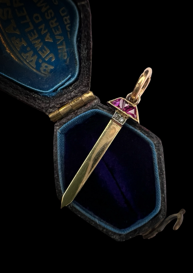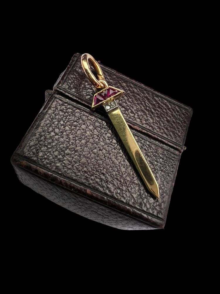 The 18ct gold nail is set with Rubies and rose cut Diamonds.
