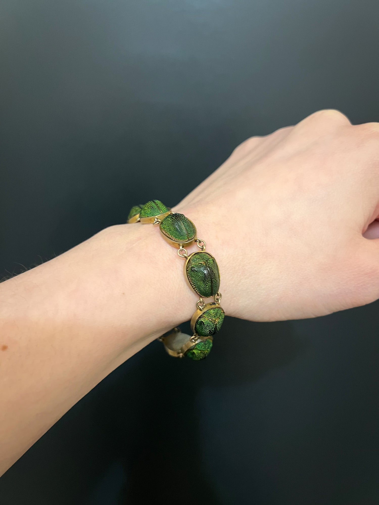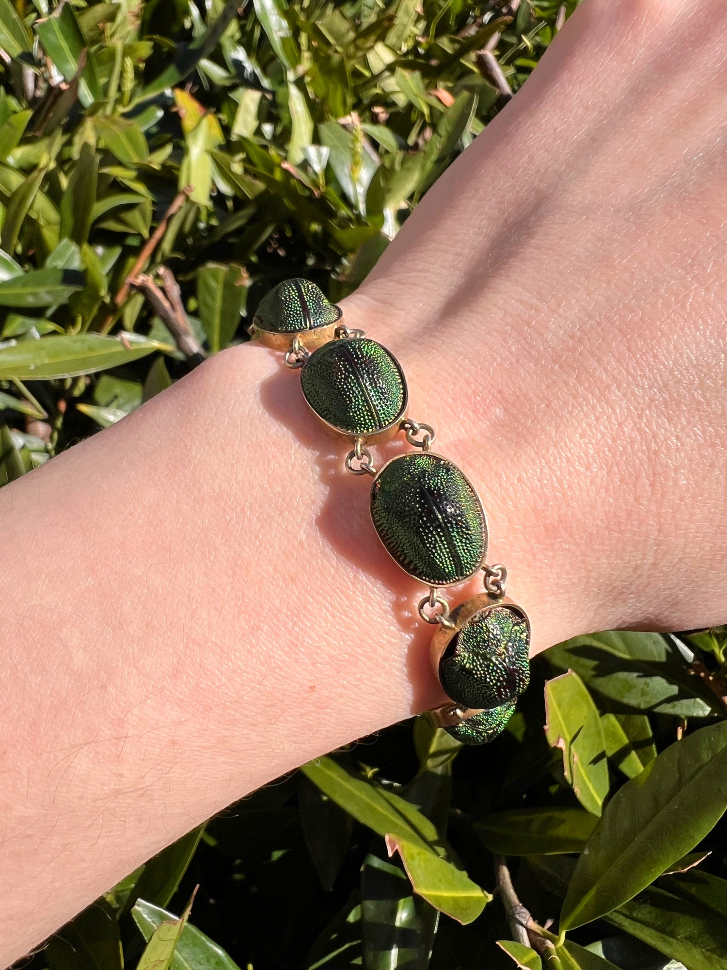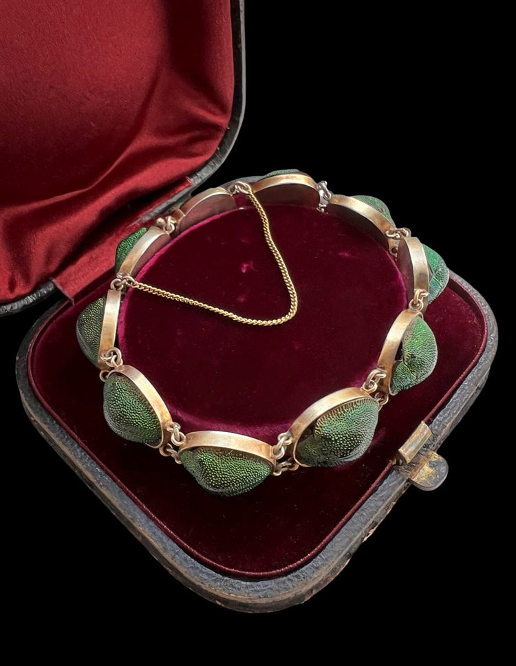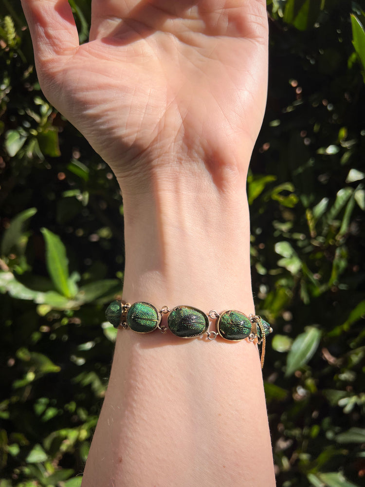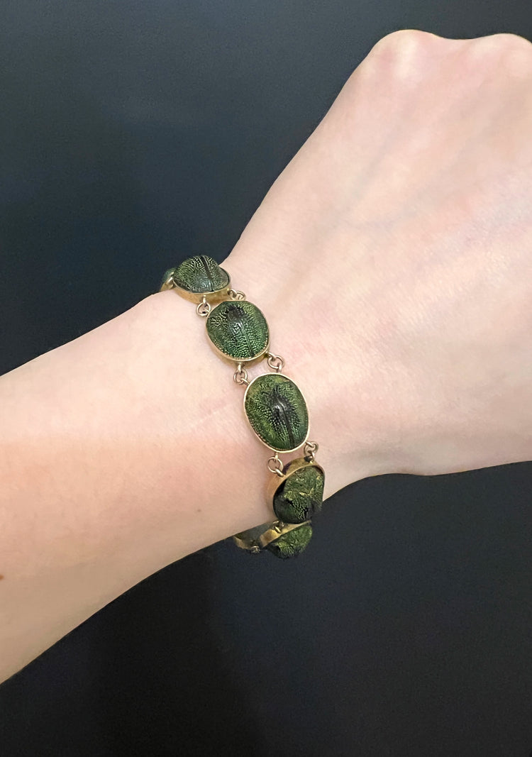 A stunning and rare Victorian scarab beetle bracelet.