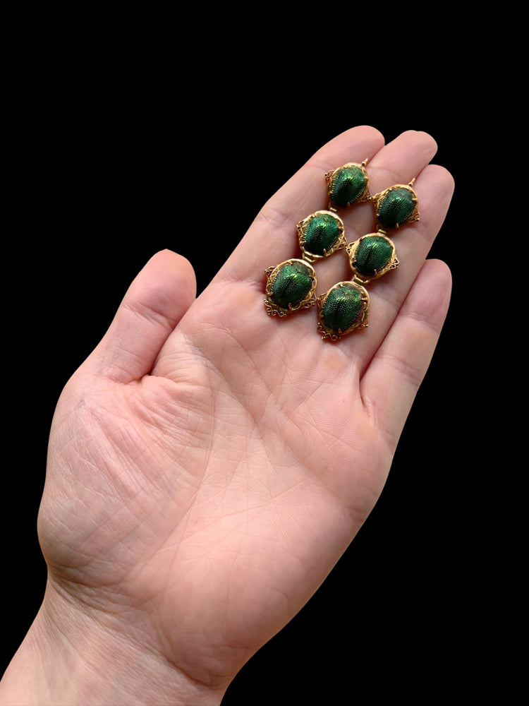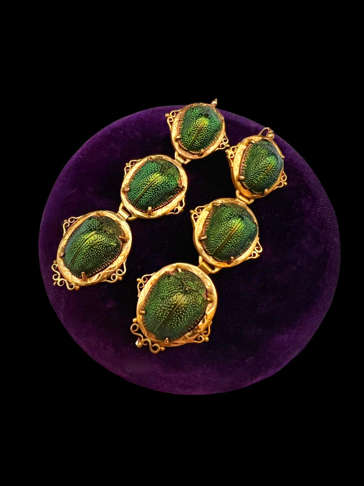 The beetles are set in a fancy 18ct gold frame that is open at the back, so you can see the full detail of the beetle, which is so fascinating.