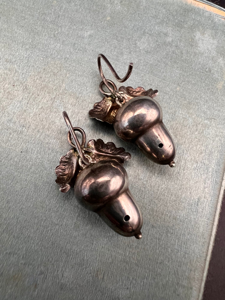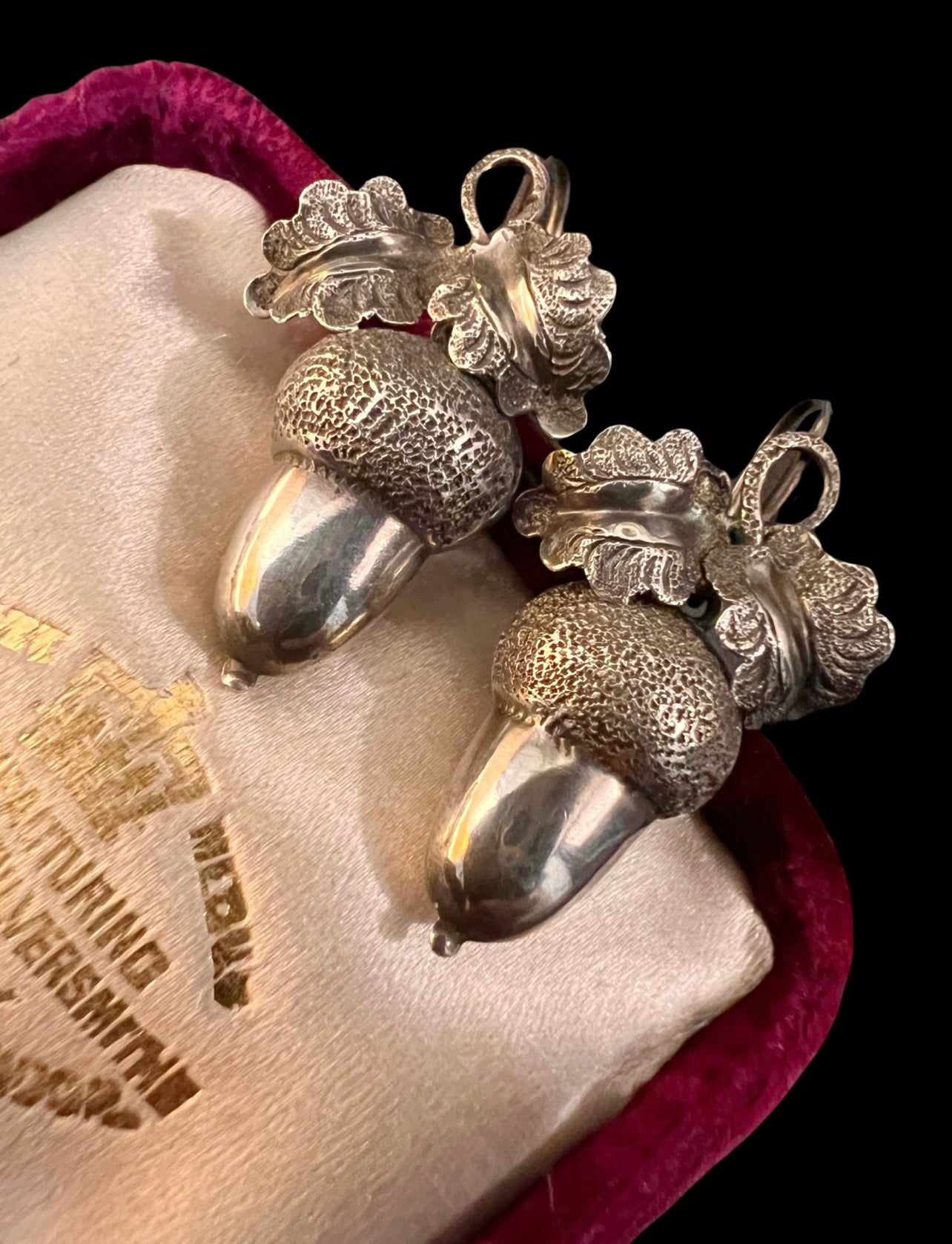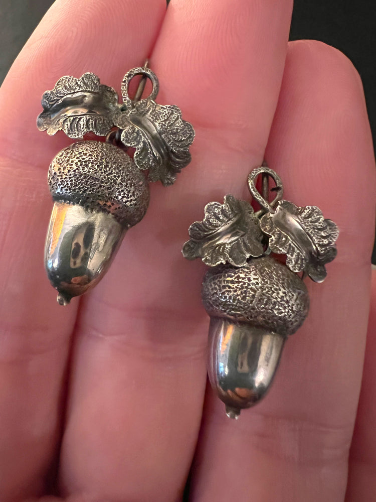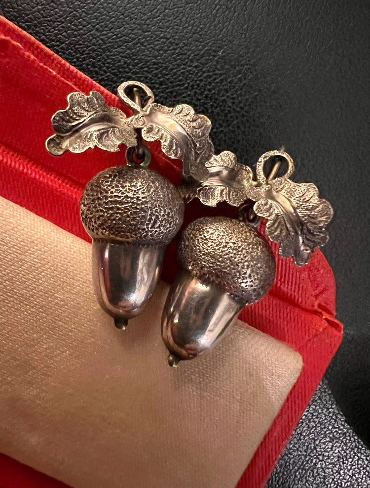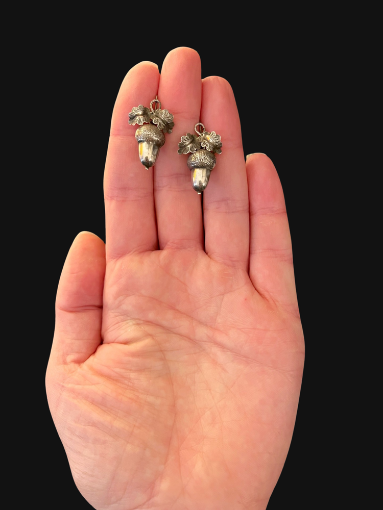 Each earring has a plump little acorn hanging from two beautifully chased leaves.