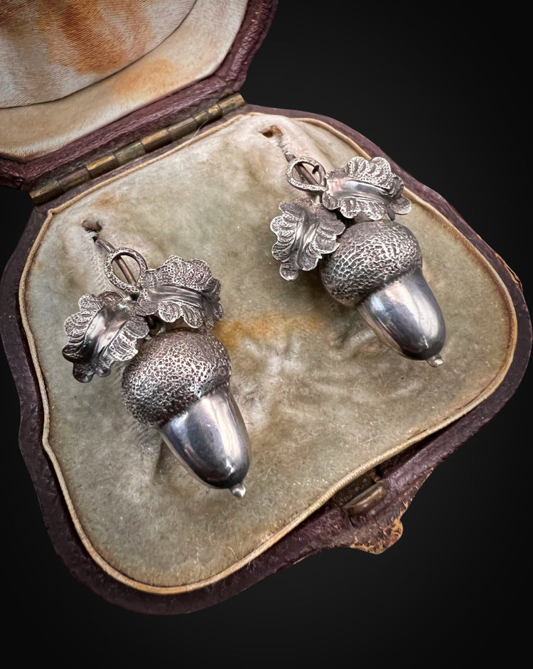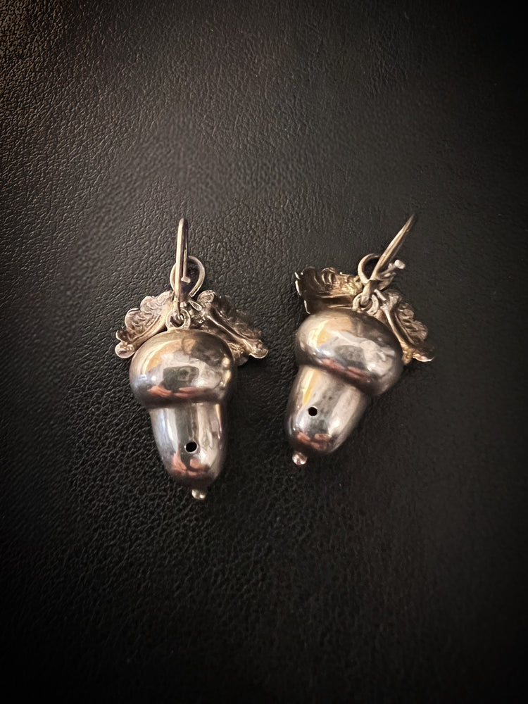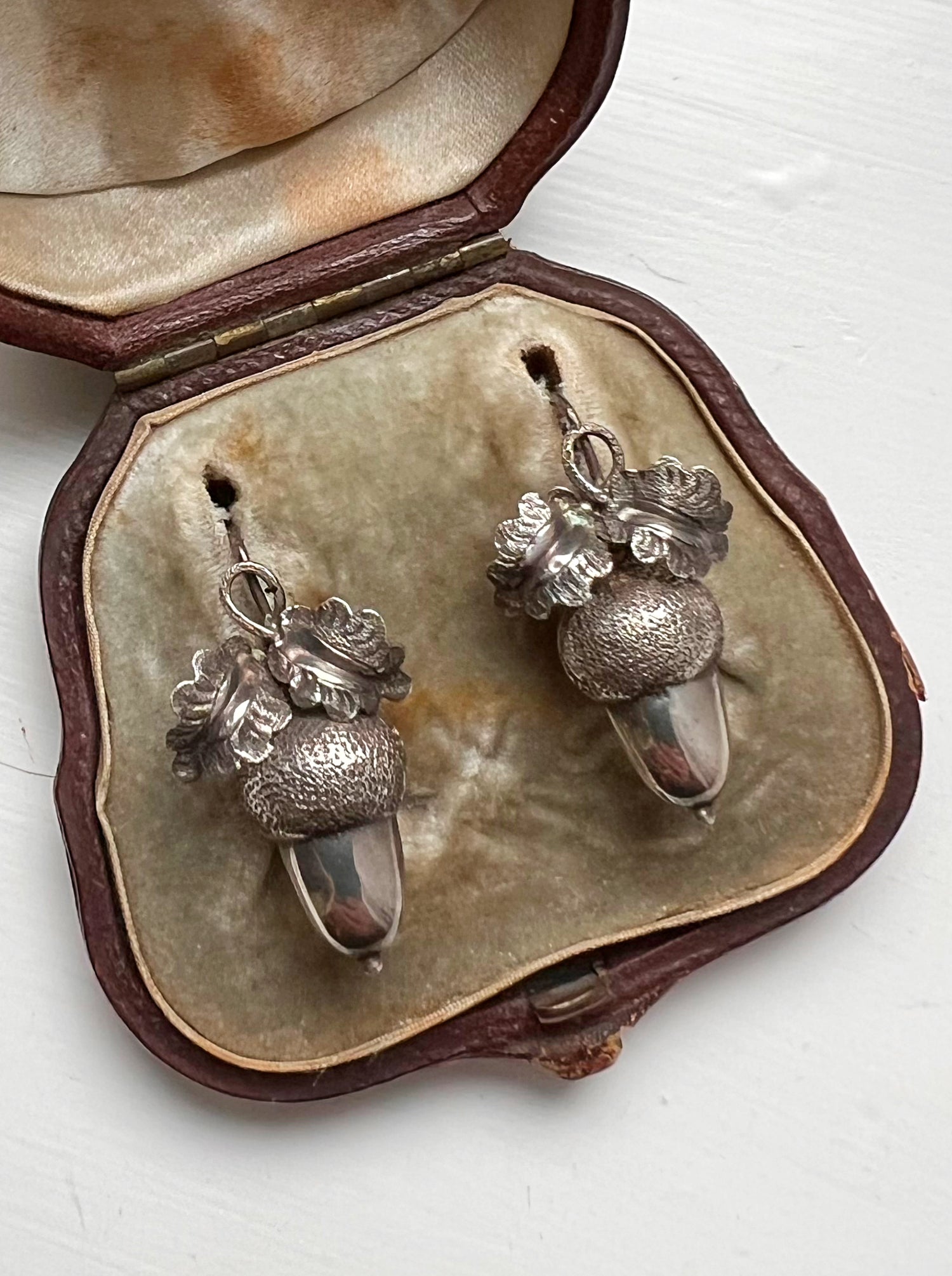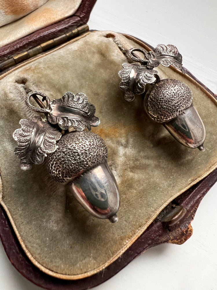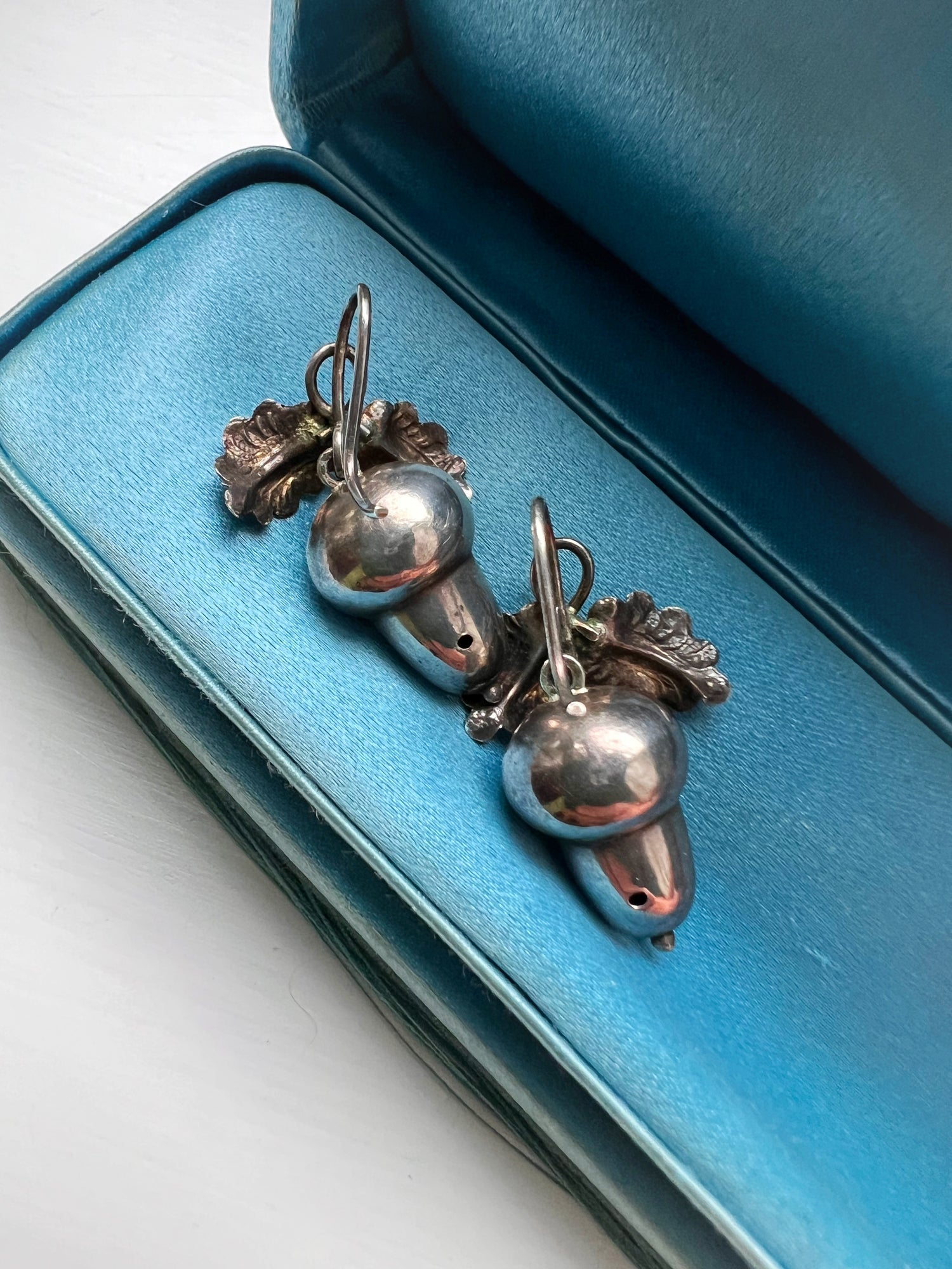 Each earring has a plump little acorn hanging from two beautifully chased leaves.