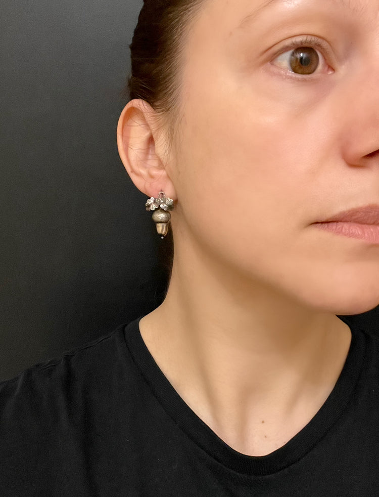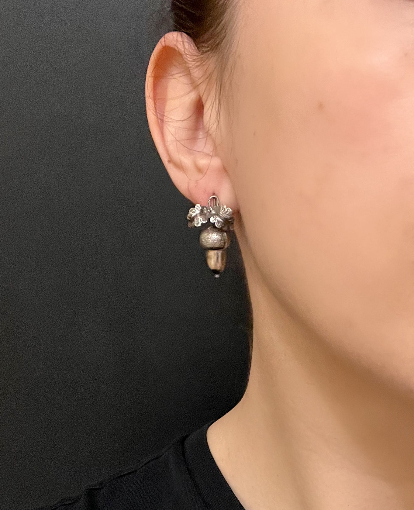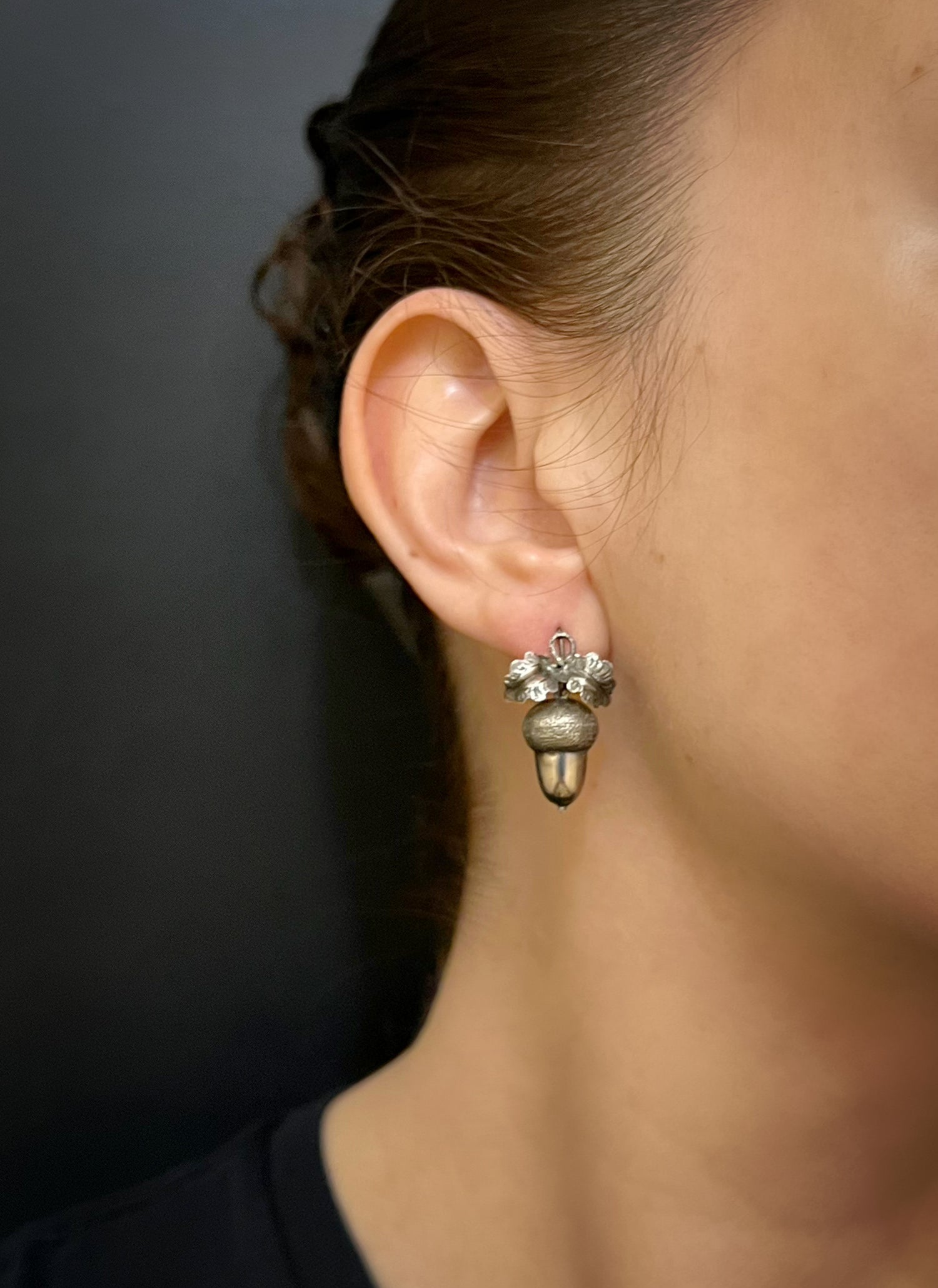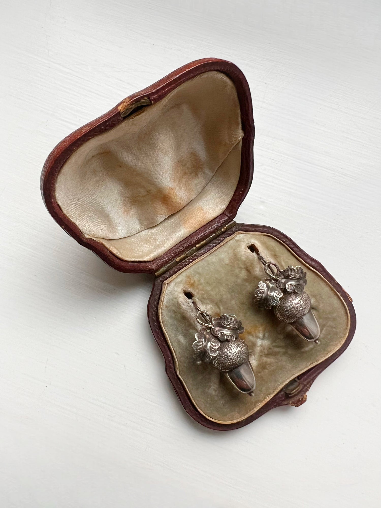 Each earring has a plump little acorn hanging from two beautifully chased leaves.