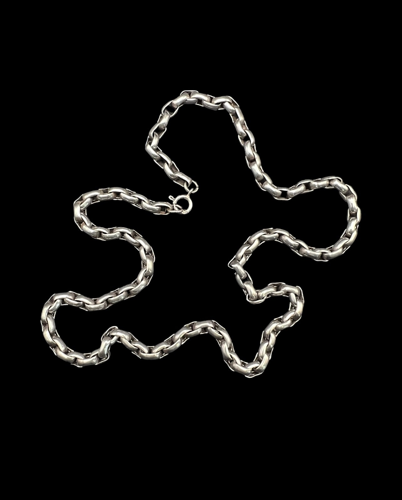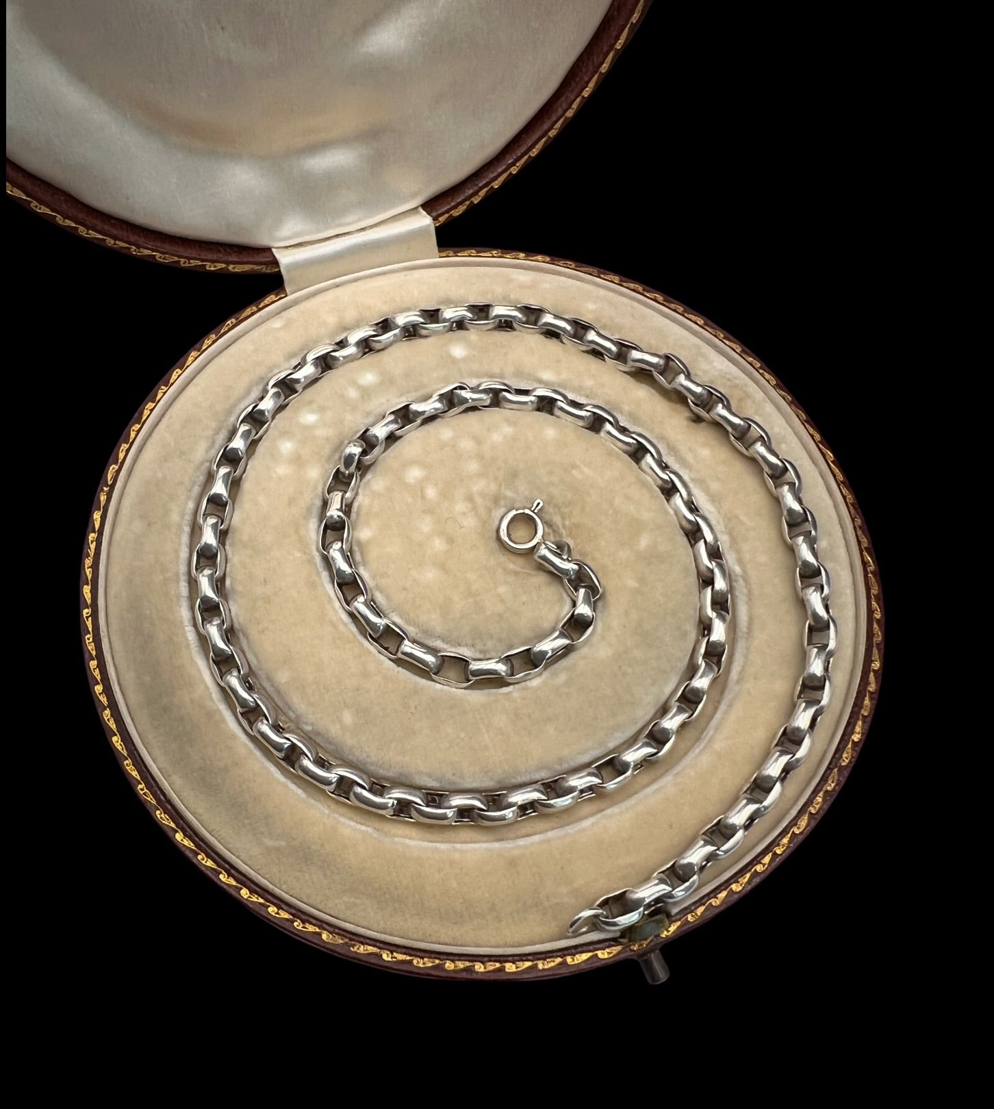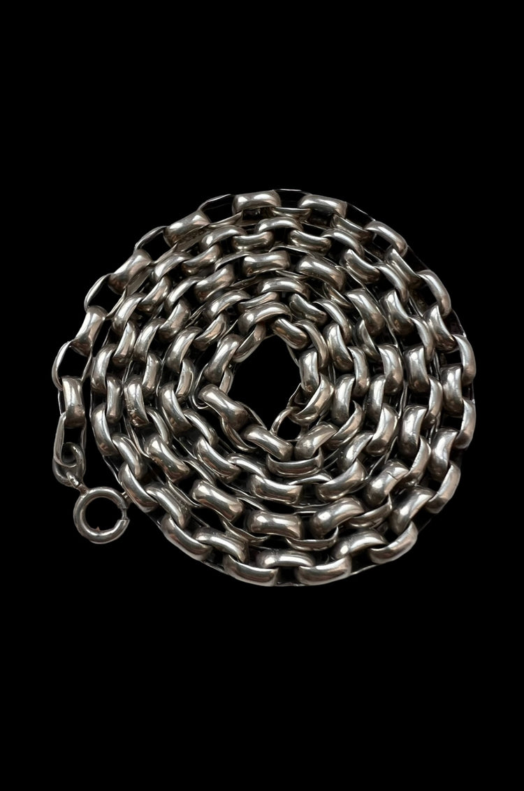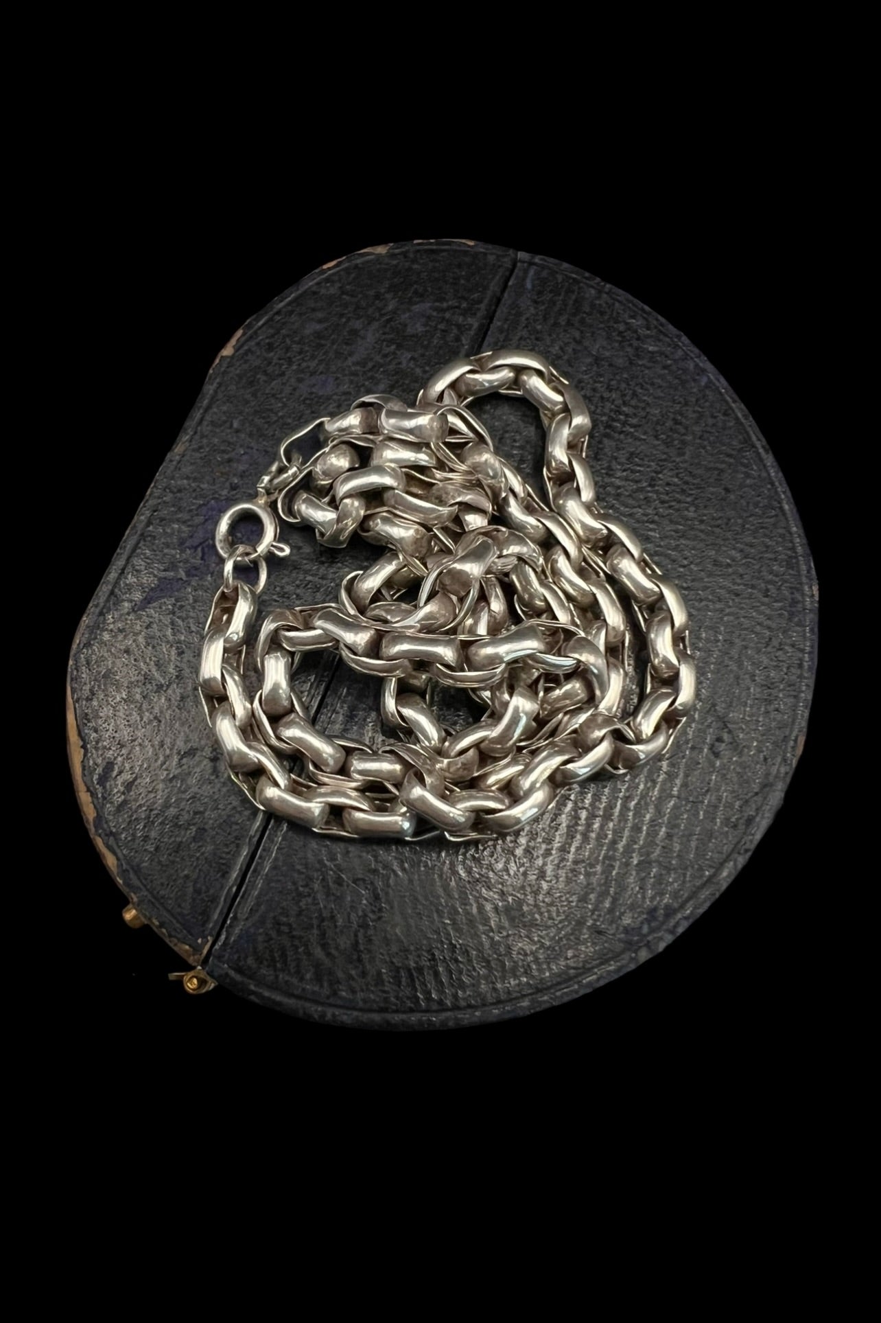 The chain has a ‘flat’ belcher link, which has oval links rather than circular.