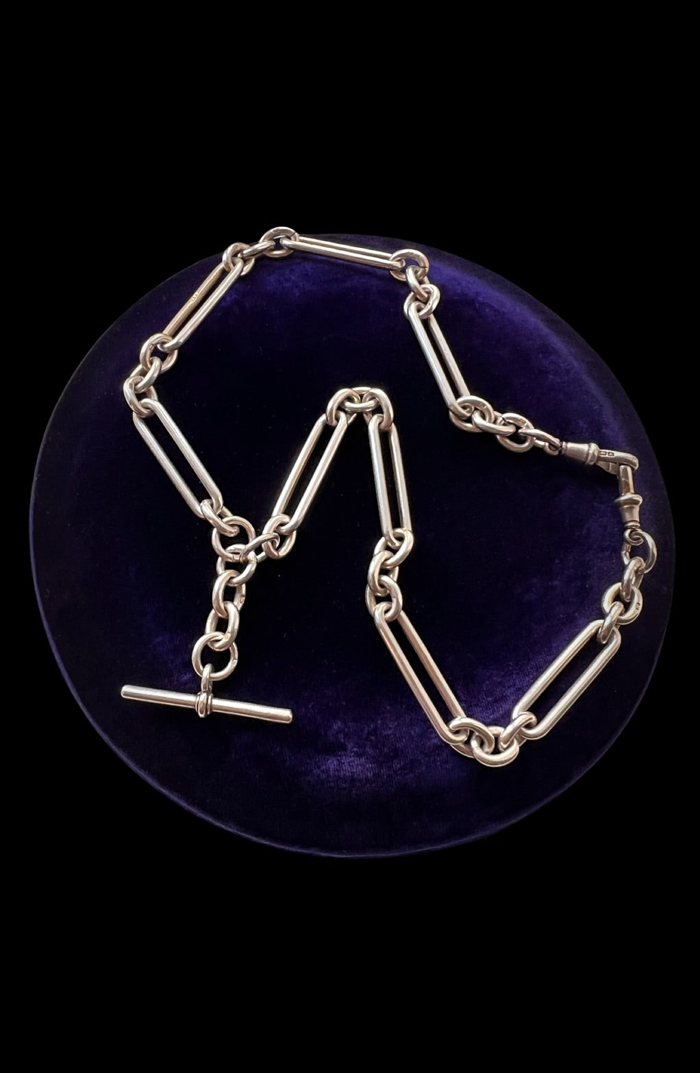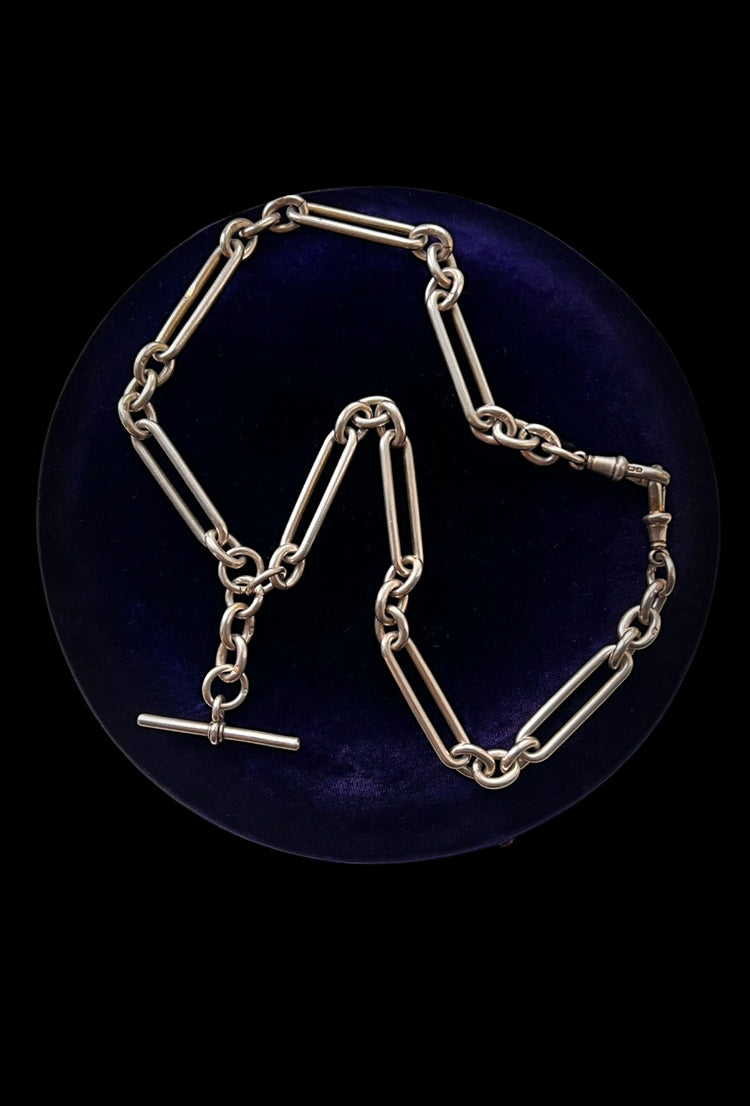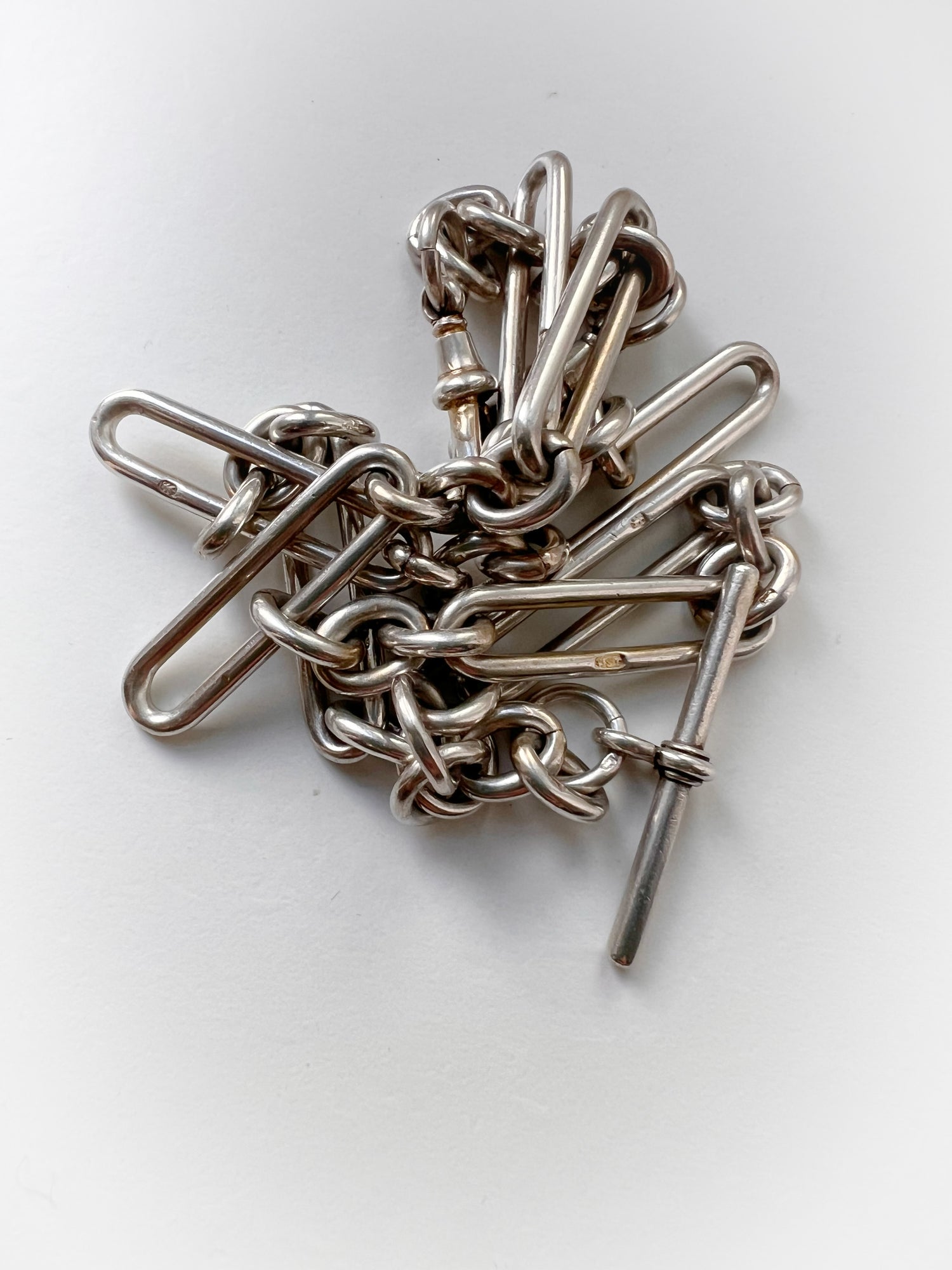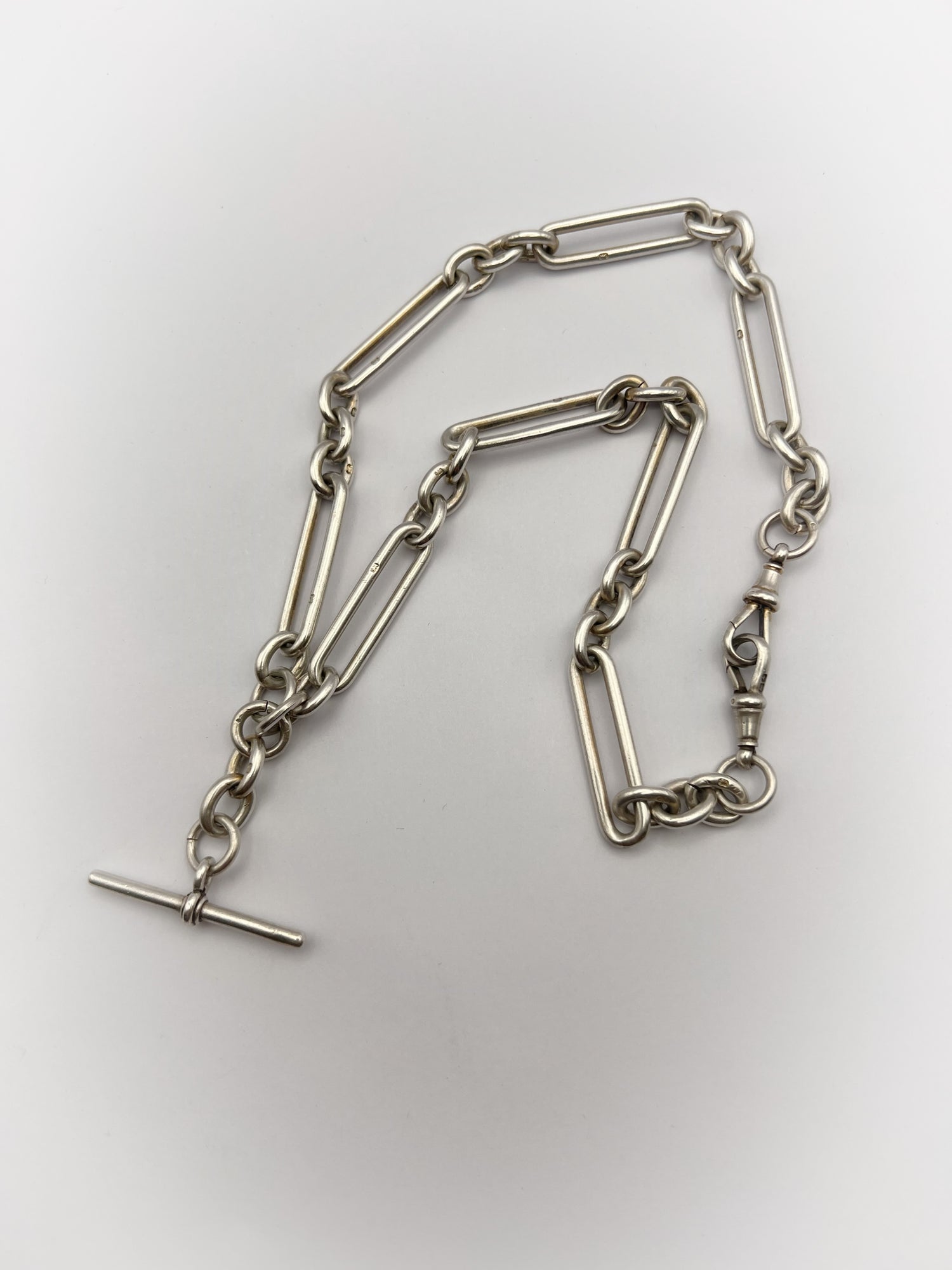 A gorgeous Victorian chunky Silver paperclip Albert chain with T-bar.