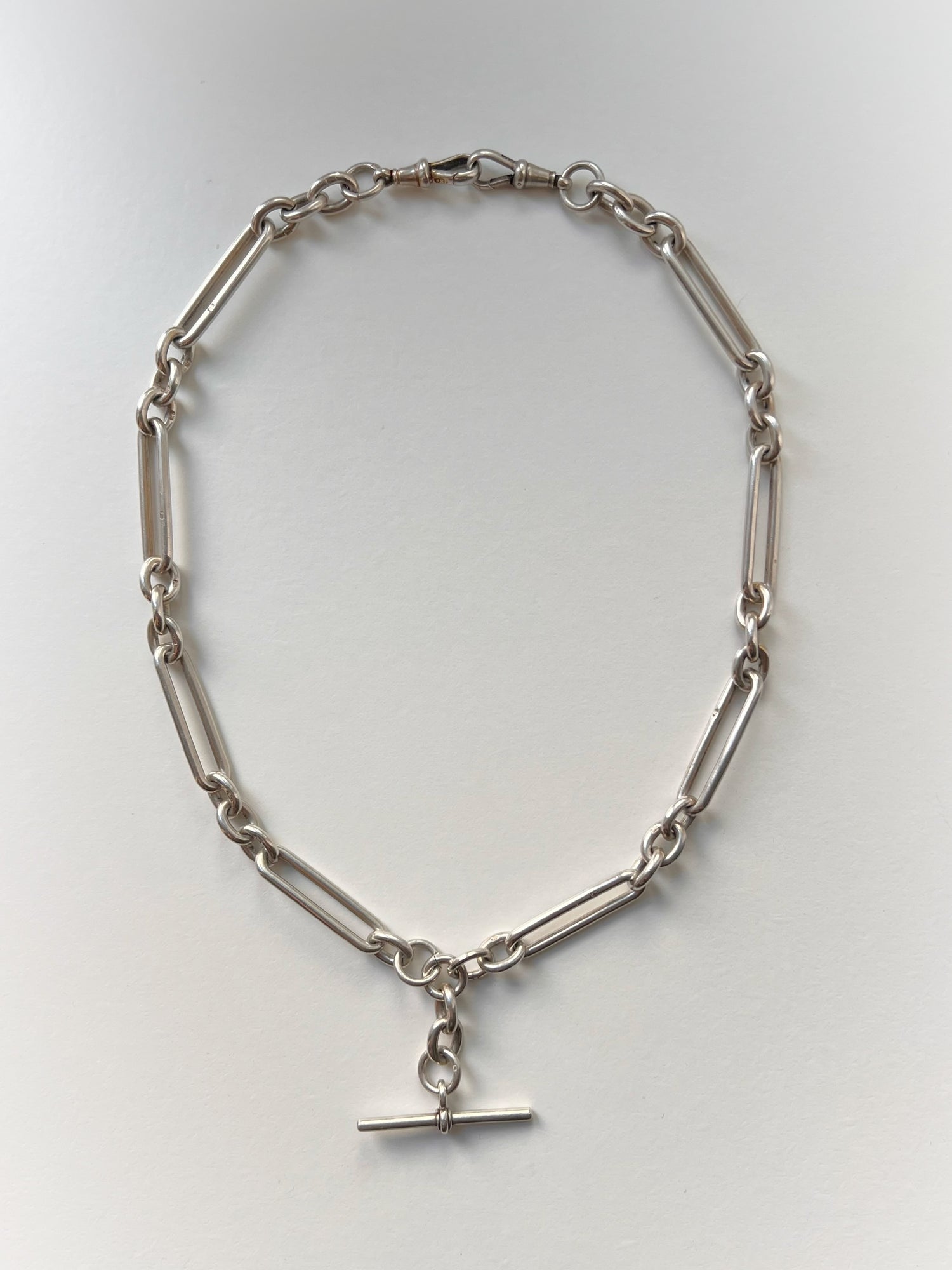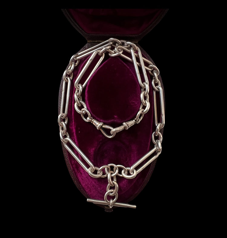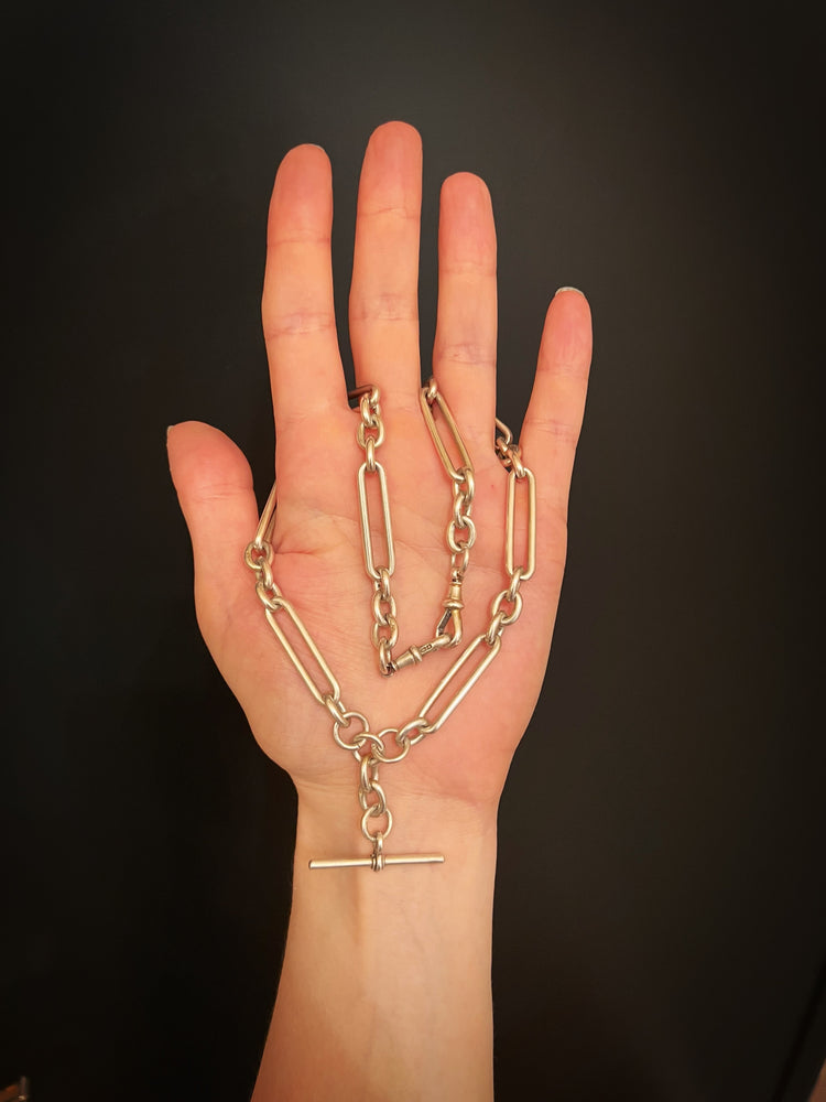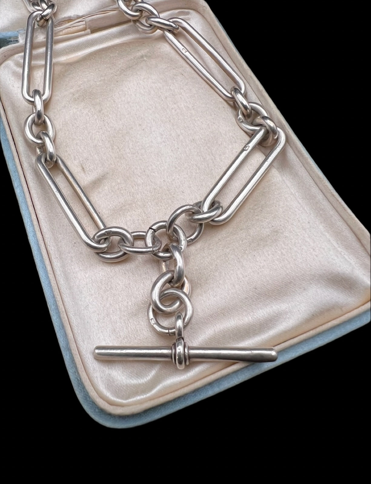 A gorgeous Victorian chunky Silver paperclip Albert chain with T-bar.