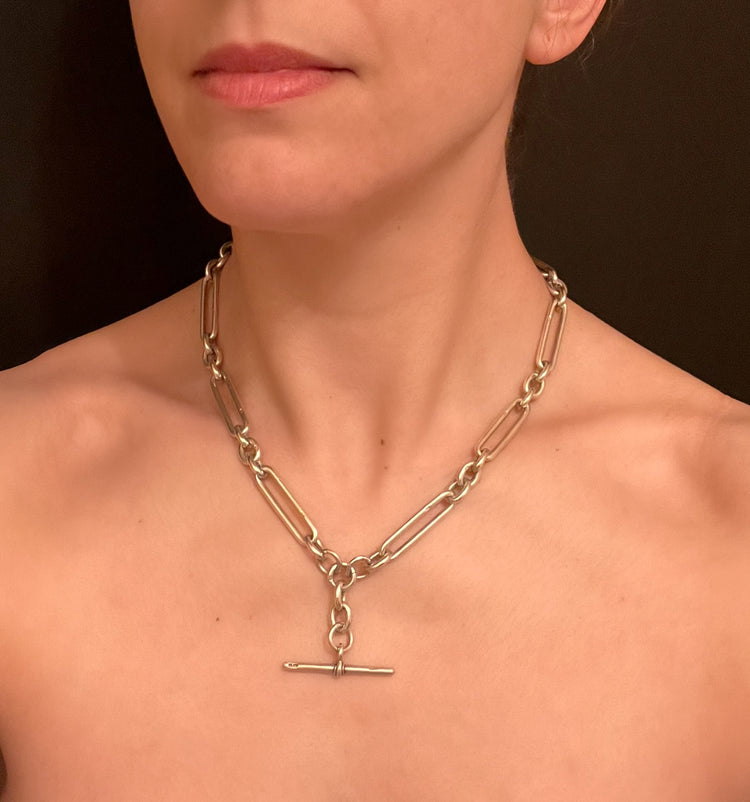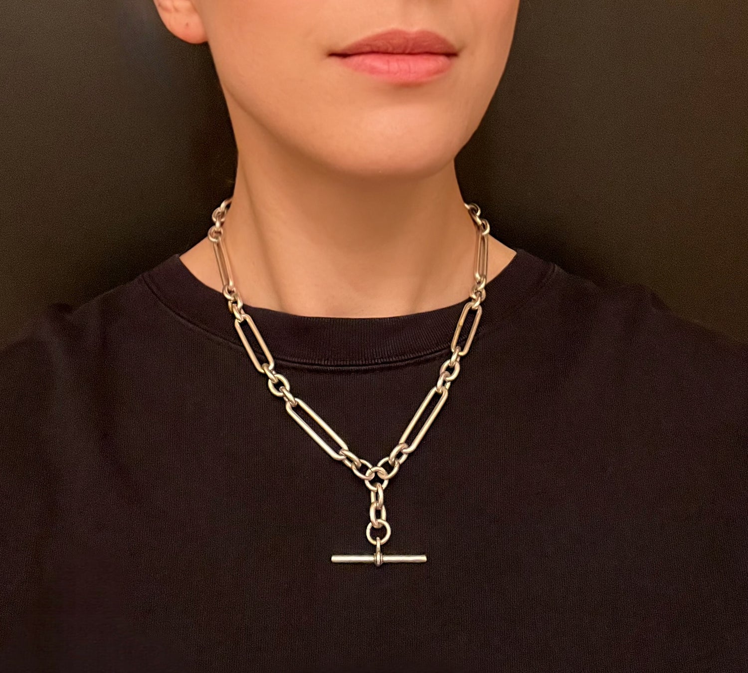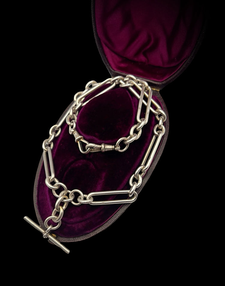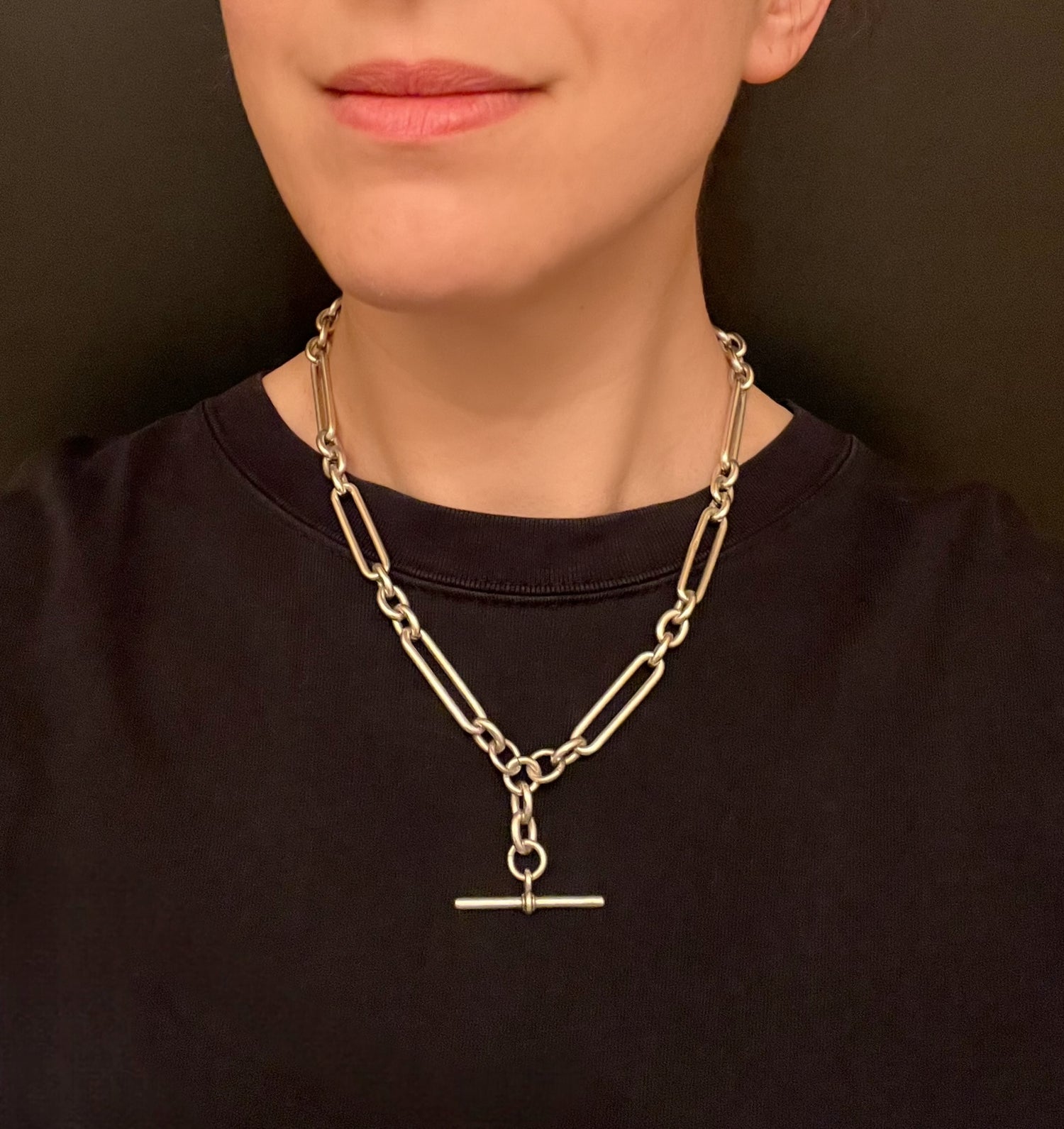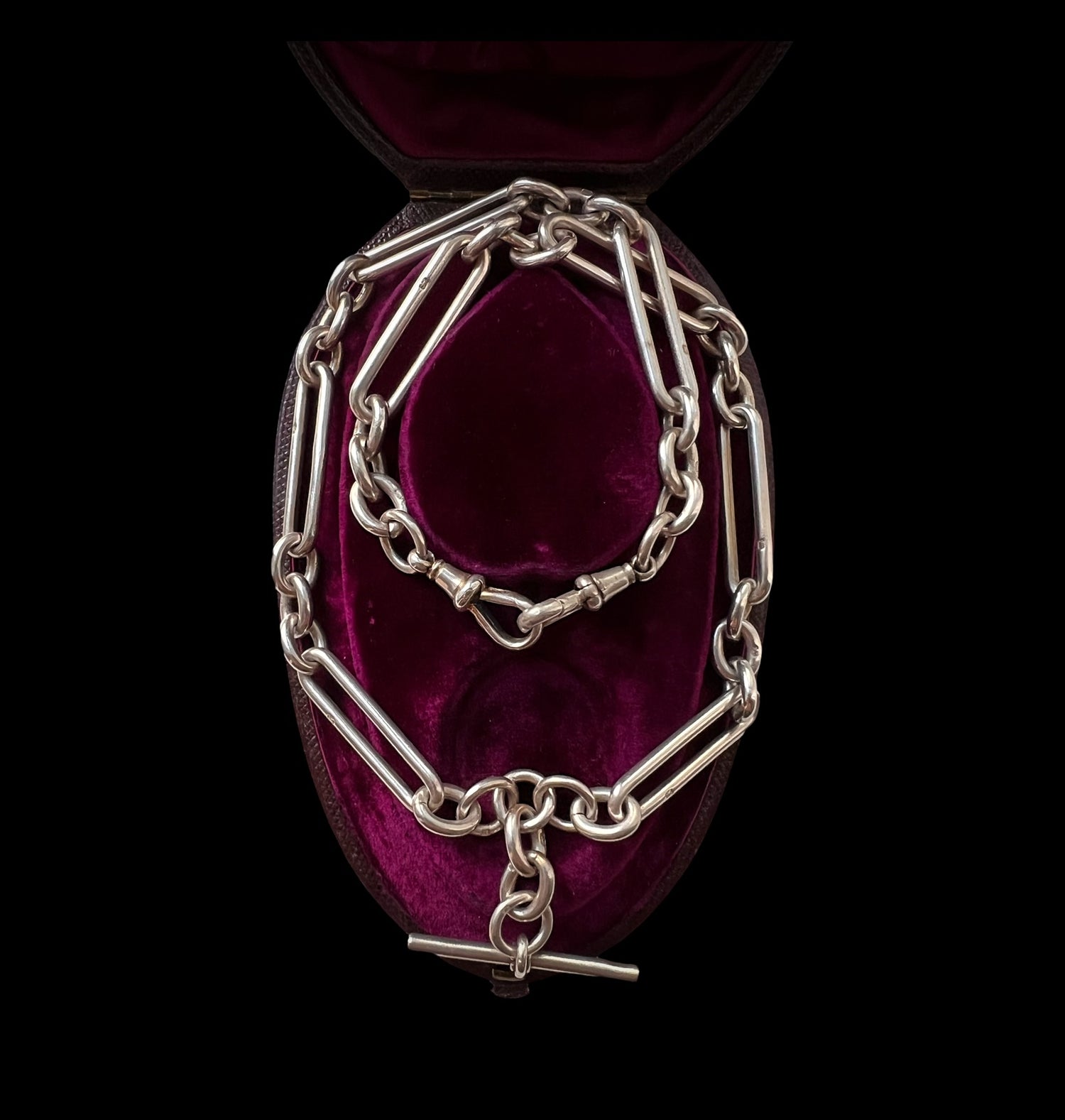 A gorgeous Victorian chunky Silver paperclip Albert chain with T-bar.