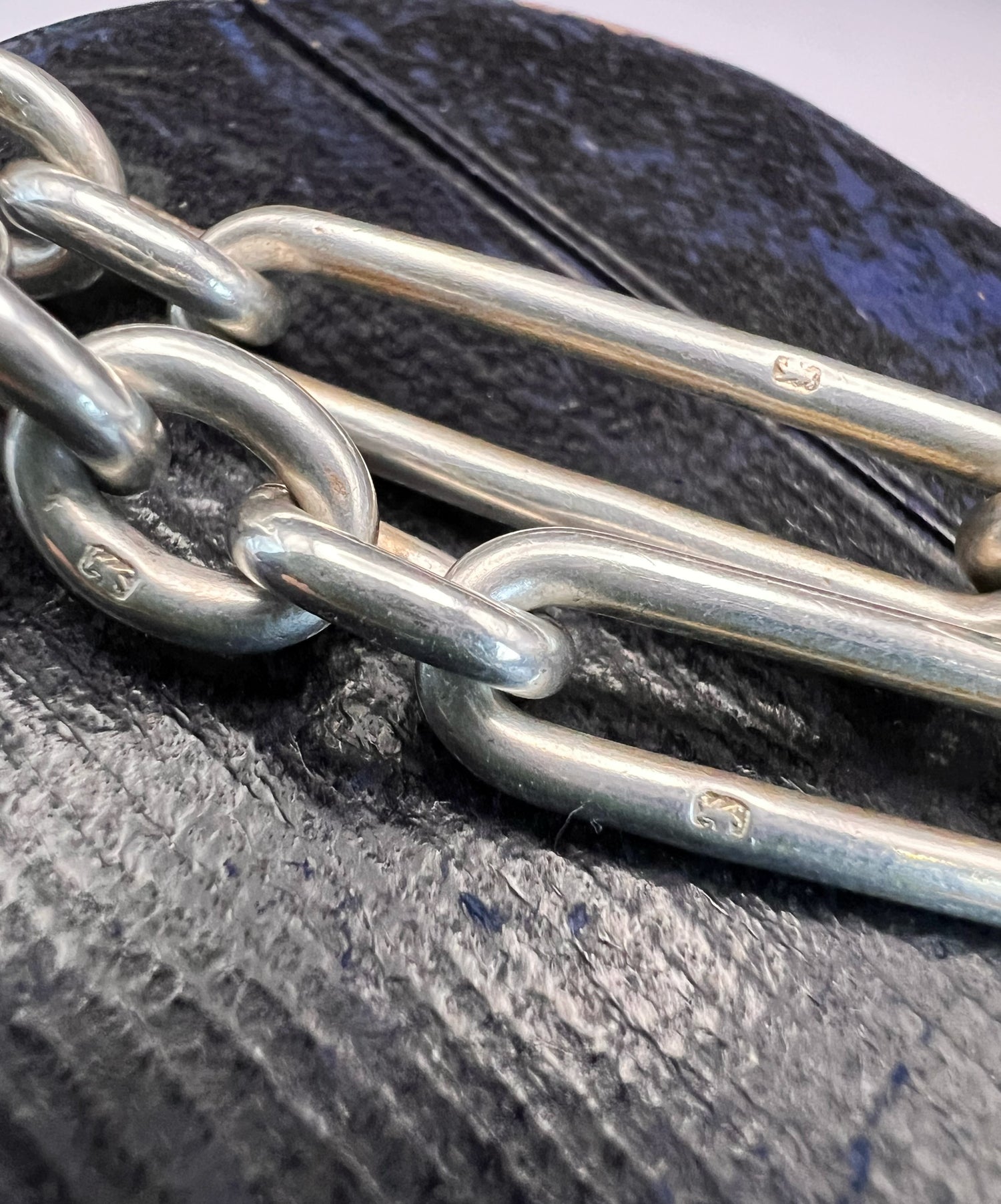 A Lion Passant is marked on every link to indicate silver is of sterling quality.