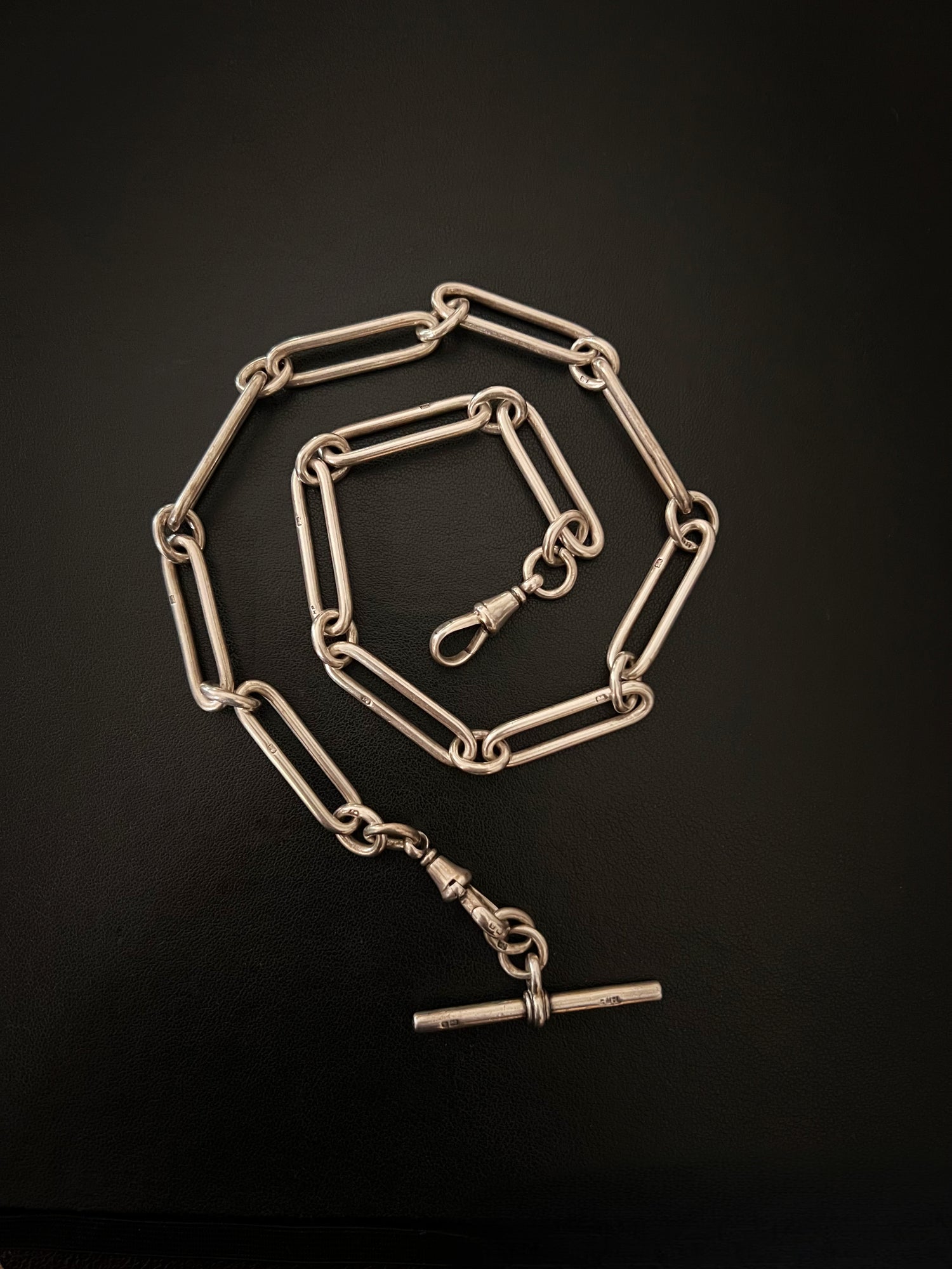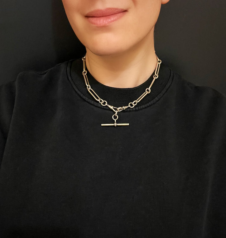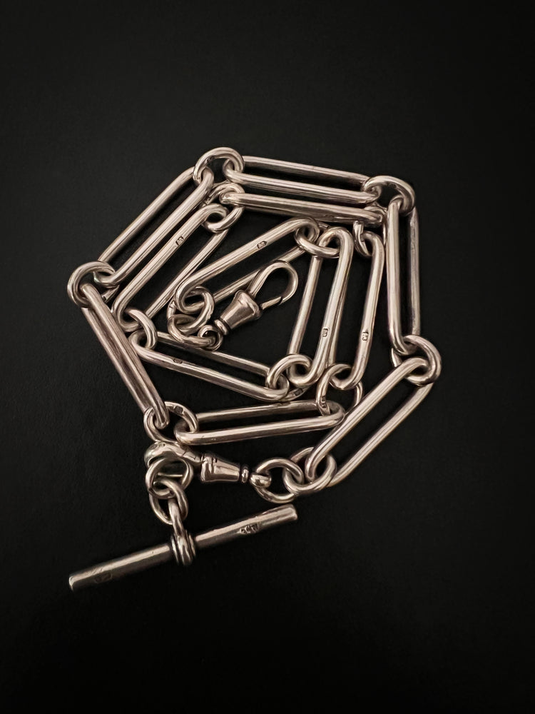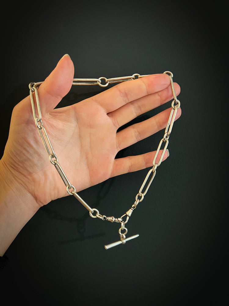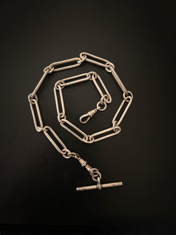 A gorgeous Victorian chunky Silver paperclip Albert chain with T-bar.