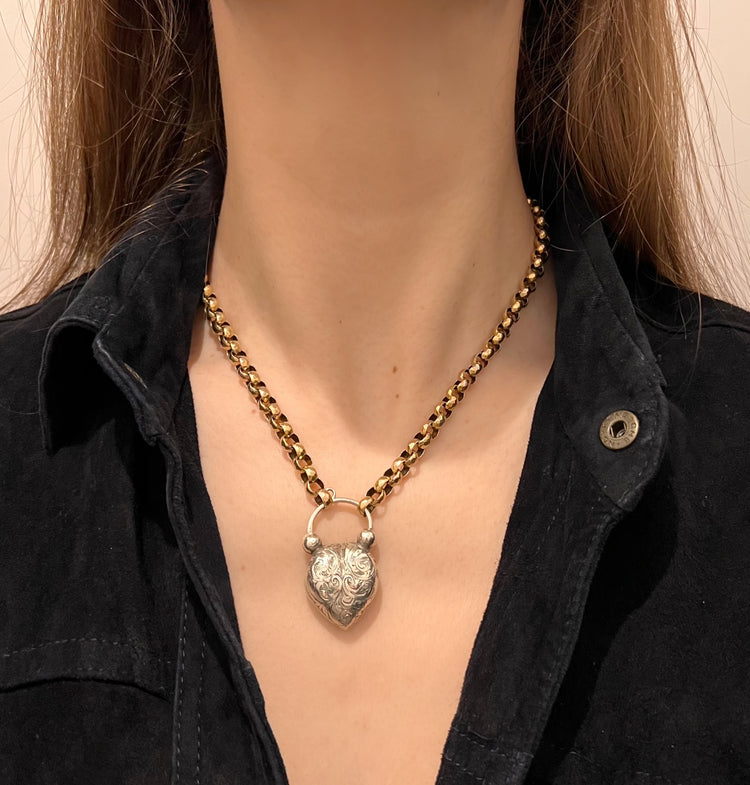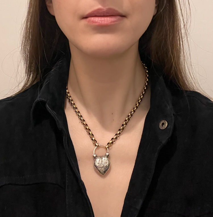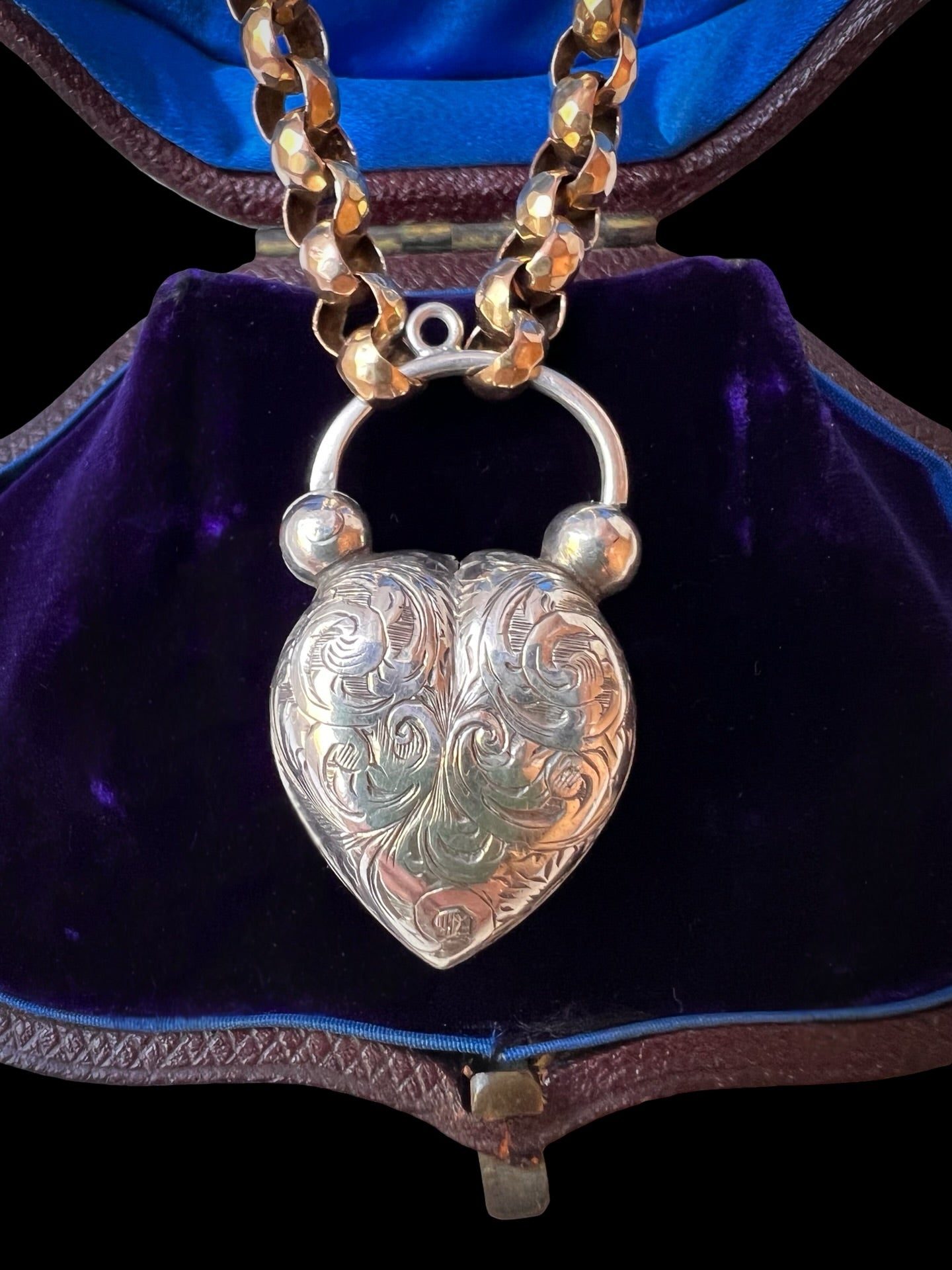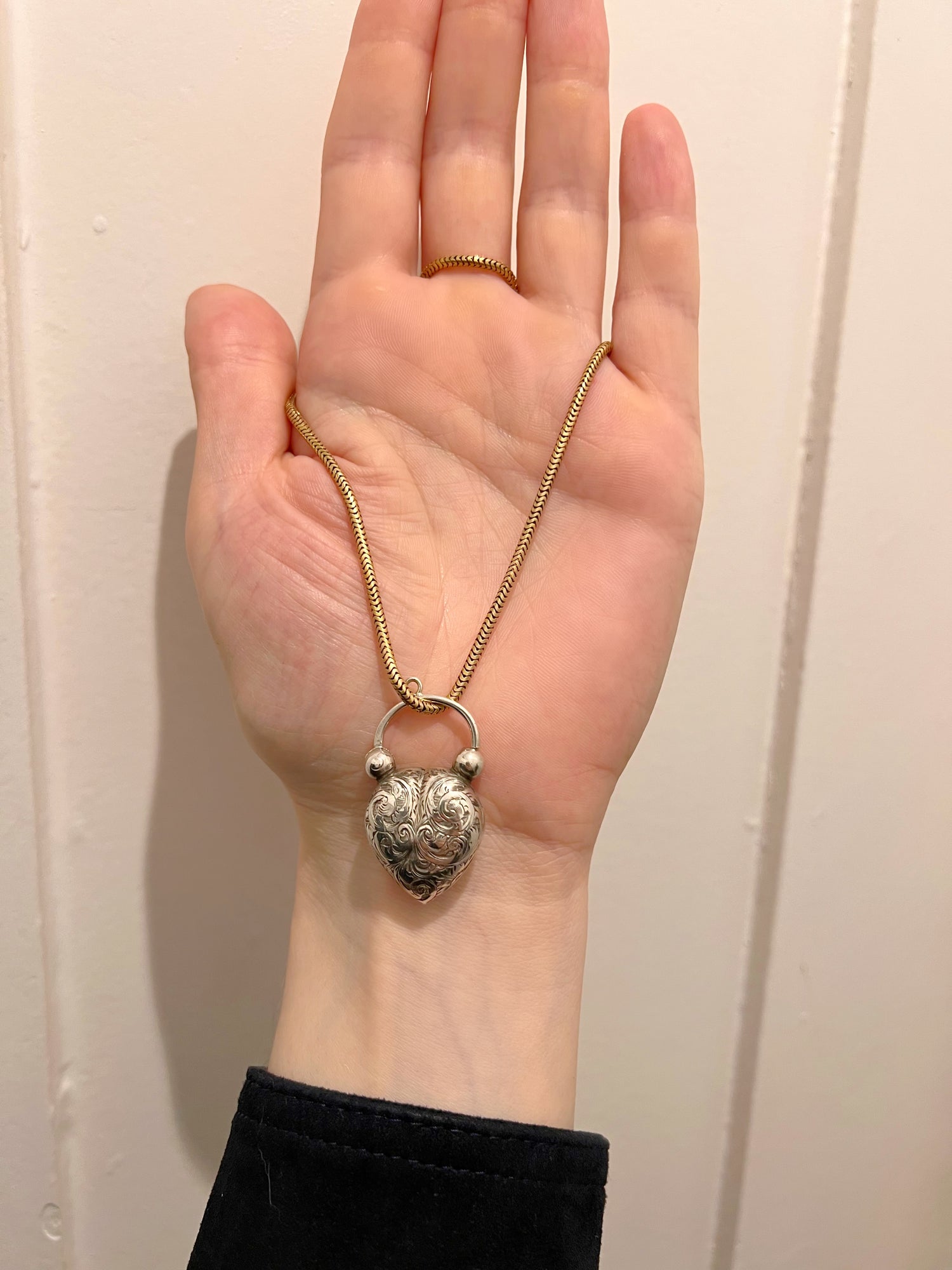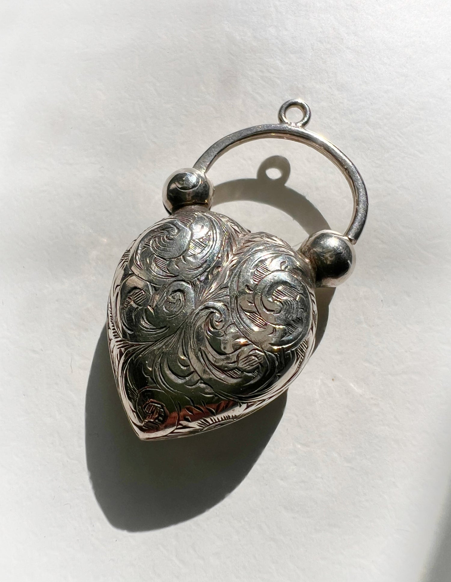 VICTORIAN SILVER PUFFY HEART PADLOCK