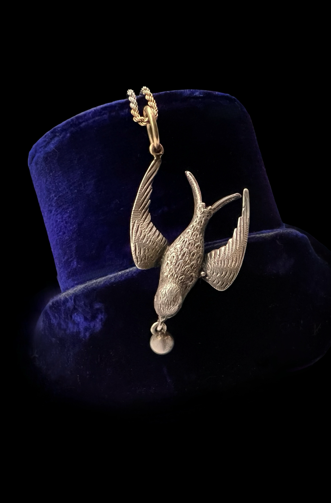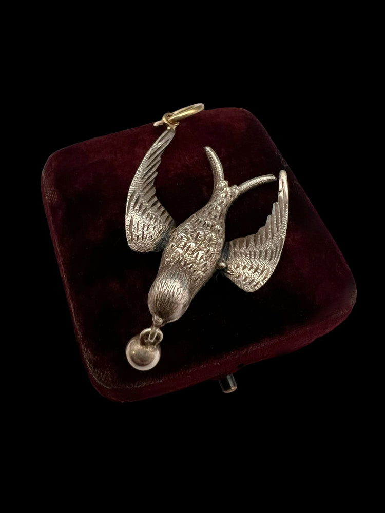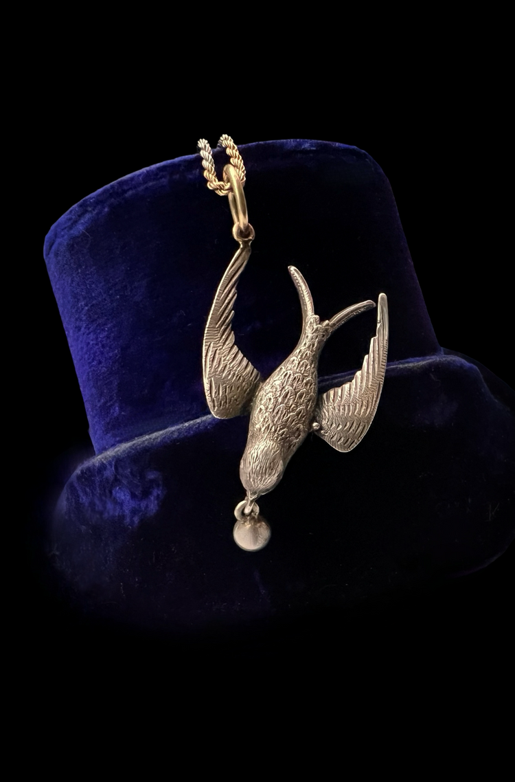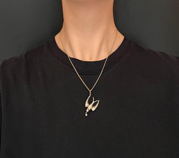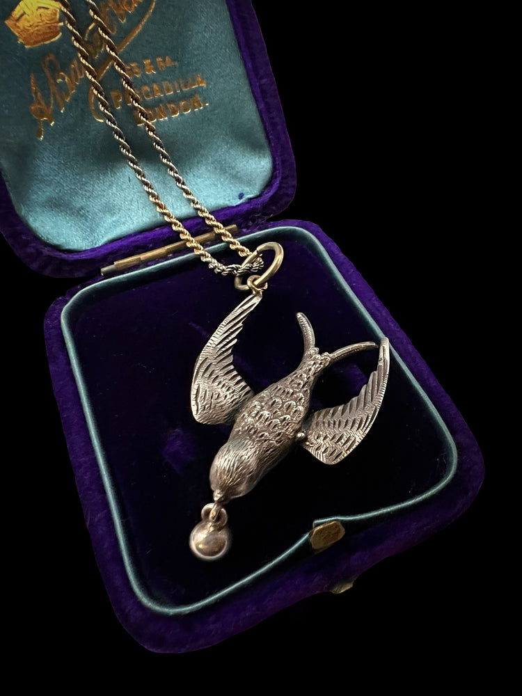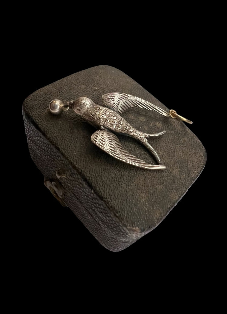 Swallow jewellery was often given to loved ones as they set out on a journey as a token to keep them safe. The bird was a symbol of love and protection to help ensure their safe return. This originated from sailors who used swallows as a sign of homecoming. The sighting of one of these birds meant that land was near.