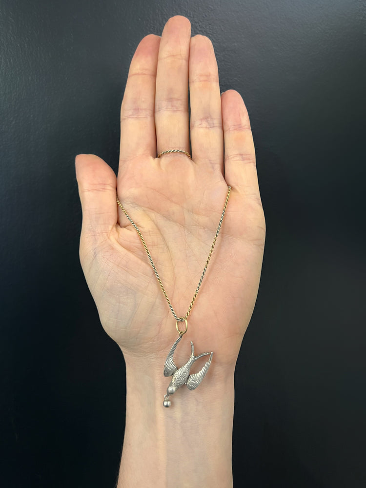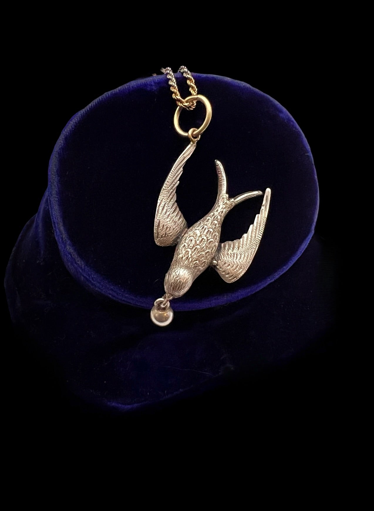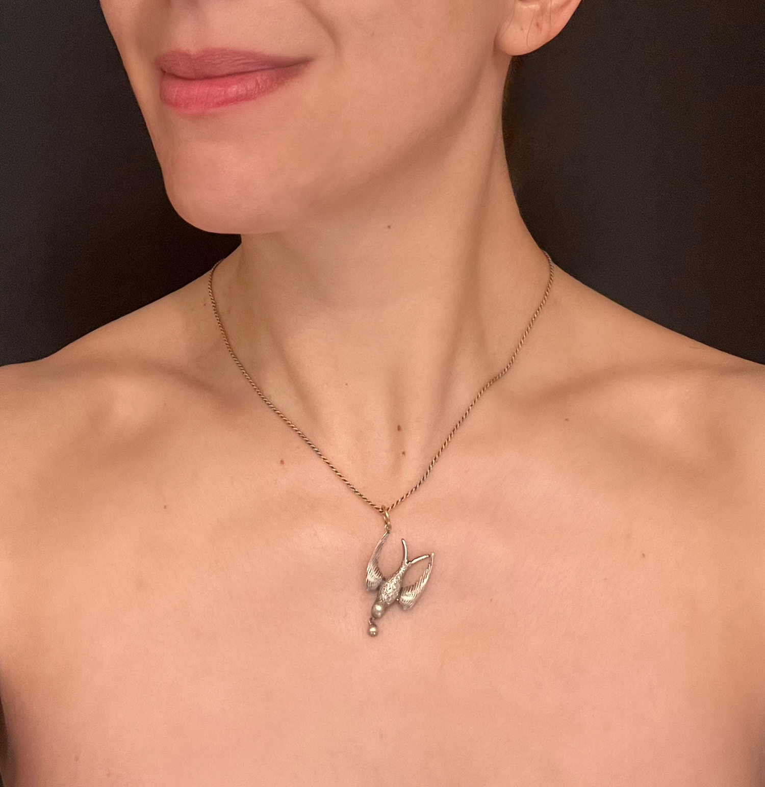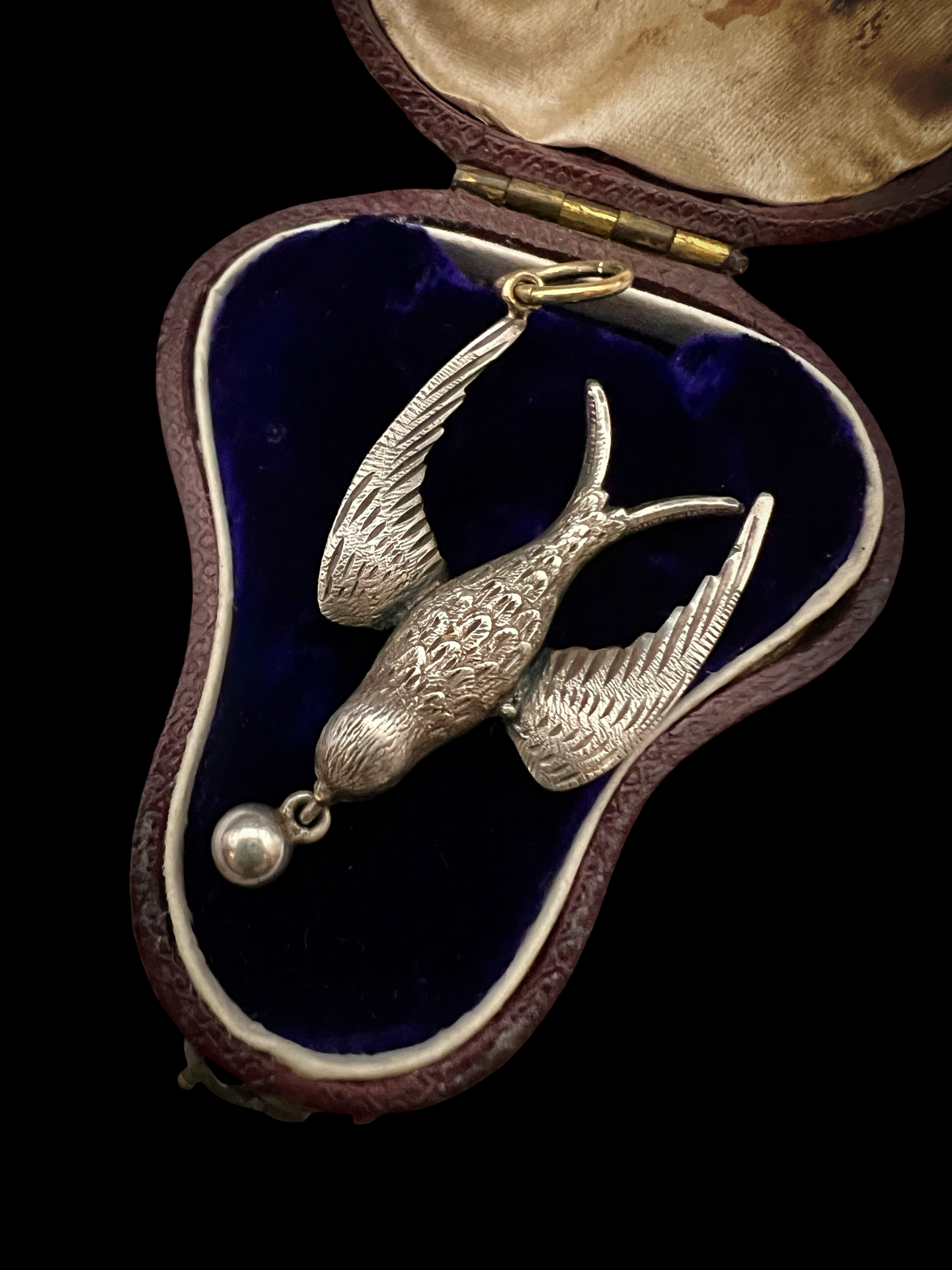 Swallow jewellery was often given to loved ones as they set out on a journey as a token to keep them safe. The bird was a symbol of love and protection to help ensure their safe return. This originated from sailors who used swallows as a sign of homecoming. The sighting of one of these birds meant that land was near.