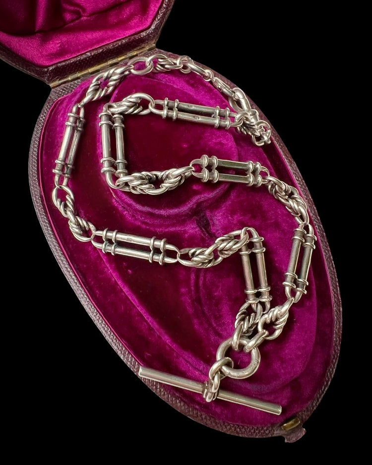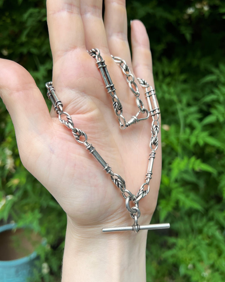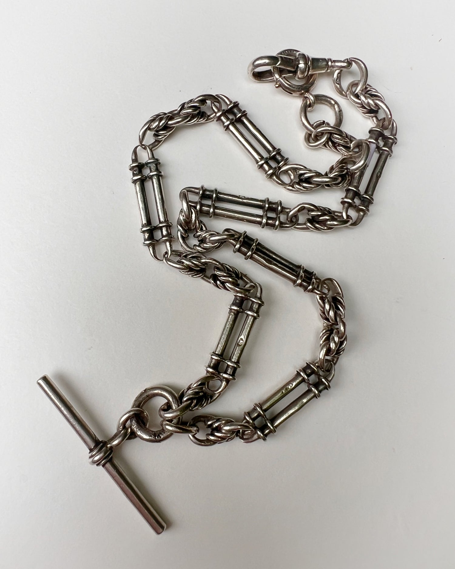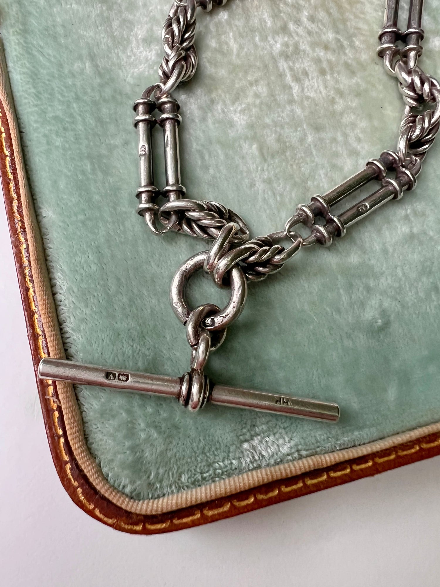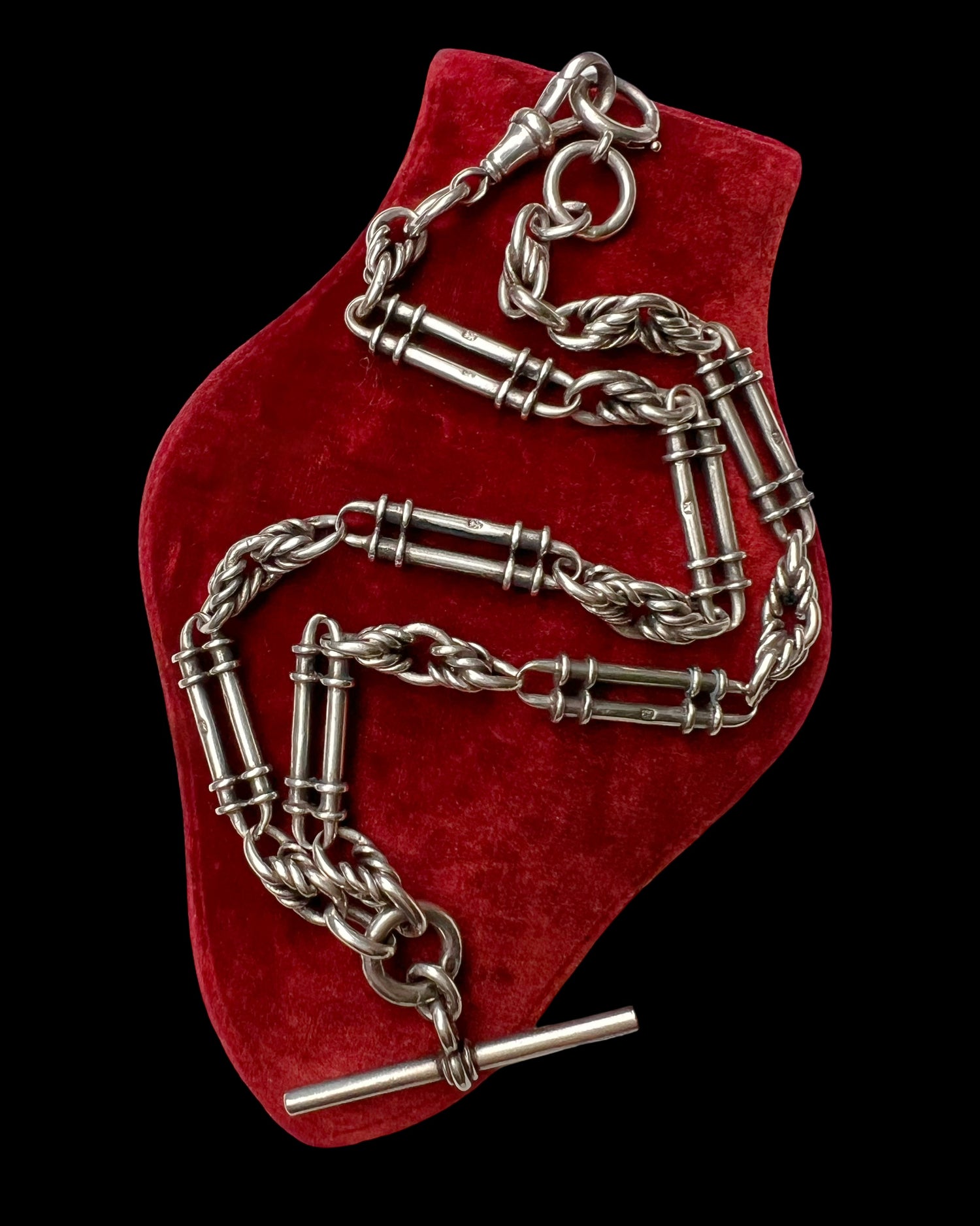 A gorgeous Victorian chunky trombone Albert chain with T-bar.