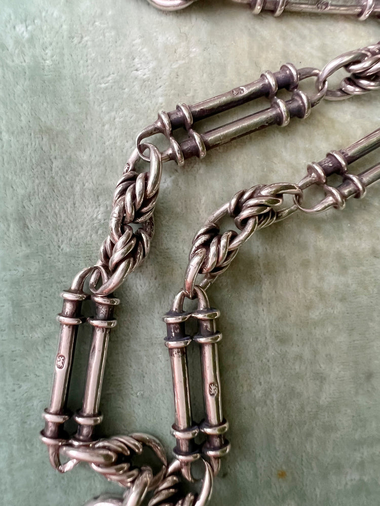 VICTORIAN SILVER TROMBONE & LOVERS KNOT ALBERT CHAIN